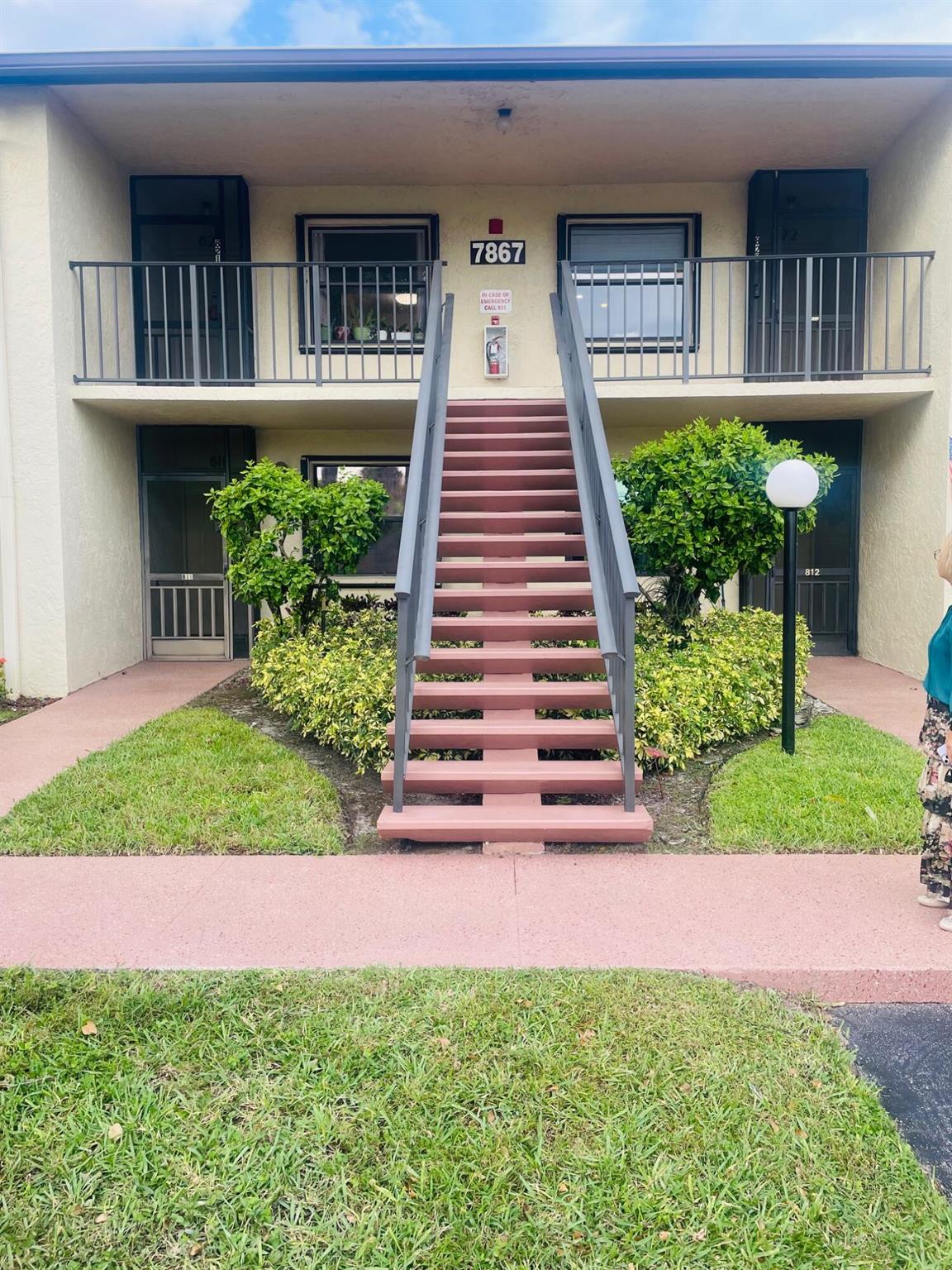 Welcome to this second-floor condo in a highly sought-after 55+ community in Lake Worth! This spacious 2-bedroom, 2-bath, with ceilings, gorgeous laminate floors. The eat-in kitchen is perfect for casual dining, while the screened-in lanai offers a serene spot to relax and enjoy the Florida sunshine. Both bedrooms boast walk-in closets and separate baths, providing comfort and privacy. The convenience of in-unit washer and dryer adds to the efficiency. The pet-friendly community offers peace of mind with an HOA fee covering water, cable, and exterior maintenance.