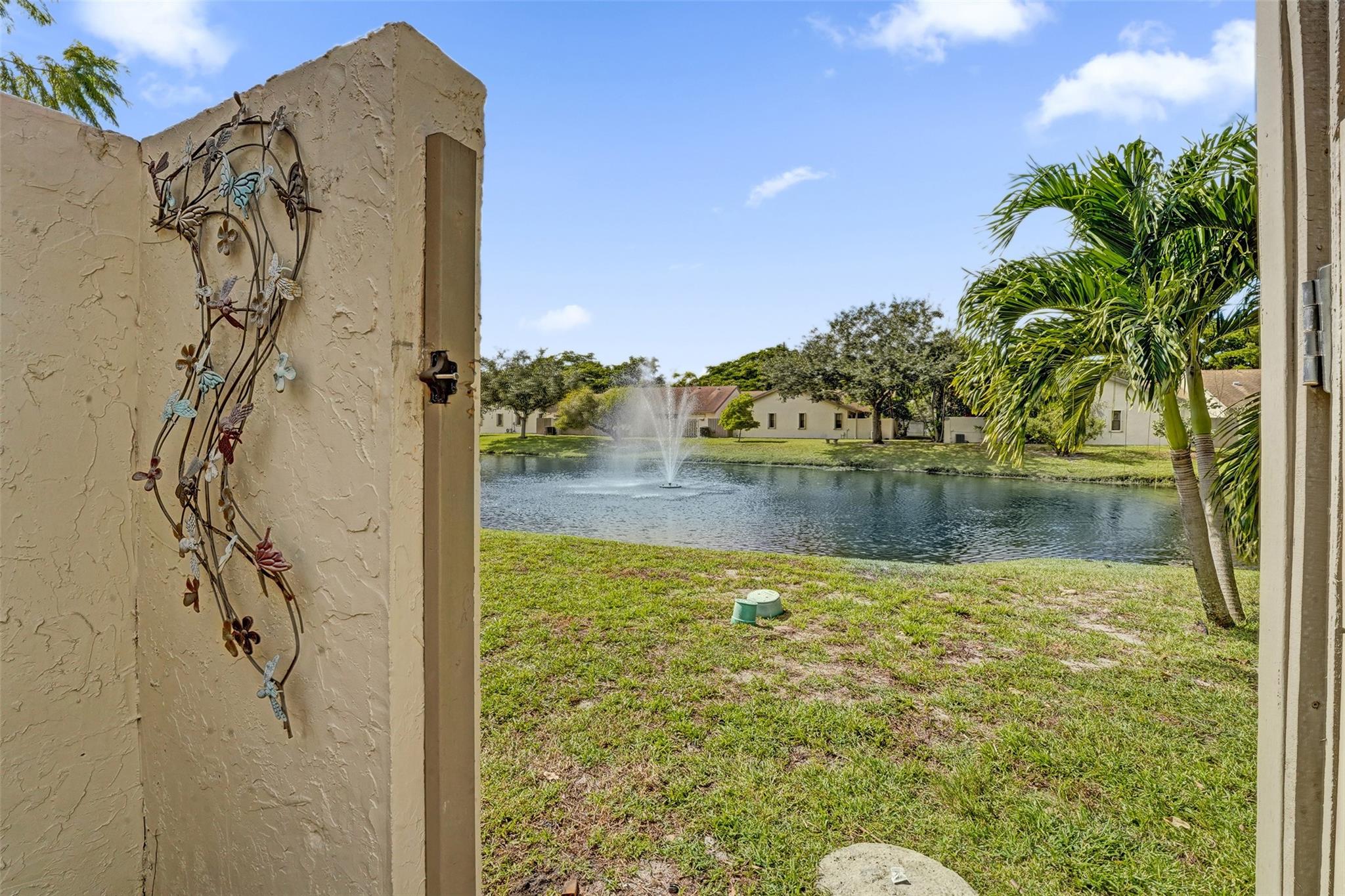 Spectacular gated Pines West, updated 2 bedroom 2 1/2 bath, 2 story townhome- Freshly painted, Best location in the community w/ pond, water feature, pool & clubhouse right outside your private patio. Updated kitchen, quartz counters, stainless steel appliances, custom cabinets, extra storage, & custom lighting. All three bathrooms are completely updated , hi end lighting, cabinets, tile, plumbing, & state of the art shower systems with endless hot water provided by a tankless water heater & whole house water treatment system. Split bedroom layout features vaulted ceilings & spacious wall to wall closets. All windows are impact glass (shutters as well). Maint. includes cable, internet, full reserves, master insurance, sewer, garbage, pool & fitness center. Pets are welcome.