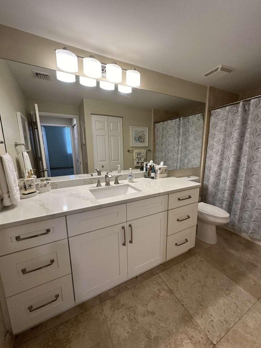 Experience ideal urban living at The Courtyards in CityPlace! This beautifully updated 3-bedroom, 2-bath condominium — one of only five 3-bedroom units in the community — features two master suites, travertine tile flooring throughout, and an open layout designed for comfort and style. The updated kitchen includes quartz countertops, a redesigned pantry, and stainless steel appliances. Both bathrooms feature upgraded vanities with quartz counters. The Courtyards is a gated, pet-friendly community offering resort-style amenities: pool and spa, fitness center, business and social rooms, concierge, on-site management, and secure garage parking (two spaces included). Short-term rentals permitted up to 12 times per year (30-day minimum), providing excellent flexibility for seasonal or