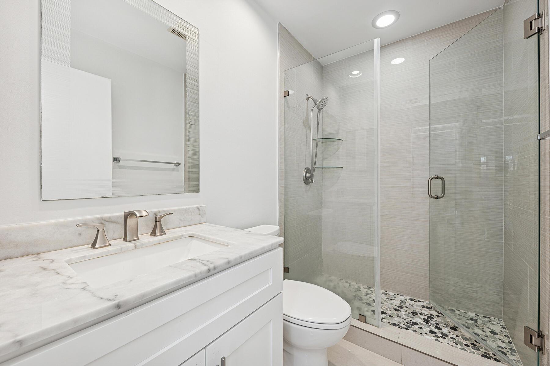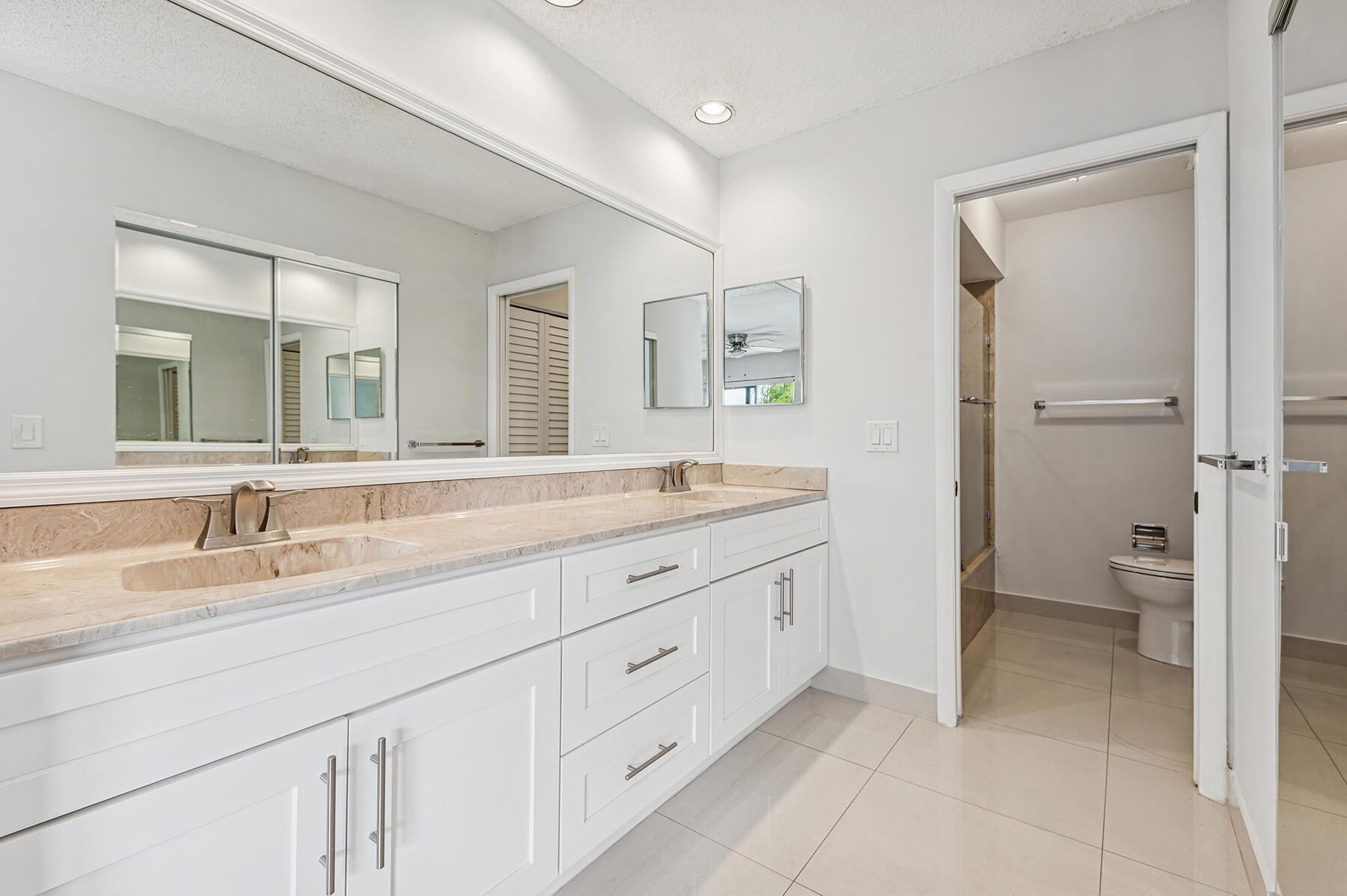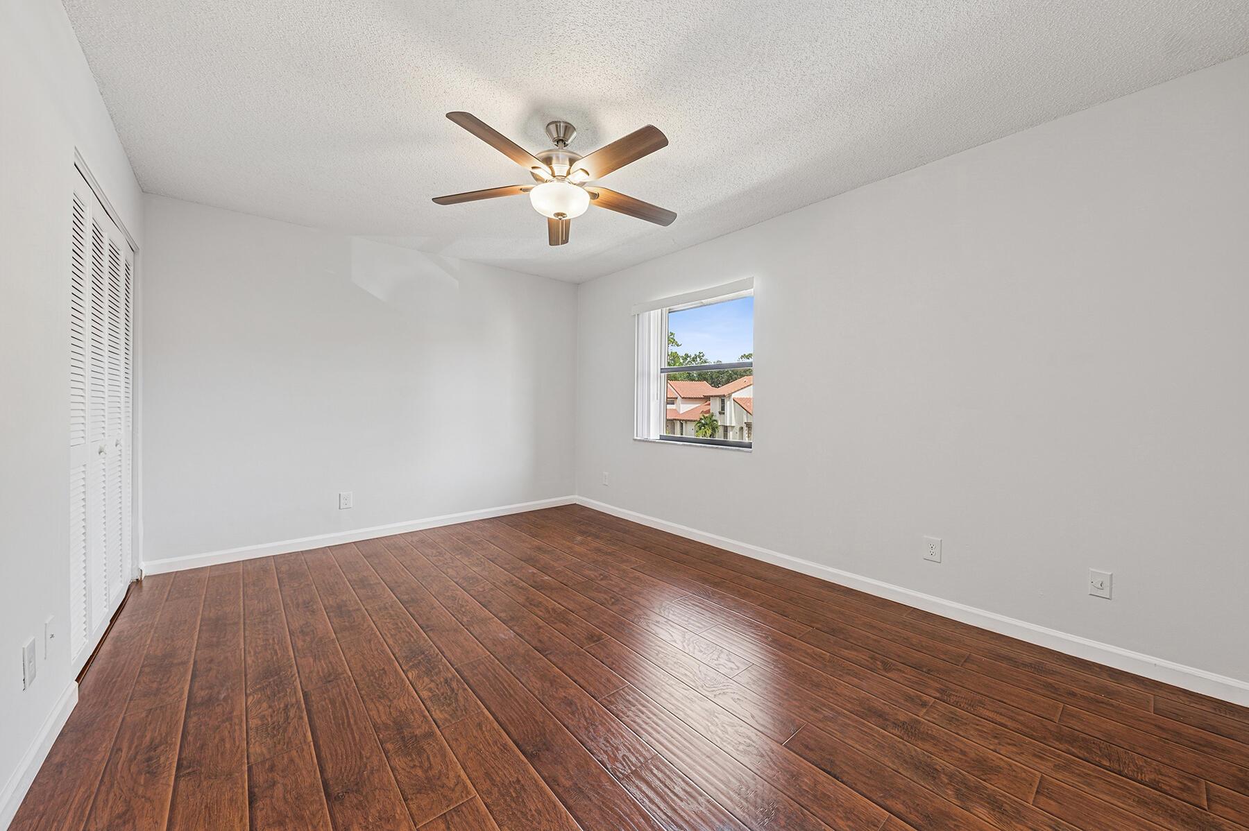 Welcome to this 3 bed, 3 bath townhouse located in one of Boca Raton's most sought after gated communities with 24-hr manned security. As you step inside, you're greeted by vaulted ceilings that enhance the open feel of the living space. The home features a desirable floor plan with one bed & a full bath located on the first floor & two spacious en-suite bedrooms upstairs. Freshly painted throughout with neutral tile flooring on the main level & wood-look flooring upstairs. The kitchen has granite countertops & SS appliances with a washer/dryer in unit. Enjoy the outdoors from your private enclosed backyard with a charming patio. This residence is walking distance to Town Center Mall & Boca Raton Tennis & Aquatic Center, placing premier shopping, dining & recreation right at your doorstep