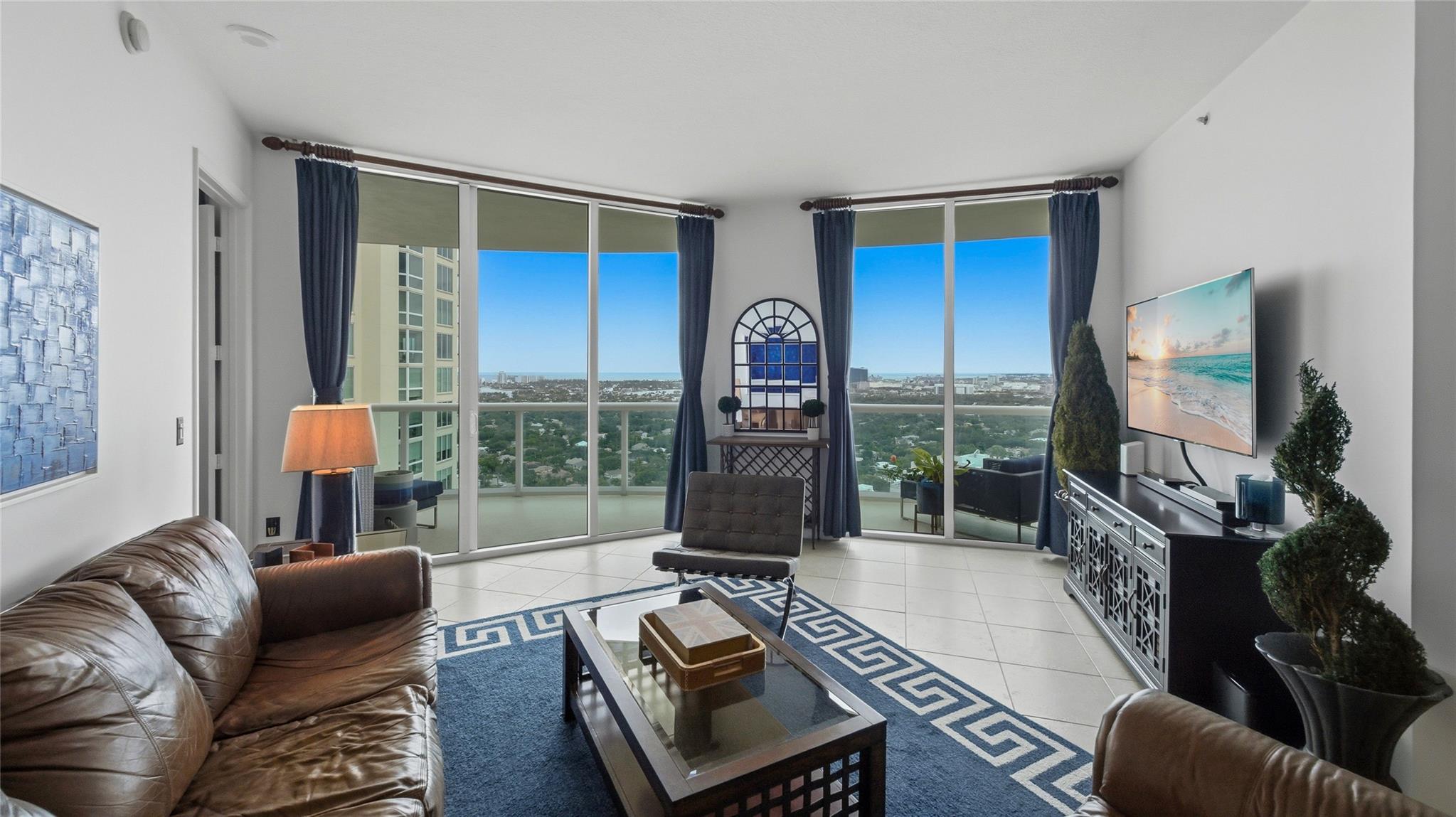 Most desirable stack in the building! Perched high above the city, this stunning sub-penthouse captures sweeping, unobstructed views of the ocean and river a rare fusion of natural beauty and urban luxury. Expansive glass walls fill the space with light, while open plan living flows seamlessly to generous terraces perfect for entertaining or quiet reflection. The elegant interiors feature 10 ft high ceilings, premium finishes, and a designer kitchen. Wake up with direct ocean views and unwind with golden river sunsets and city lights all from your wraparound balcony. Residents enjoy access to premium amenities including a resort-style pool, gym, and 24-hour concierge. Walking distance to finest dining, shopping, and nightlife in downtown Fort Lauderdale. New Hvac installed in 2023