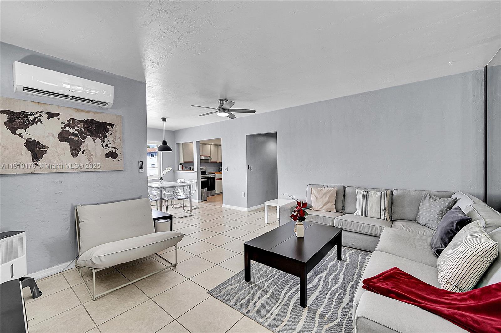 Enjoy the sunshine state weather in this beautiful 2 bedrooms 1 full and 1/2 bathrooms corner unit in the 55+ community of Diplomat Gardens. Located East of US1, it offers proximity to the beach, International restaurants, Malls and major highways. Recently upgrades include new lighting, appliances, 2 mini splits ac units, impact windows with lots of natural light. This complex has very low maintenance fees and it has lately installed a new heated swimming pool. Other amenities include bbq area, shuffleboard, laundry facilities and assigned storage locker. Fully furnished with full price offer. No rentals or pets allowed. Come and check it out for yourself.