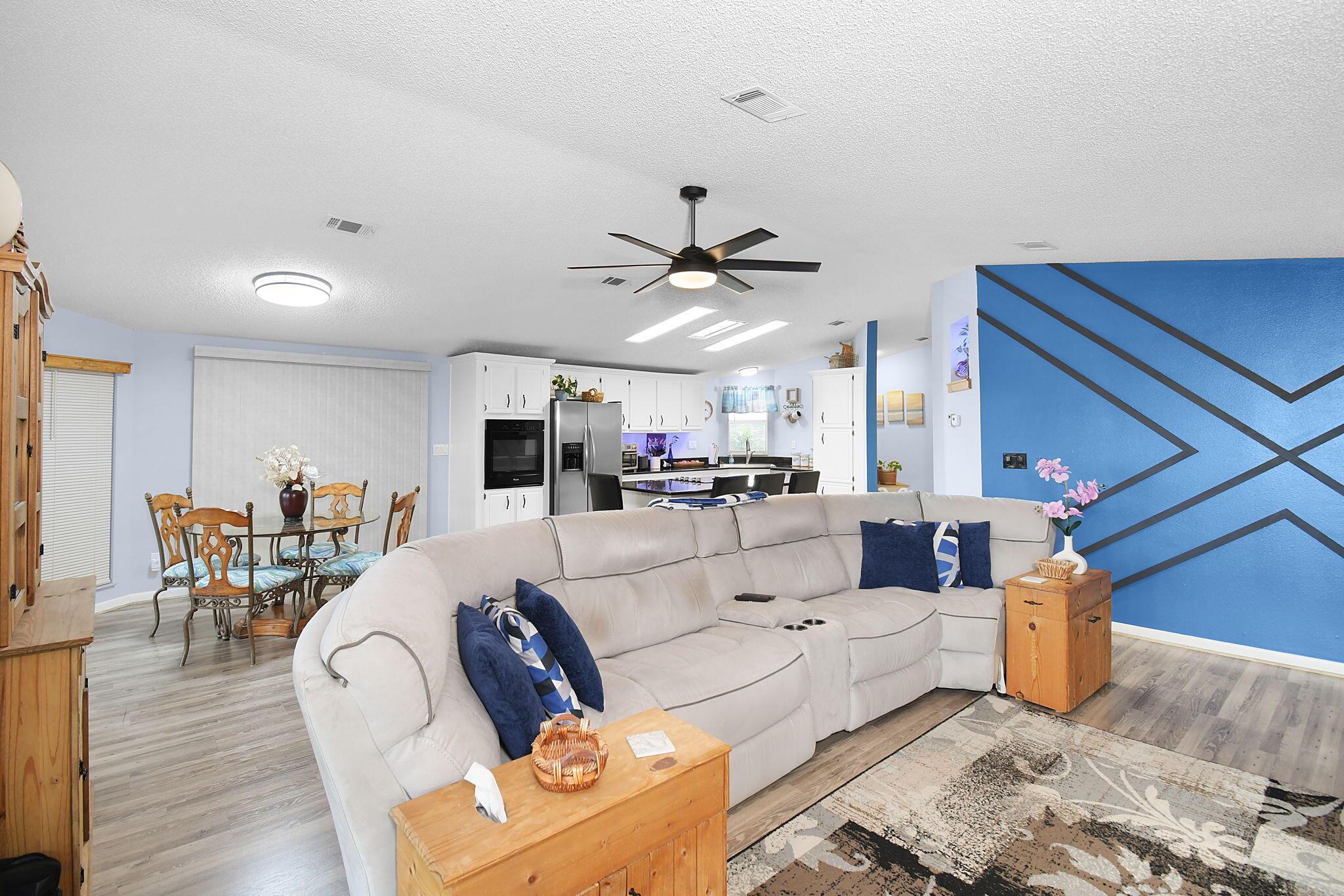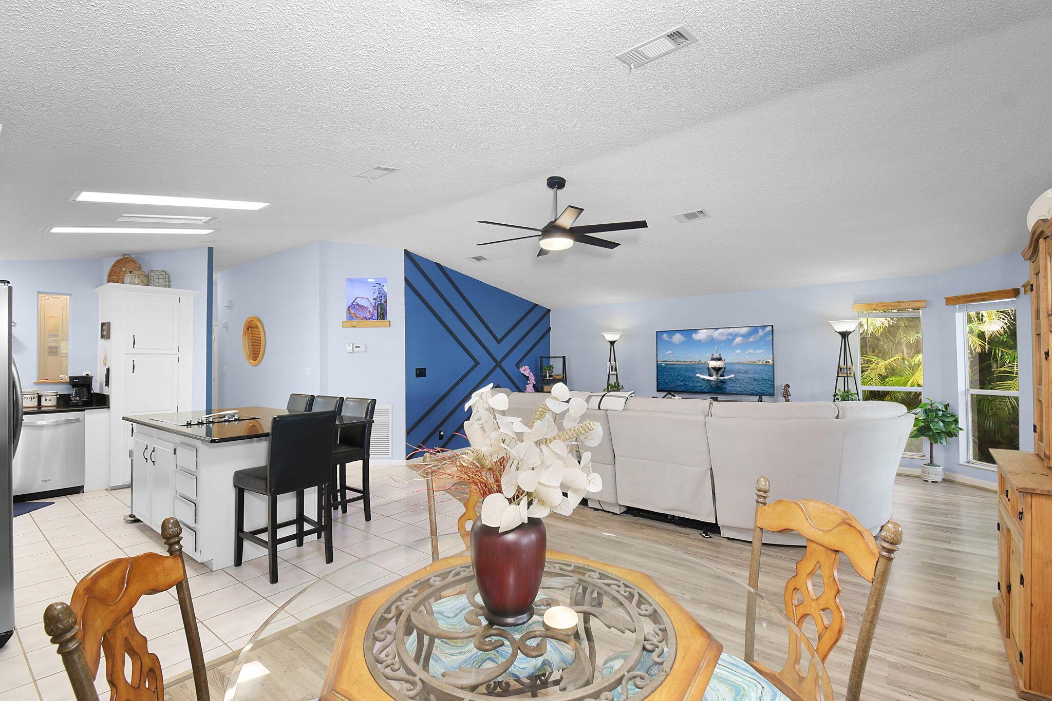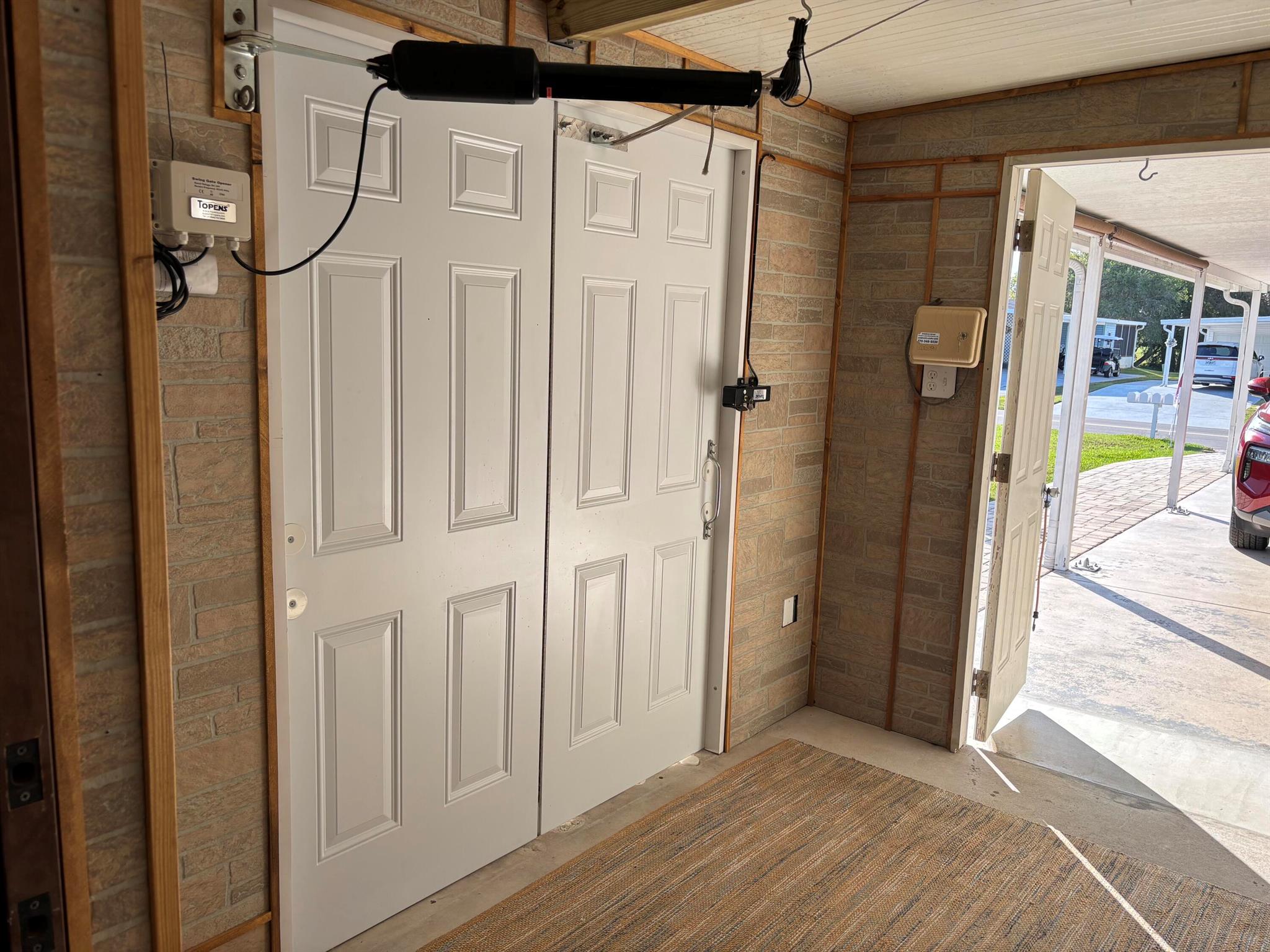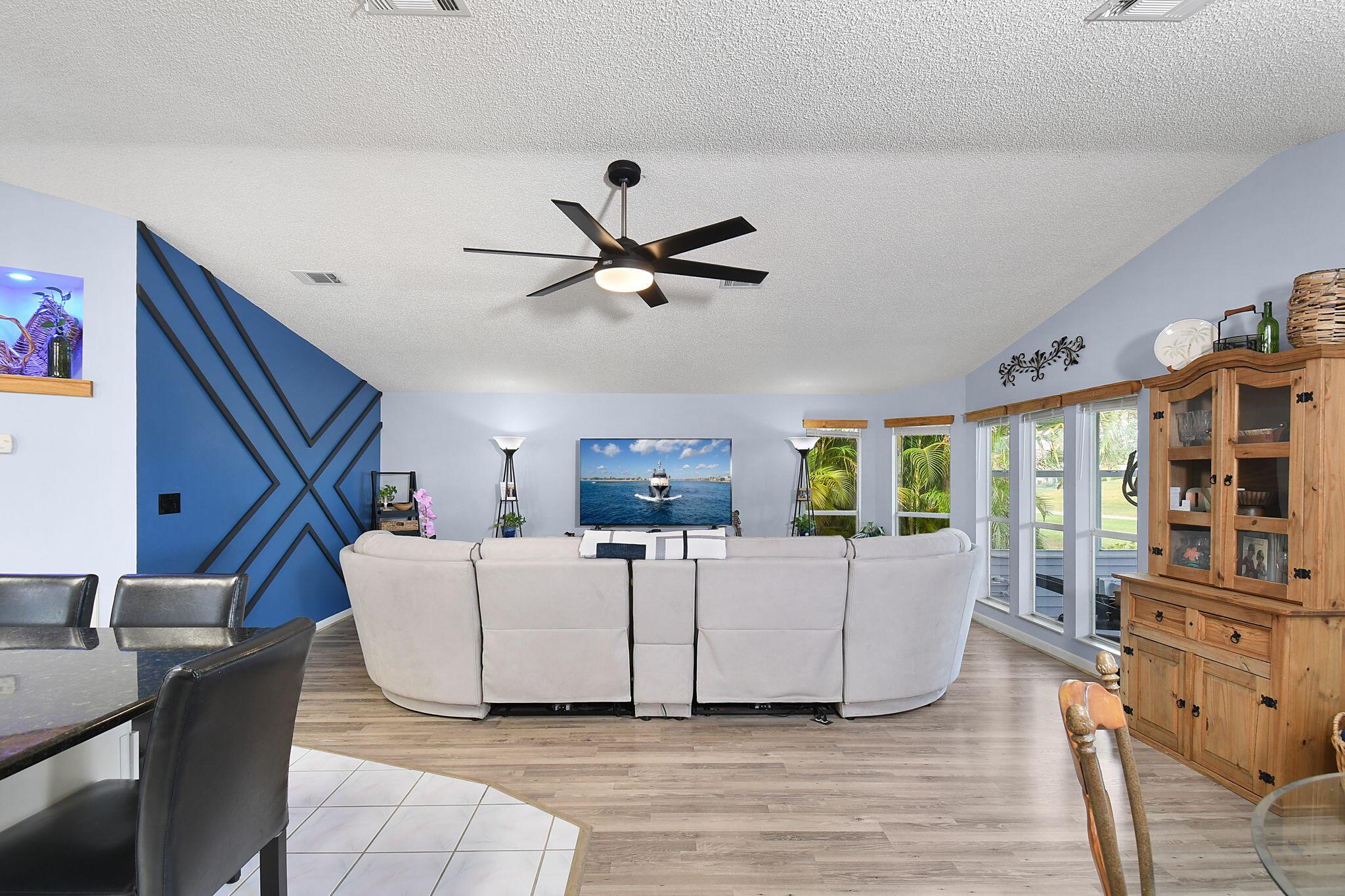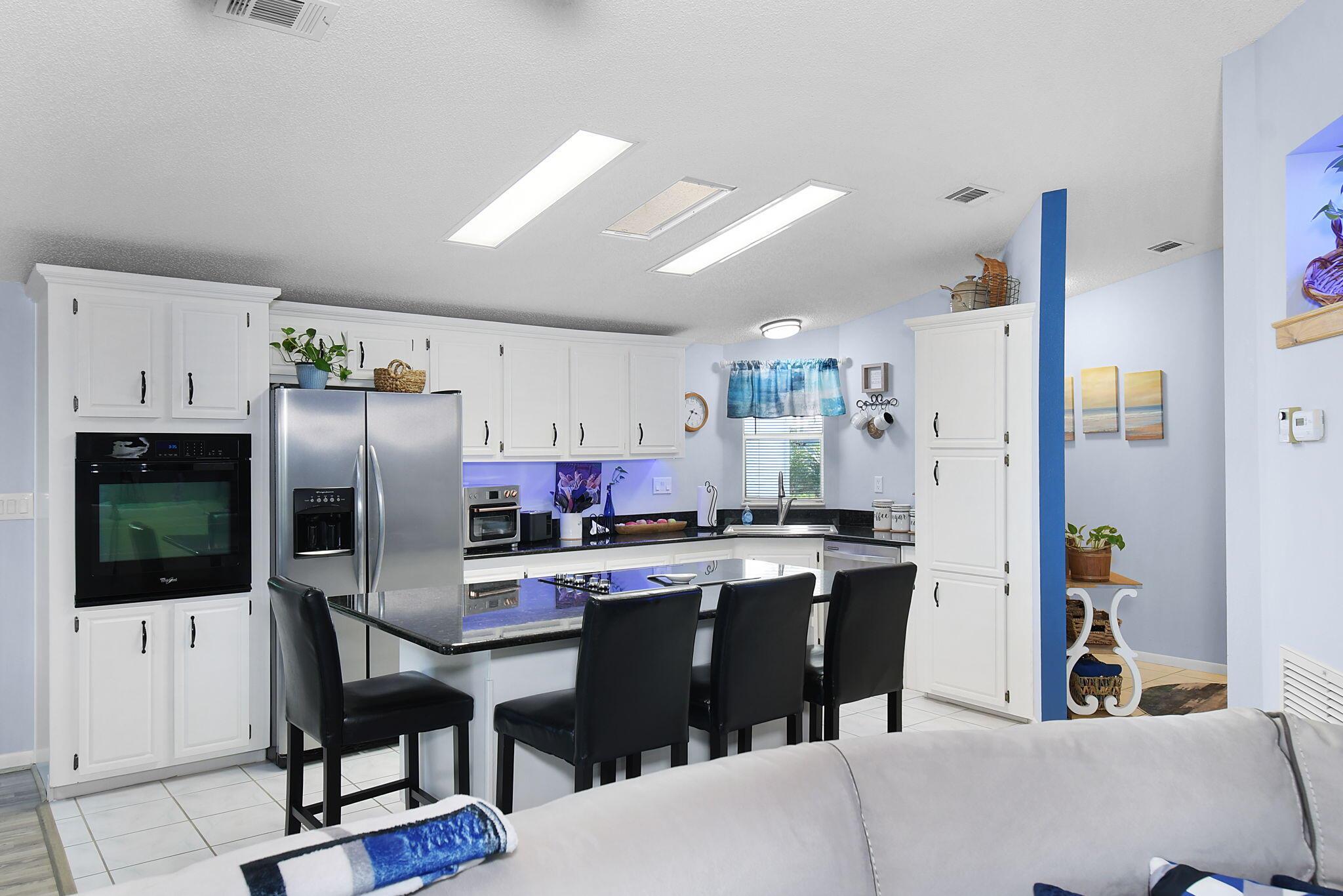 Land-Owned turn-key on the 18th hole of Savanna Club golf course. Walk to the Cove, tennis courts, shuffleboard, bocce ball, Fairways pool, and cafe! Perfect location! This home features upgraded kitchen with granite counters and white cabinets. Tile and laminate flooring in living areas. Interior laundry room. Wood grain barn doors in guest bedroom with extra shelving in the closet. Barn door to laundry room. Primary bedroom with sitting area. Primary bathroom with dual sinks, garden tub, & separate shower. Two enclosed patios, one being used as a workshop. All tools excluded from sale. Shed for storage.