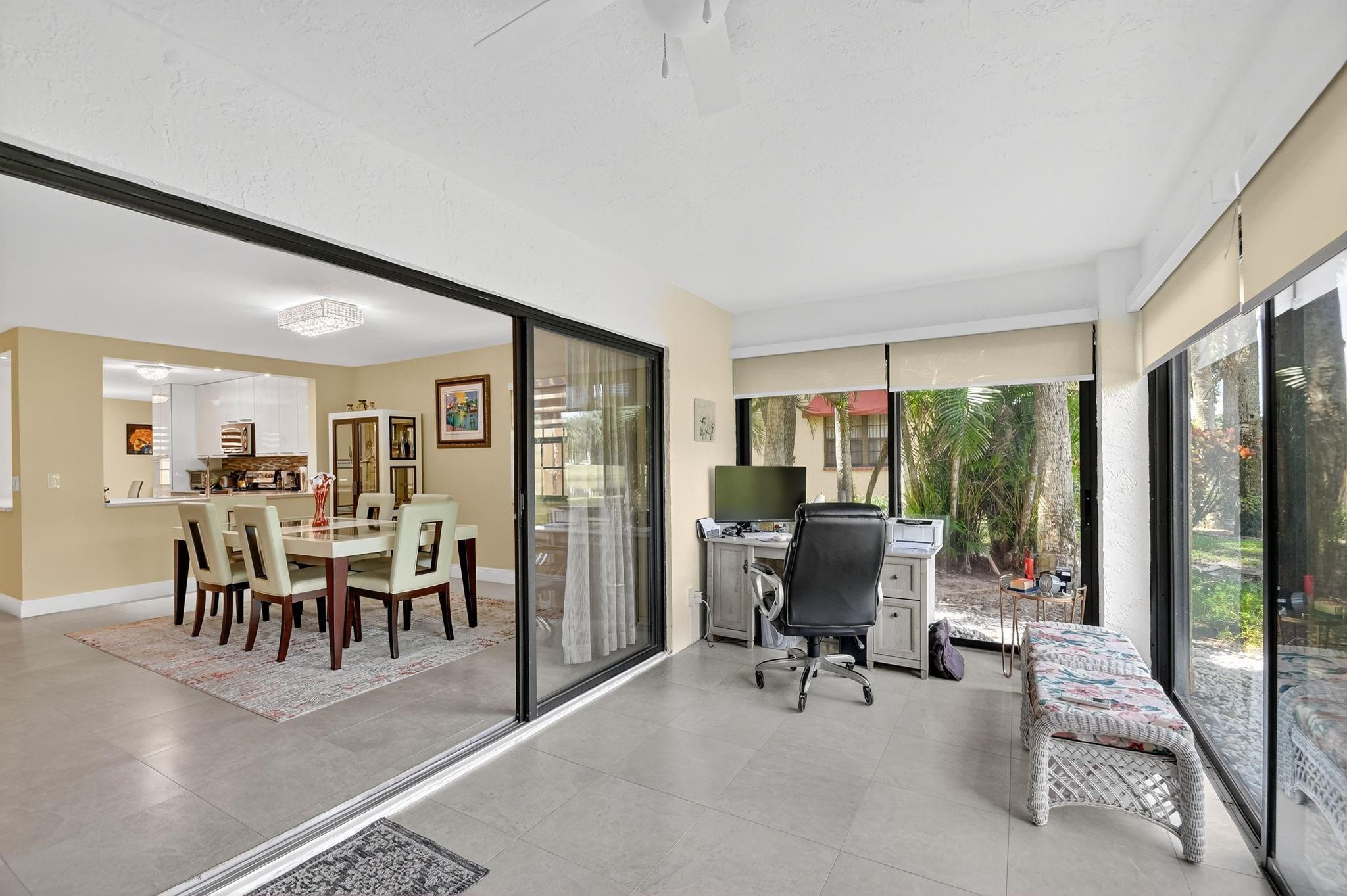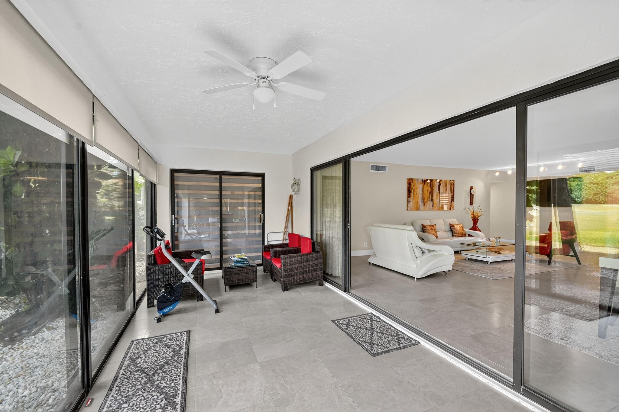 Price reduction for this stunning ground floor large 3 bed/2 bath corner condo overlooking the lake and golf course. Abundance of light and open spaces layout with spacious living and dining areas, newly designed eat-in kitchen, large primary suite, and screened big Florida room with sliding doors. Fully redone, with modern accents and high-end finishes, no popcorn ceilings throughout, new designed blinds with remote control,custom made walking closet. Same ceramic tiles throughout. New appliances, water heater, and Air Conditioner with 10 years transferable warranty. You have an option to join membership at the Indian Spring Country Club offering resort style amenities. Separate large storage room near the entrance. Walking distance to places of worship and short drive to the beach.