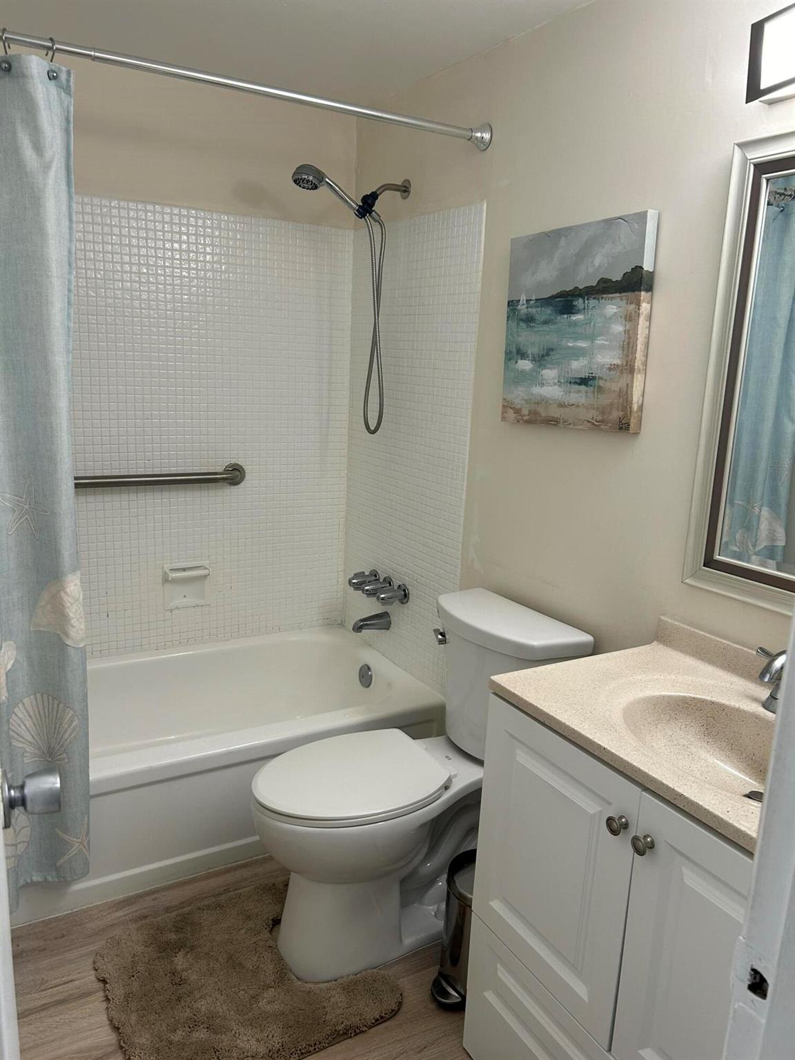 Beautifully updated, 1st floor, 1 BED condo, over 55 gated community with partial intracoastal views. Brand new flooring and baseboard 2024, A/C under 2 years, NEW water heater. NEW hurricane sliding door, updated electric panel 2022, appliances replaced, new fans, NEW bathroom vanity, mirror, lights, shower head and tub reglazed. Community just updated a new club house with gym, library, party room, auditorium, pickle ball courts, bocce ball. Has pool & 3 laundromats. Beautiful walkway along intracoastal, covered gazebo with grills, putting green, WALK to beach, restaurants, grocery, boat docks. All state and local inspections met. Sold furnished or unfurnished. Lowest HOA fee in community.