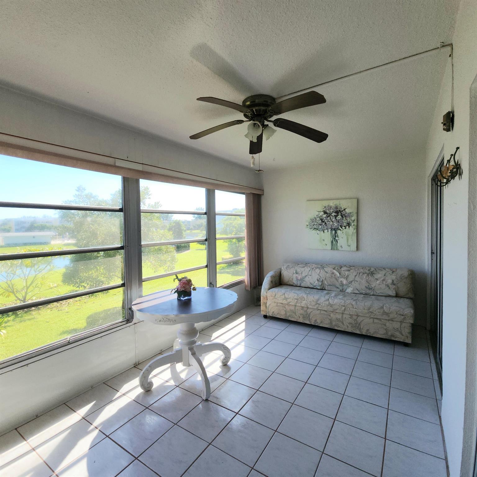 Wonderful 2 bed 2 full bath located in Century Village WPB, Beautifully Renovated Kitchen with plenty of recessed lighting and nice cabinets. Super large living room with plenty of windows to let in the light and NO POPCORN celling. The renovated bathrooms are stunning with stylish vanity and tiled shower and tub area, a must see. Primary bedroom features a large walk-in closet and both bedrooms have sliding glass doors to your oversized Lanai. The spectacular long lake view is right out your window to enjoy. One of the best views in all of the Wellington buildings. There are 2 pools for the wellington residents to enjoy and this condo is just a short walk out your door to the heated pool. Wellington also features a sauna with dressing rooms and showers. The Wellington J building also