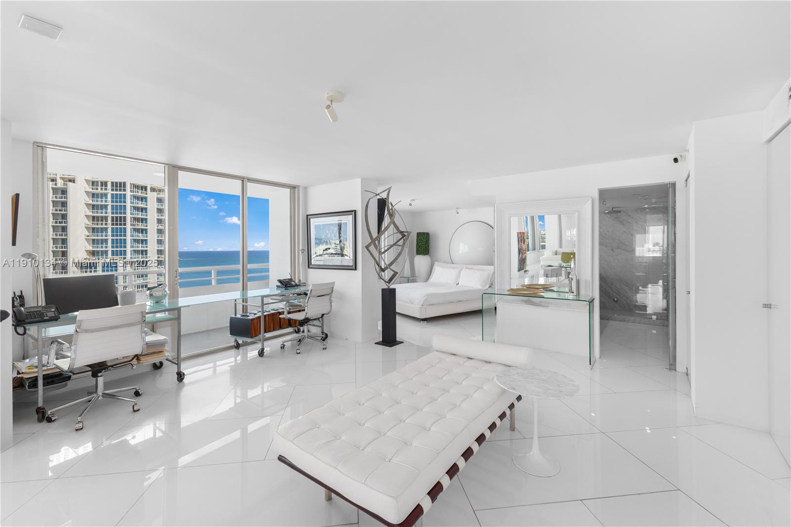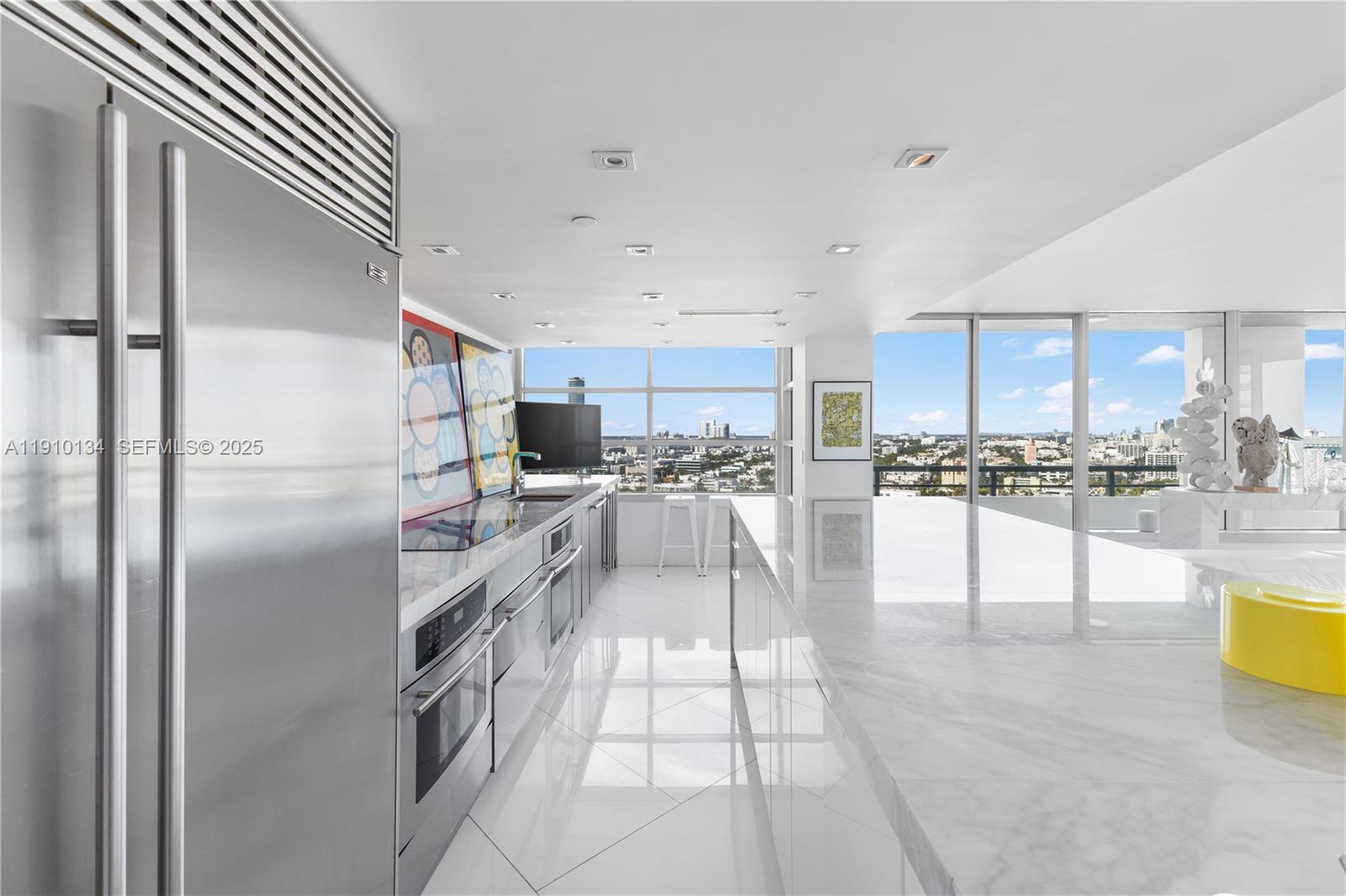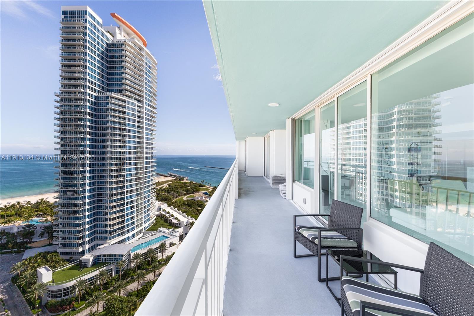 Location and Lifestyle are delivered in this breathtaking 23rd-floor corner residence in South Pointe Tower. Unparalleled direct ocean + city views through floor-to-ceiling glass windows. Every room opens to private 90 ft wraparound terrace. This designer open loft (re-imagined from a 2 bed + den) delivers a luxurious modern aesthetic with white glass flooring throughout and Carrara marble finishes. The open-concept chef’s kitchen features sleek stainless steel appliances + an impressive 15-foot Carrara marble island — perfect for entertaining. The residence boasts 2.5 spa-inspired Carrara marble bathrooms and includes two indoor parking spaces. Building just completed a $30 million master renovation (paid in full). Private 2 car garage available seperately - perfect for your exotic cars
