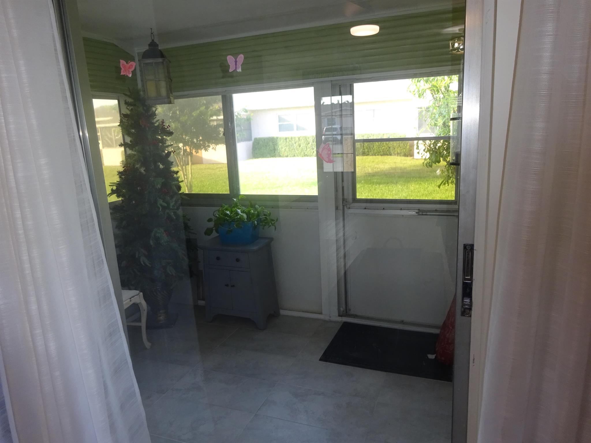 Updated 1 bedroom, 1 and half bath, 1 story villa in a vibrant 55 plus community. No expense spared. Beautifully updated. New kitchen, with dishwasher, Updated Bathrooms, flooring, impact windows, lighting, fixtures. Entire place was re done. Freshly painted and an enclosed porch with new tile floor and an exterior paved porch and association allows for grilling. Association dues cover all exterior maintenance, exterior insurance, cable and water. Live the life and let someone else maintain the lawn. Go play pickleball or go to the beach. Retail shopping, public golf courses and public transportation all within minutes. Community has a pool, library an exercise room and management office is on site. Come check this one out.