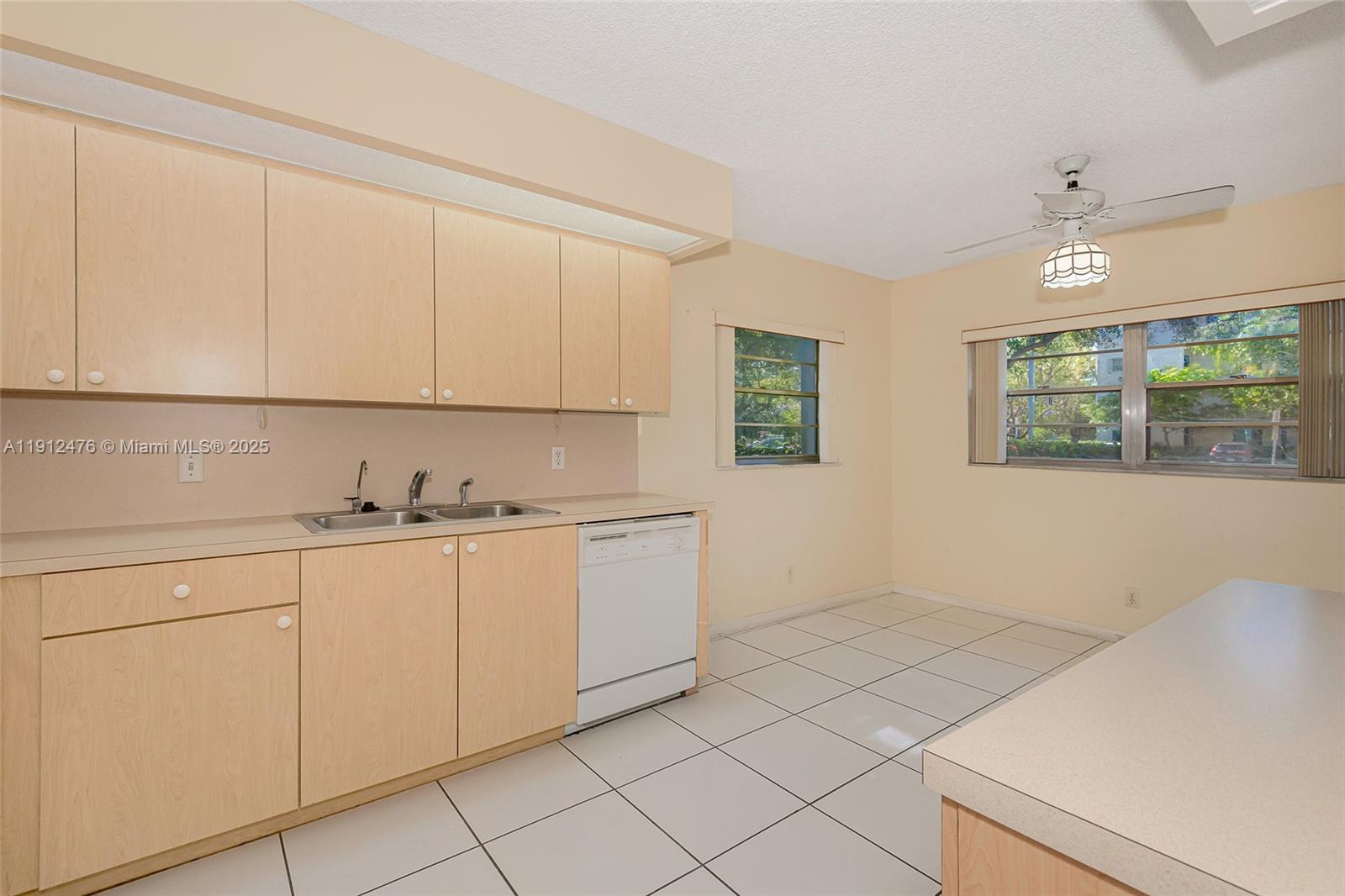 WELL PRICED 1st FLOOR CORNER UNIT in Century Village with 1,507 sq.ft. of living space. Spacious 2 bedrooms and 2 bathrooms, with ample natural light throughout. Features include WASHER/DRYER (5-6 years old), CENTRAL A/C (not sure how old), water heater (not sure how old), EAT-IN KITCHEN. White appliances with glass cook top, WALK-IN CLOSETS, and ACCORDION SHUTTERS EVERYWHERE. Principal Bedroom has impact window. Maintenance fees CVP: $277.76 + First Service $634, including water, trash, sewer, basic cable, and internet. Building amenities: resort-style clubhouse, gym, tennis courts, pools, and golf course. Parking space #E-32 and ample guest parking. ELEVATOR IN BUILDING. Don't miss this incredible opportunity!!