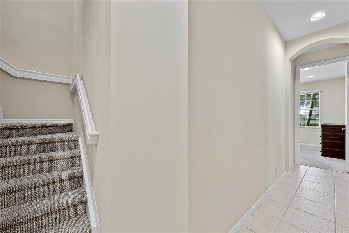 Sun-Filled, Rare Corner Townhome Offering Stunning Lake Views. This Highly Desirable Residence Features 3 Beds/2.5 Baths, + a Unique DOWNSTAIRS OWNERS SUITE. Open Kitchen is Equipped with Ample Cabinet Space and a Separate, Windowed Breakfast Area. Loft-Like Great Room (Separate Living & Dining Areas, has Picturesque Lake Views. Large Downstairs Owner's Suite Boasts Beautiful Lake Views & Features a Bathroom with Dual Sinks + a Walk-In Shelved Closet. Upstairs 2nd & 3rd Bedrooms have a Shared Bathroom & Separate Office/Study Area. Tile Floors Downstairs + High Ceilings Throughout, Separate Upstairs Laundry Room, 2 Car Garage. Evergrene has a Resort-Like Clubhouse, Minutes to the Beach, Public Tennis & Golf Facilities, Downtown Palm Beach Gardens & the Airport. ''A'' Rated Schools.