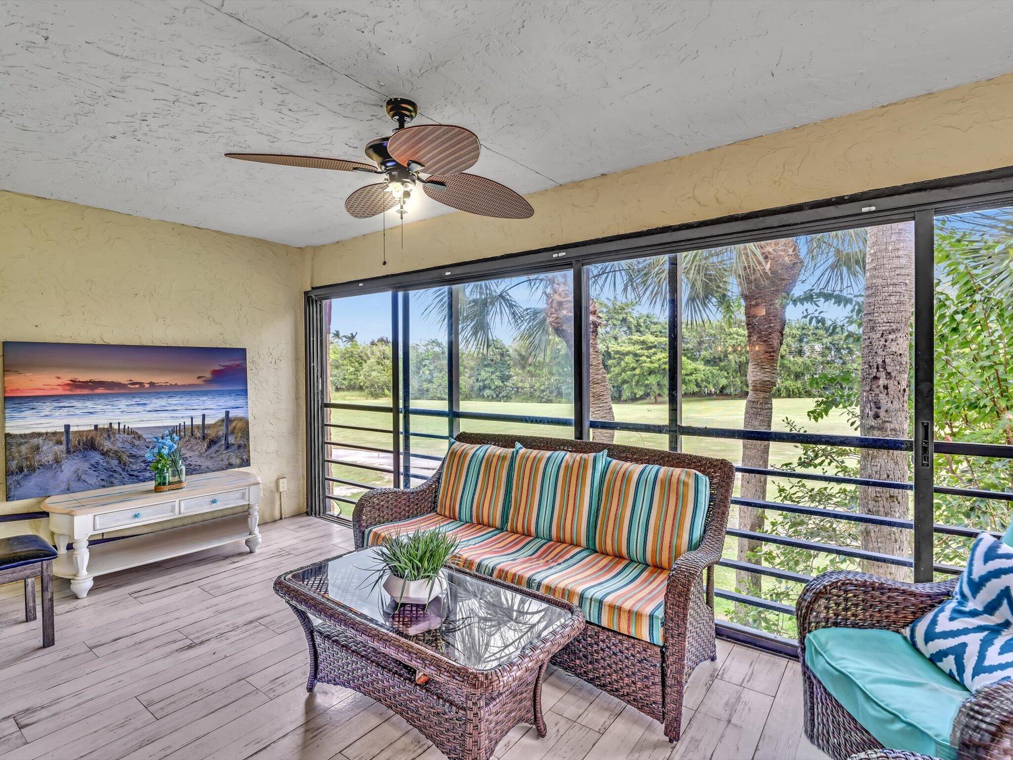 Beautiful 2 bdr/ 2 ba 2nd floor unit in desirable Aspen Glen. Remodeled throughout including a gorgeous kitchen featuring SS appliances. Stunning oversized, marble counter top provides ample bar stool seating that flows into the dining & living rooms allowing you to entertain comfortably. The elegant shiplap wall adds to the warmth of this cozy condo. Light & bright primary bedroom has large walk in closet. Updated main bath incudes double sink vanity.Enjoy the golf course views from your lovely, screened & very private patio. Italian tile, wood like plank floors throughout. Washer/Dryer in unit. AC & Water heater 2021. Large storage unit just out your front door. This adorable community has a pool & clubhouse with the option for membership at Indian Springs. Close to restaurants & shops!