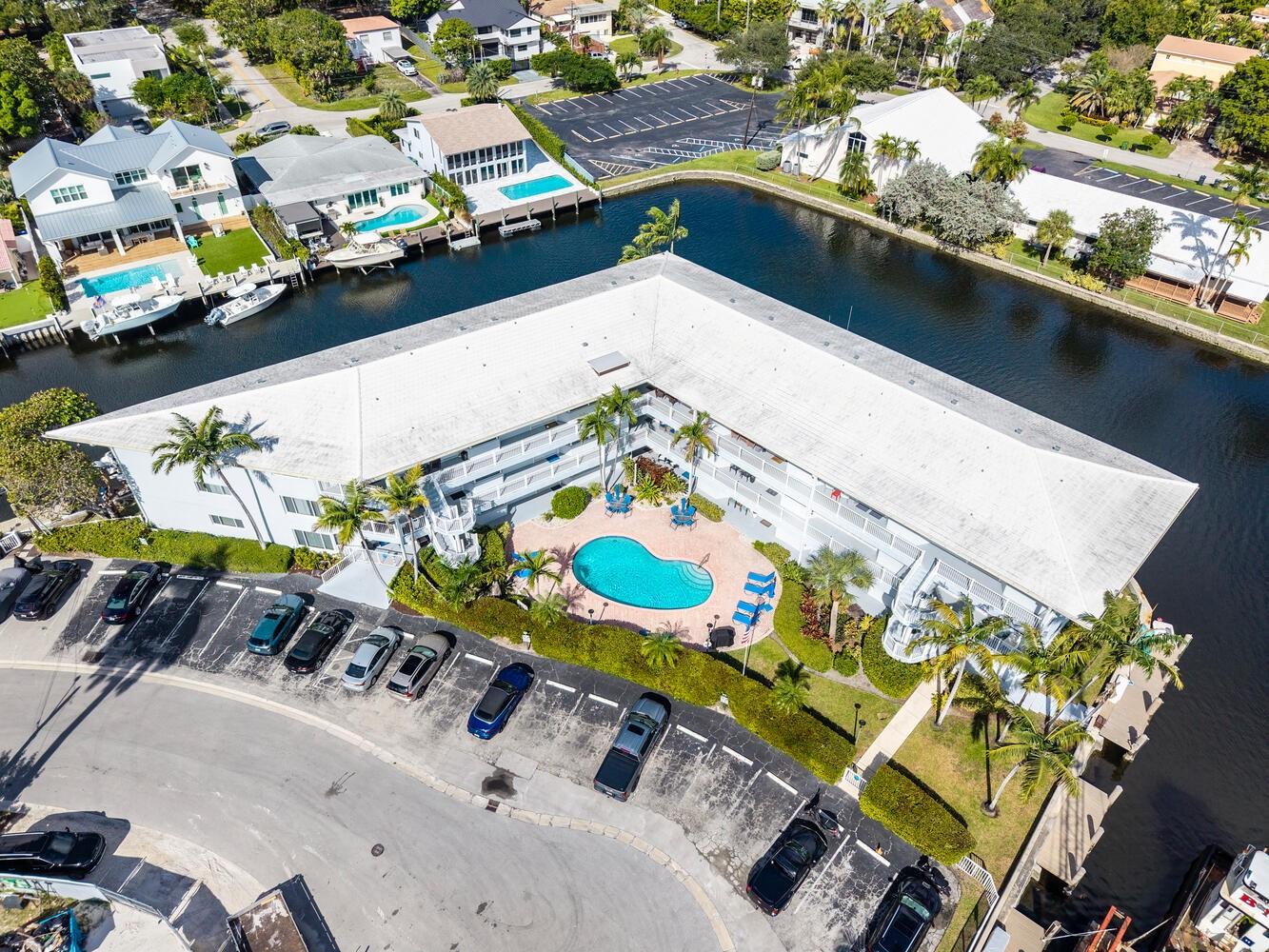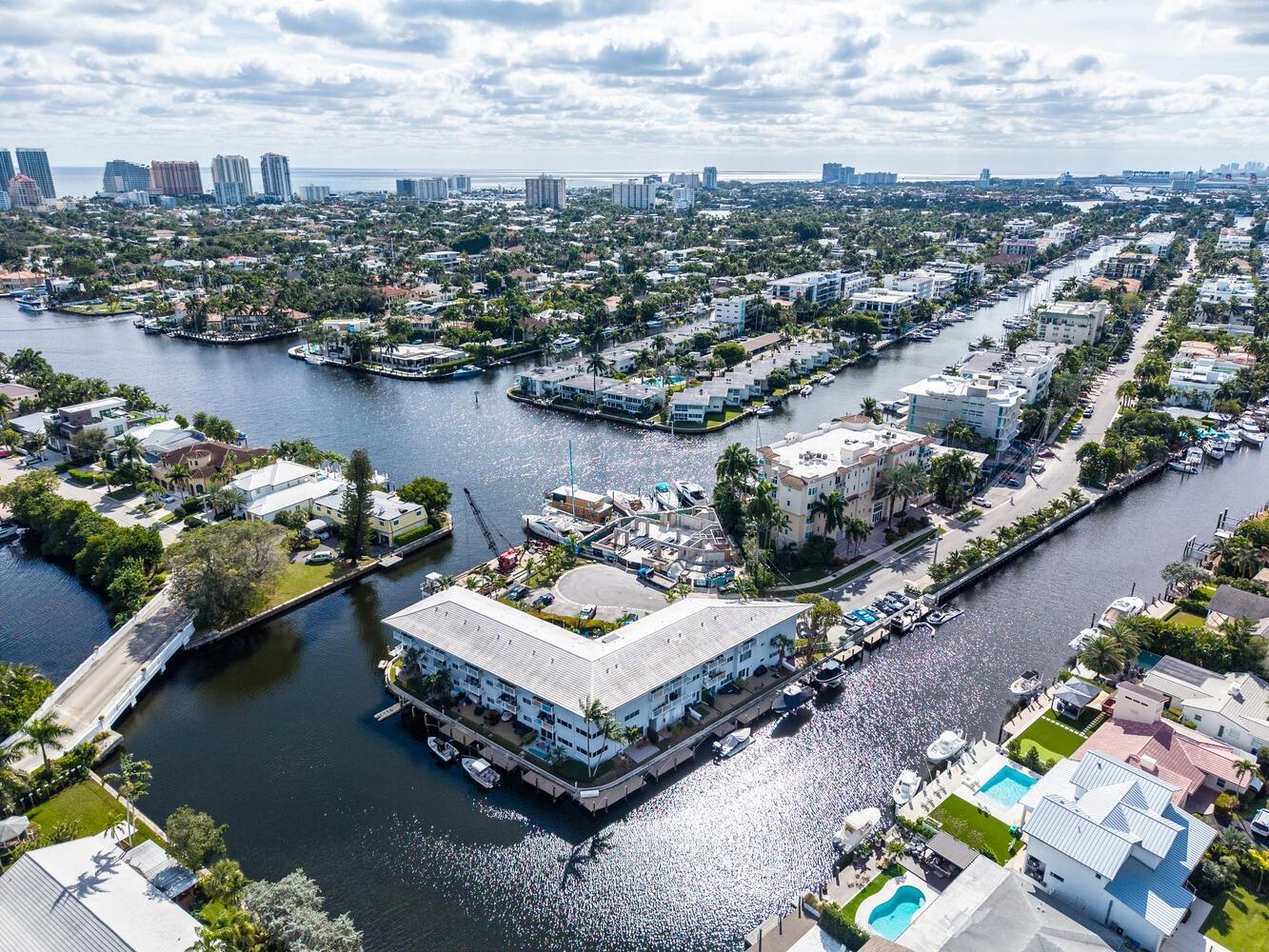 Stunning Pied-a-terre in charming Burton point, private dock for up to 25' boat, no fixed bridges, Ocean access. Close to all the wonderful restaurants and stores on Iconic Las Olas Blvd., minutes to the Beach, Downtown, major highways and Airport. Spaced maximized for easy living, custom Murphy bed with desk. Impact doors opening to your private deck and dock to enjoy the beautiful Florida Sunsets! Ample closet space. Building has completed its 40 year and paid in full. Maintenance includes the land lease. Isn't it time to enjoy the las Olas lifestyle!