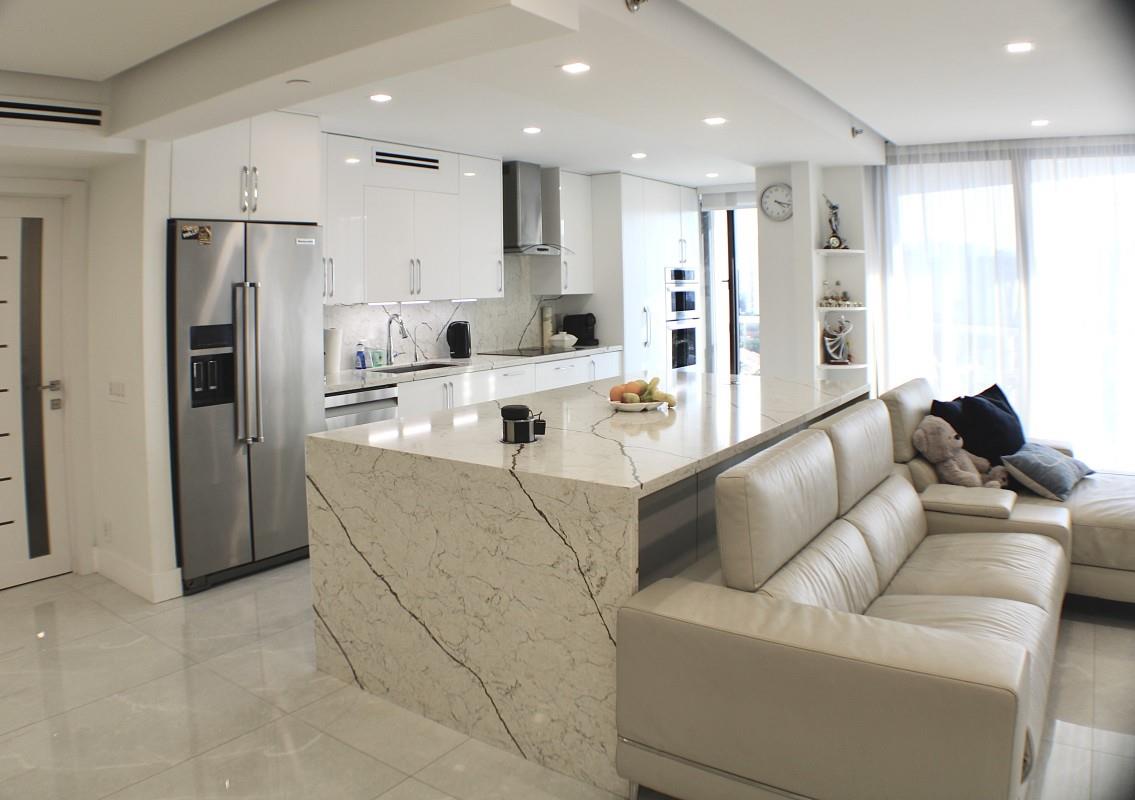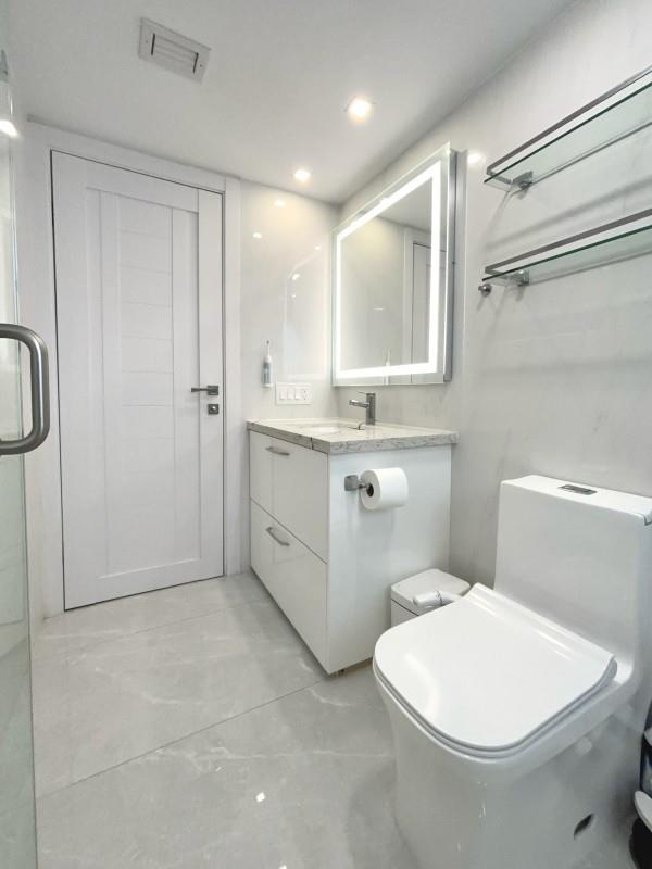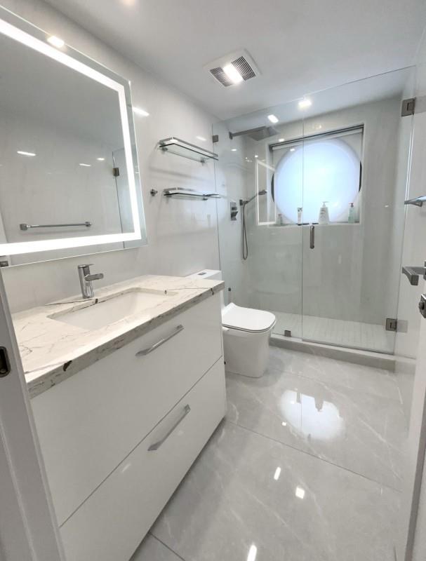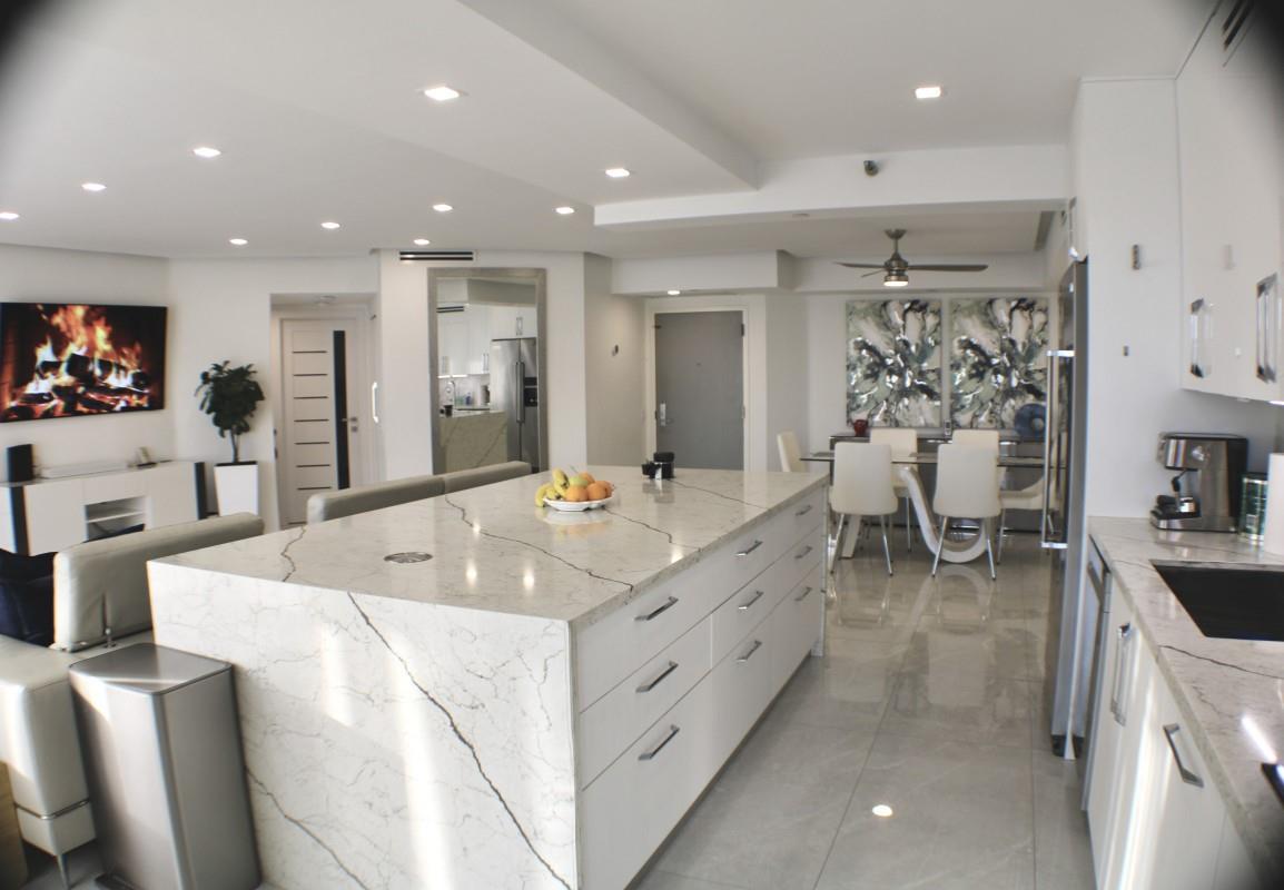 Completely remodeled/upgraded south-west corner unit has 3bd/2ba, a large balcony with stunning water view of the Waterways marina. Modern rectified porcelain tile floors, completely renovated custom build kitchen with a large island high end stainless steel appliances. Completely renovated bathrooms. Lots of custom built closets. Full size washer and dryer in the unit. Recessed lights throughout. Custom European doors. Brand new impact windows and doors. Custom Hunter Douglas uv shades. 5-star amenities.