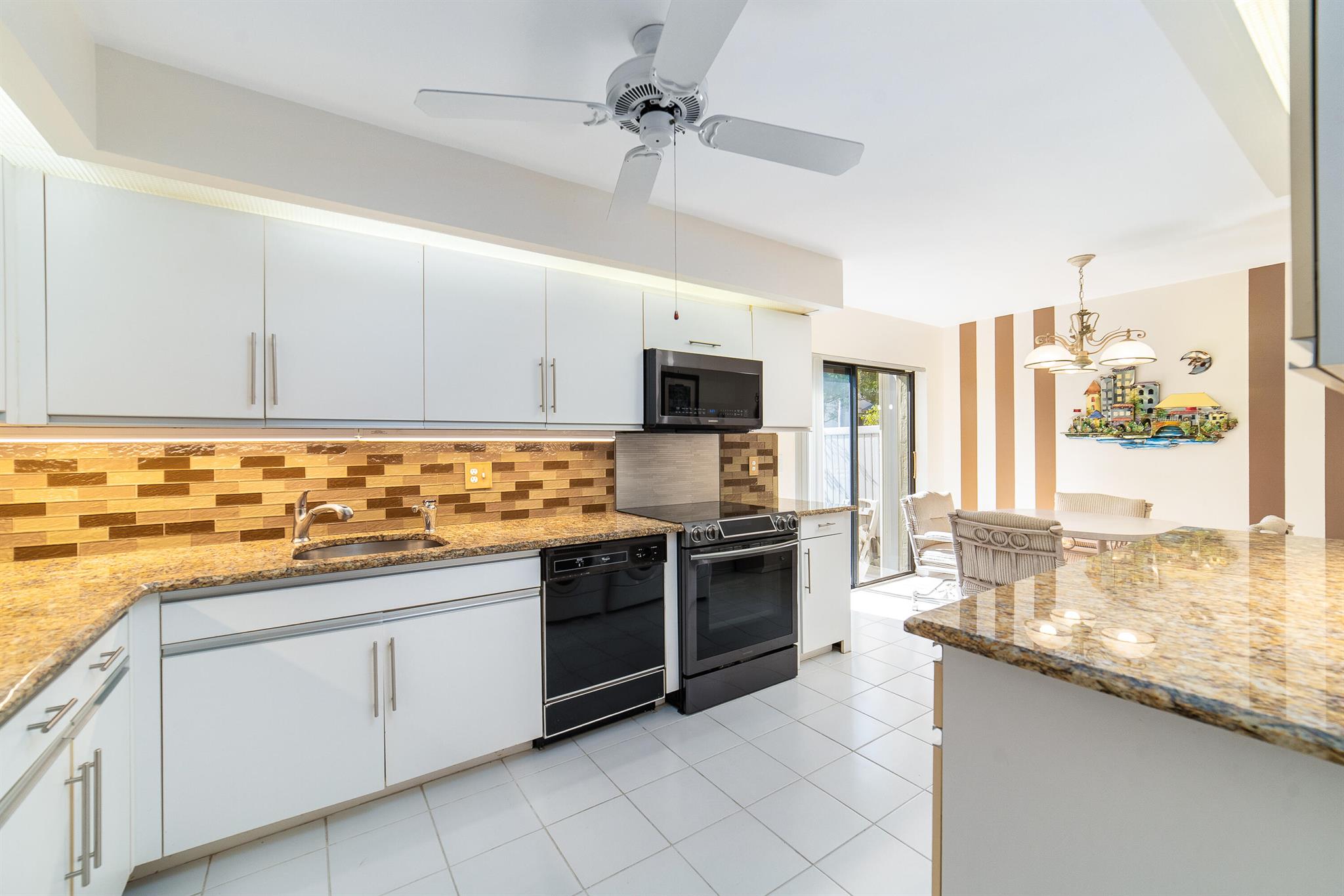 This spacious 1,809-square-foot condo offers sweeping golf course and lake views, three bedrooms--one that can serve as a convertible den, granite counter tops in the kitchen, and two beautifully updated bathrooms. Located on the ground floor, it provides comfortable, convenient access to the outdoors. Inside, abundant natural light fills the living spaces, while the private screened patio overlooking the golf course and wildlife, is perfect for al fresco dining and enjoying Florida's beautiful weather. Off the kitchen and dining room is a large private patio ideal for grilling and outdoor entertaining. There is also a community pool and clubhouse minutes away.