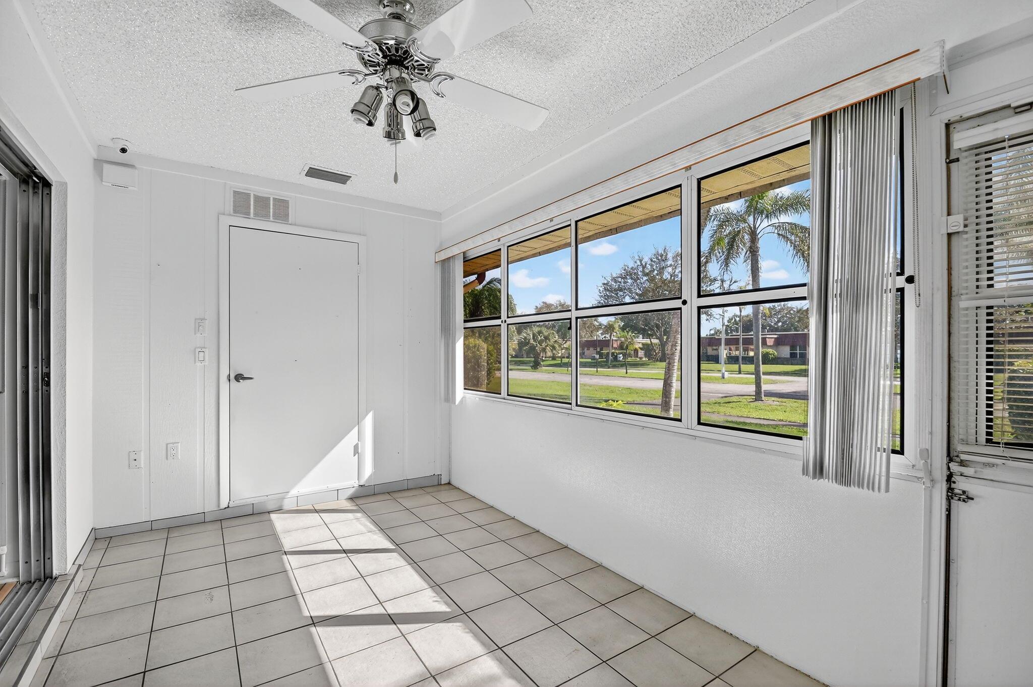 Great opportunity in the 55+ community of Covered Bridge. This 2BR/2BA corner villa features impact windows, a newer 2023 AC, a 2023 roof, an in-unit washer/dryer, plus a convenient built-in Murphy bed in the guest room--perfect for visitors. Assigned parking directly in front adds everyday convenience. Enjoy two heated pools, tennis, clubhouse, fitness center, billiards, shuffleboard, and beautiful walking paths throughout the community. Located close to shopping, restaurants, and the FL Turnpike for added convenience. Start enjoying your best life in sunny South Florida!