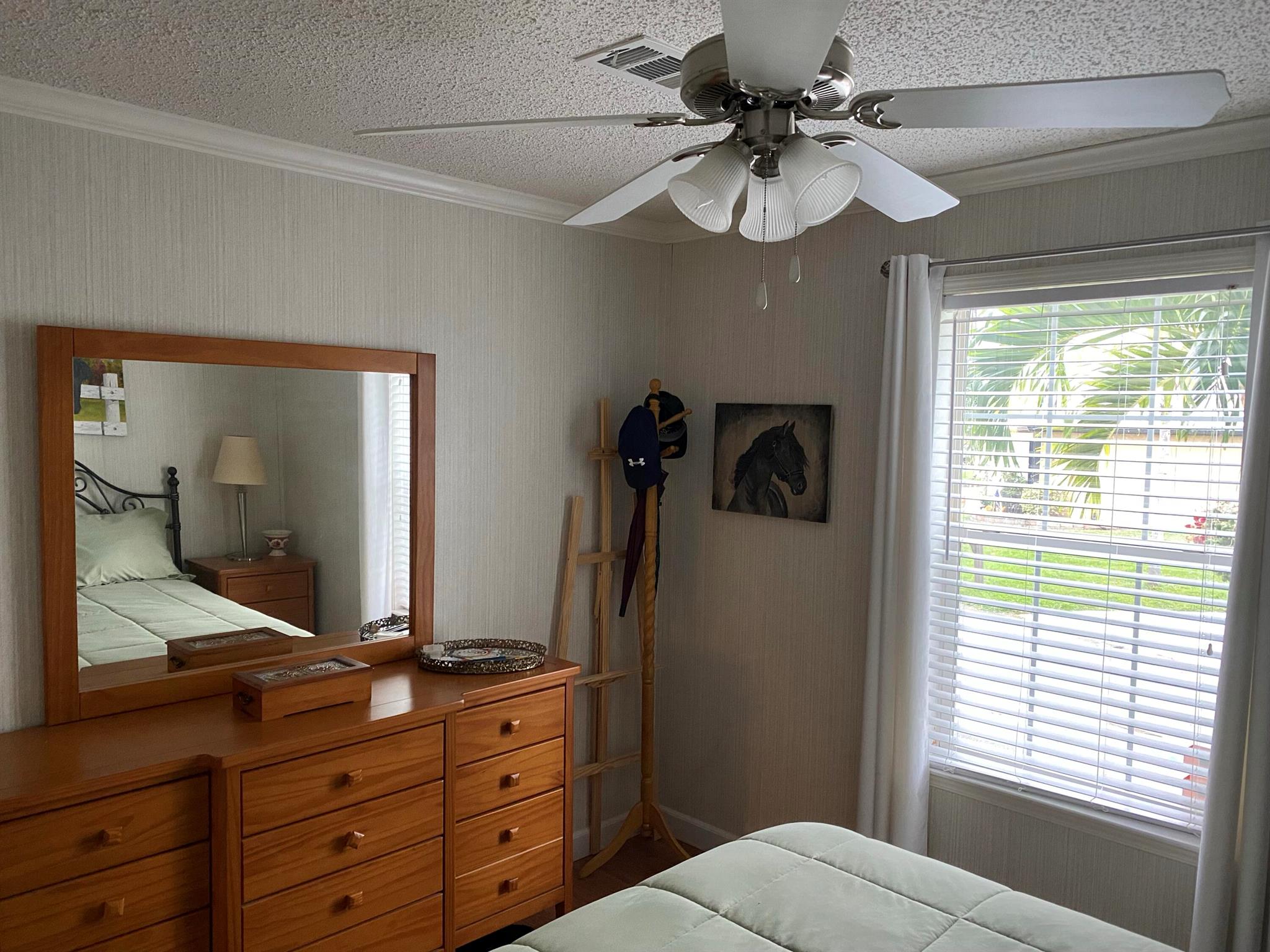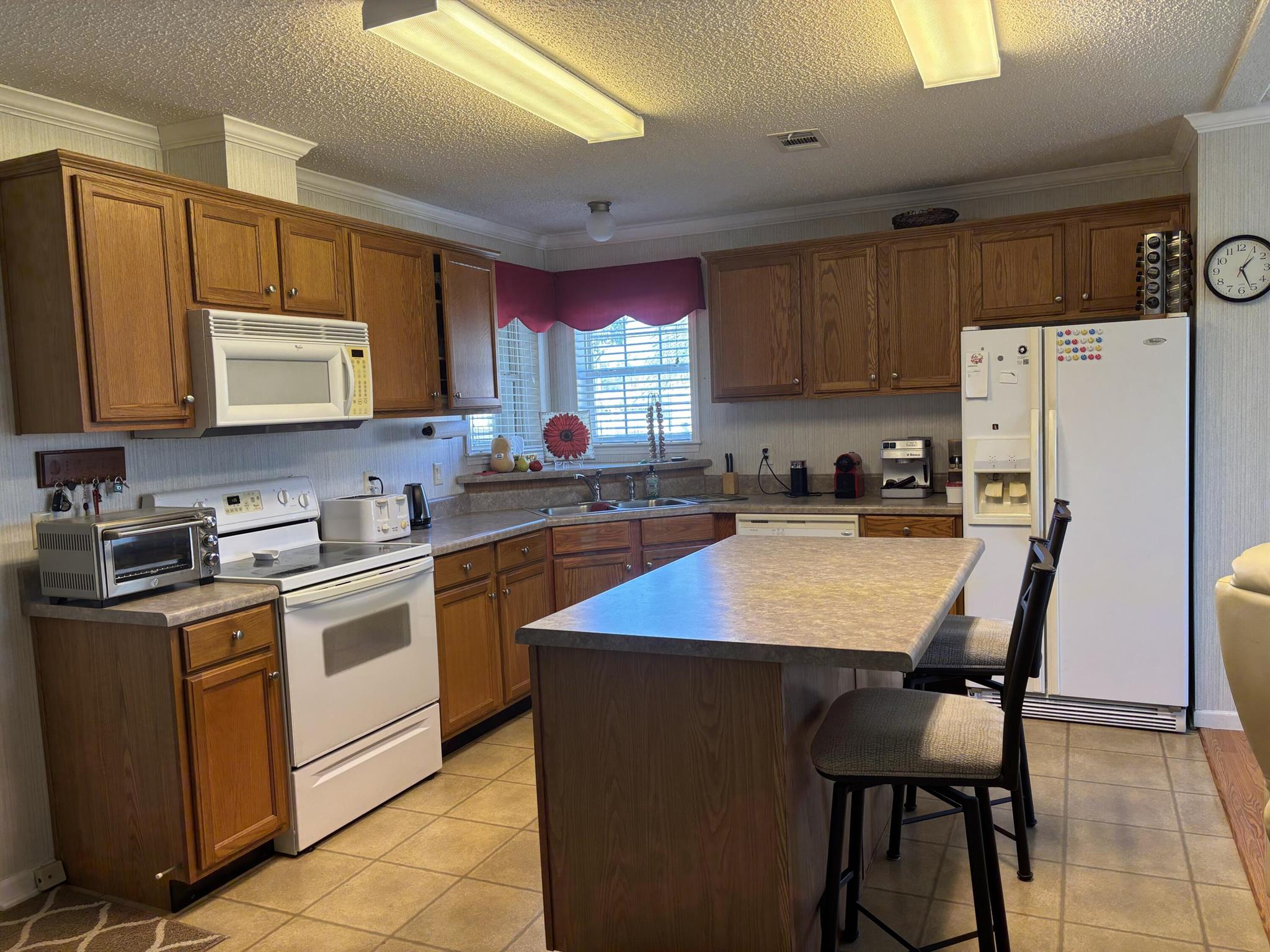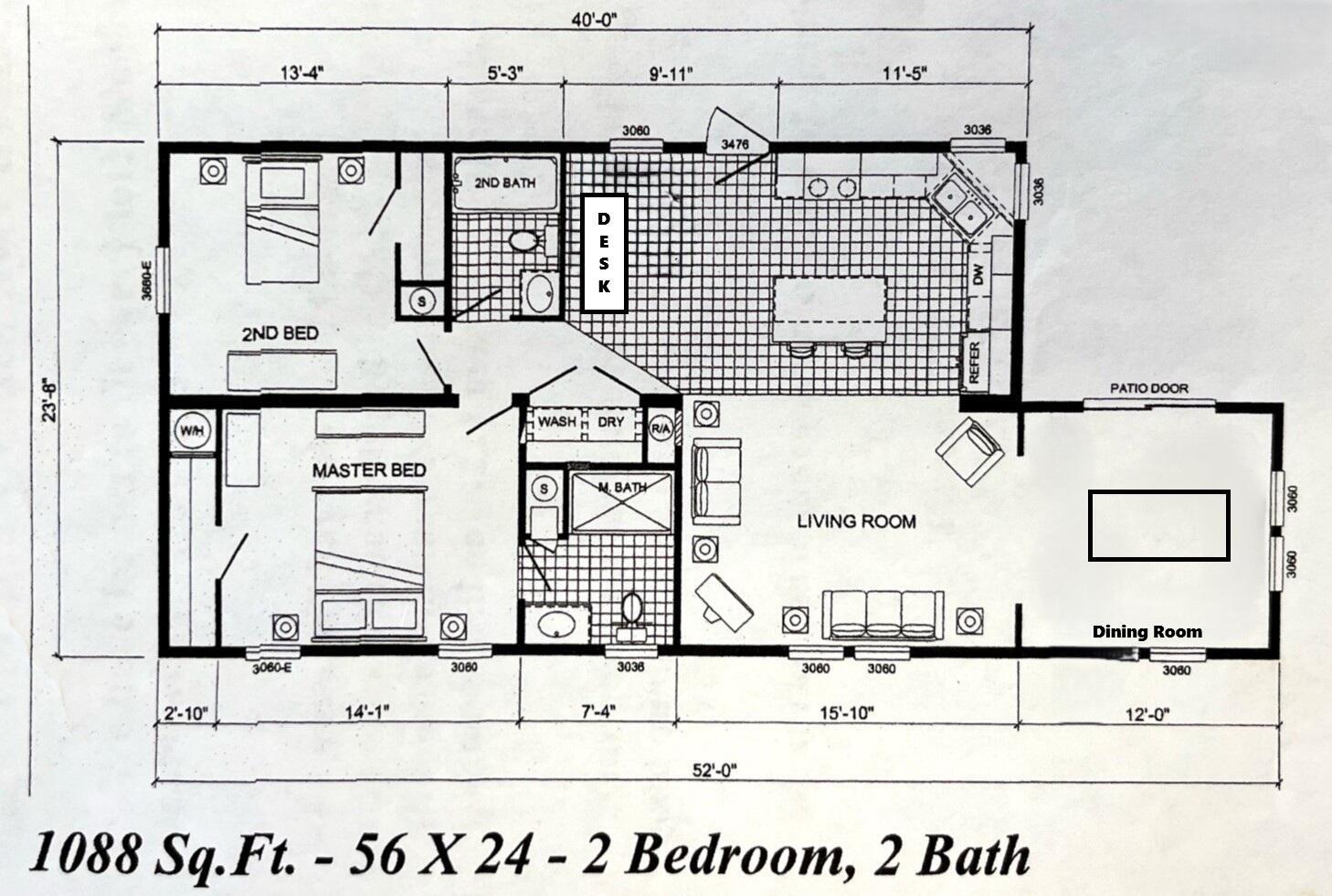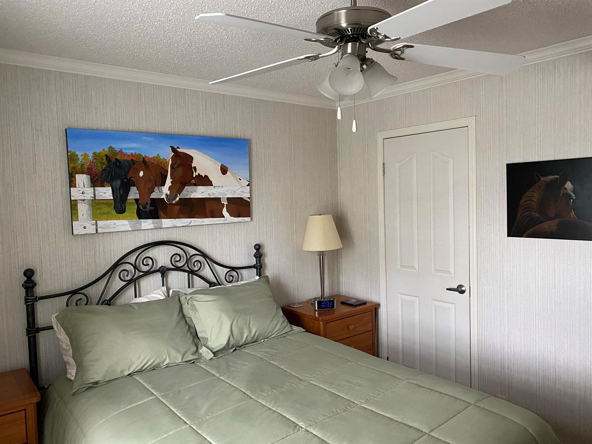 Leased Lot $910.60, This pristine 2bed/2Bath furnished manufactured home with crown molding and new AC 2021. Kitchen is open and includes large island, inside laundry, laminate flooring. Large private screened porch and solar shades. Located in a 55+ community, Spanish Lakes One provides a relaxed yet vibrant lifestyle for active seniors. Enjoy resort-like amenities, including a community clubhouse, free golf, social events, tennis courts, and pool. Park approval is required to purchase.