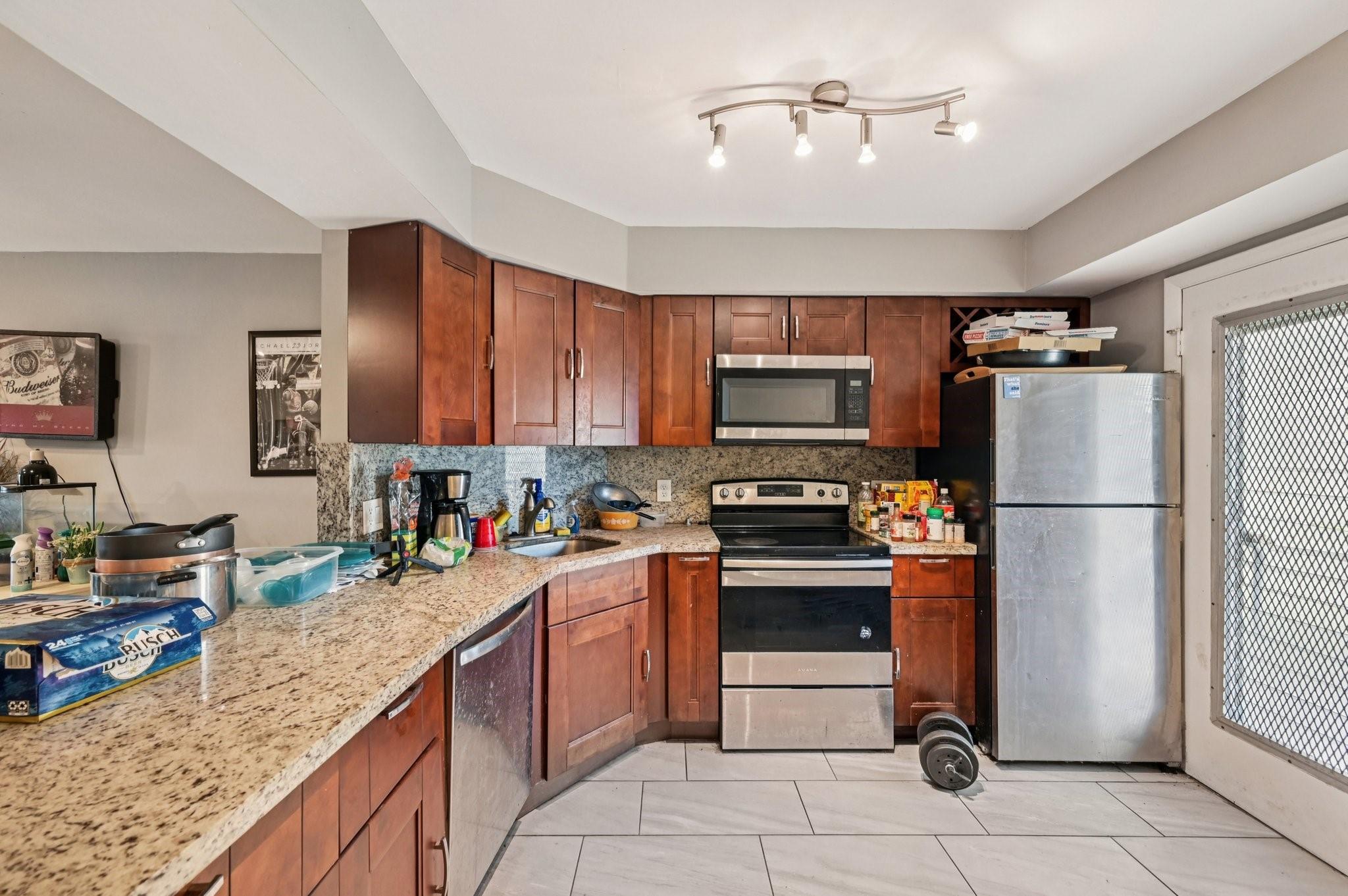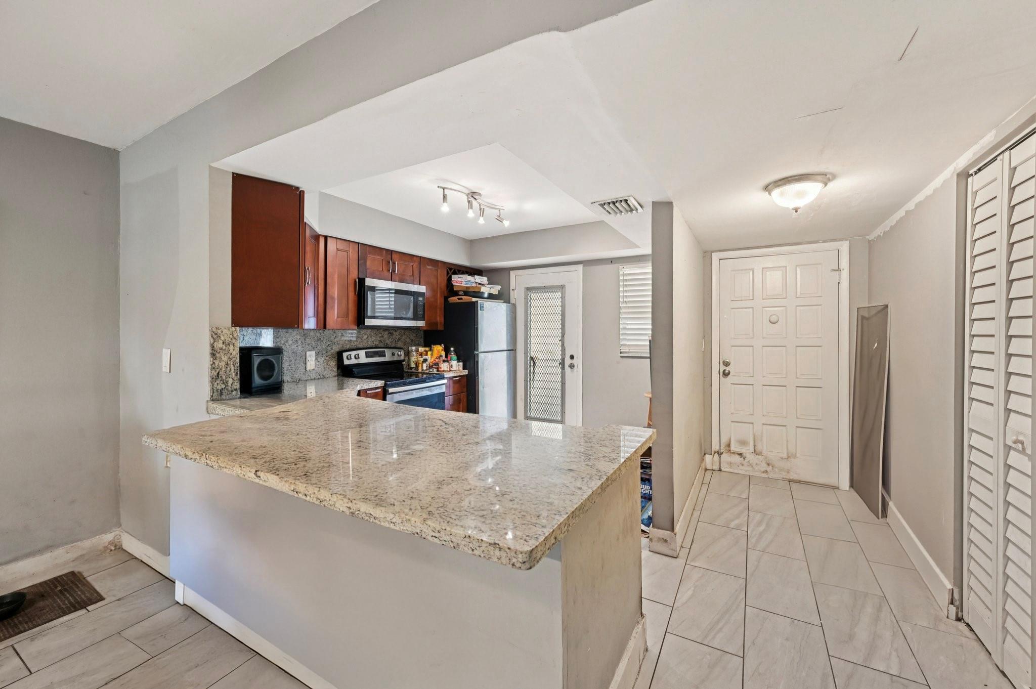 Bright and nicely updated 2 bedroom 2 bathroom ground level unit, split floor plan, parking space up front, stainless steel appliances, Modern kitchen with granite countertops, tile flooring throughout, large primary bedroom with a walk-in closet. Guest bedroom is spacious with ample closet space, Bathrooms include, shower & bathtub with granite counter tops, This all-ages community offers a pool, gated security, and includes basic cable and water. #111 is Move-in ready and easy to love!