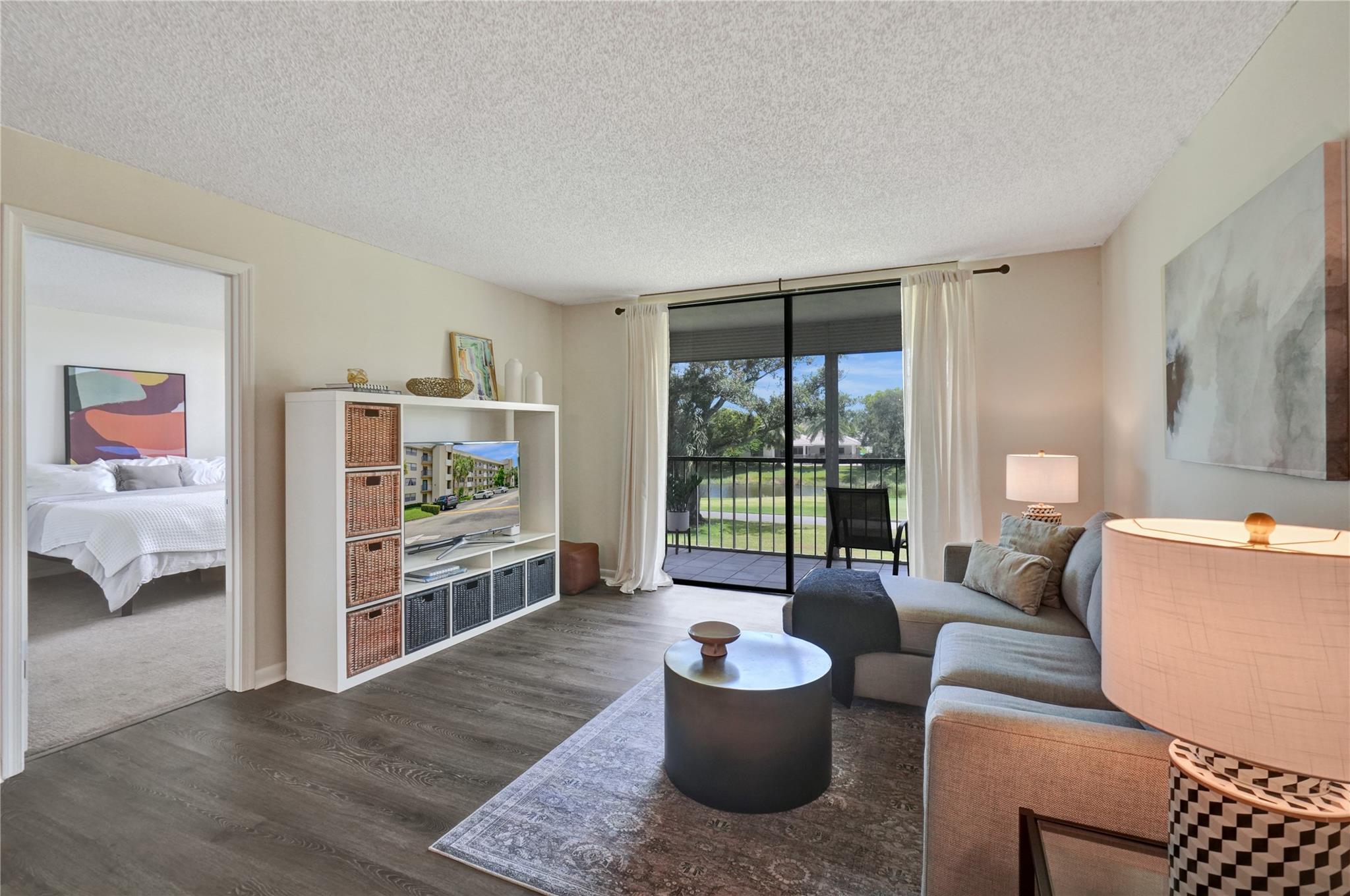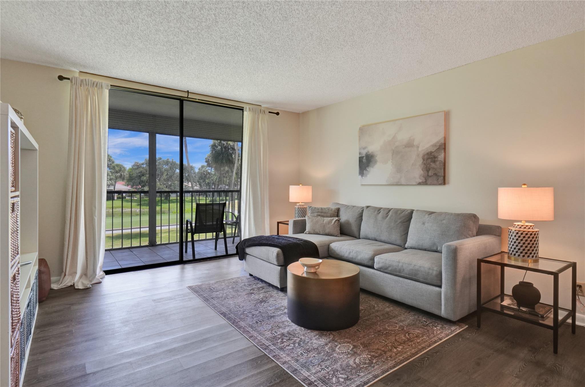 Gorgeous light, bright and updated unit with a beautiful view of the golf course from the large screened in balcony. The kitchen features bright white cabinetry and sleek granite countertops, offering a clean, modern look with plenty of storage and style. Perfect for cooking and entertaining. Spacious living room and dining room area has luxury vinyl plank flooring throughout. Featuring a split bedroom plan for privacy both bedrooms have walk-in closets and ensuite updated bathrooms. Amenities include a heated pool, gym, tennis courts, shuffleboard, Billiards room, BBQ and clubhouse. SIRS, 40 year and new roofs completed and reserves are being funded, no upcoming assessments. Club membership not required. Only Service or ESA animals allowed.