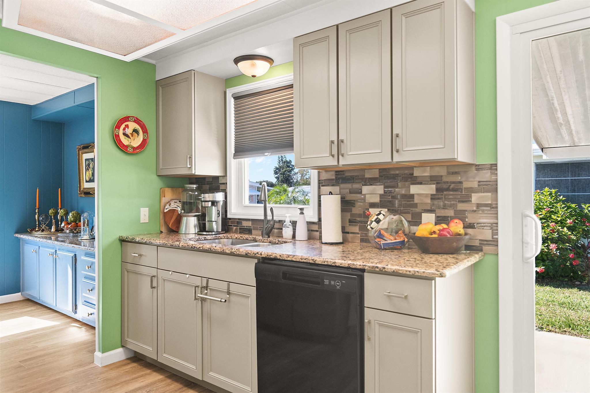 Welcome to 151 Sharyon Lane, Jensen Beach, Florida! This charming double-wide home is nestled in the sought after 55+ community of Pinelake Village, just minutes from the ocean. This beautifully maintained 2-bedroom, 2-bath home features a remodeled kitchen, updated bathroom vanities, new siding, new windows, and new doors. You will also love the year-round Florida Room newly enclosed in 2023!Lot rent is $765 per month and includes cable, trash removal, recycling and all the amenities of the clubhouse.