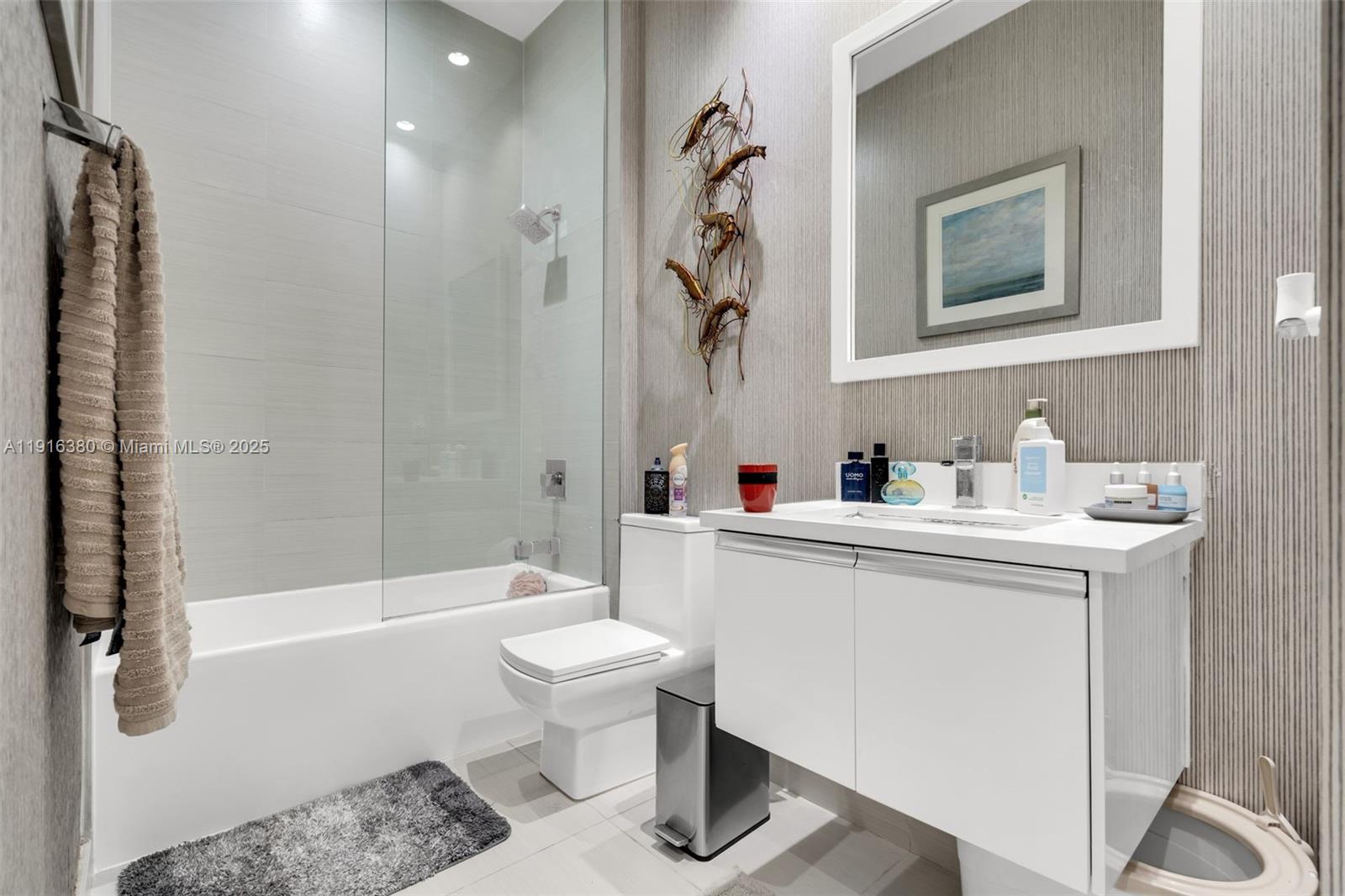 Beautiful and modern corner condo in Landmark at Doral, located on the ground and first floor, featuring 3 bedrooms and 2 bathrooms. This elegant residence was originally the Lennar model unit and includes ceiling molding, designer wall accents, and an open-concept kitchen with high-quality finishes. Enjoy bright and spacious living areas, porcelain floors, and soft vinyl flooring in the bedrooms. The unit also offers a private parking space. Move-in ready and perfect for those seeking style, comfort, and a prime location in one of Doral’s most desirable communities.