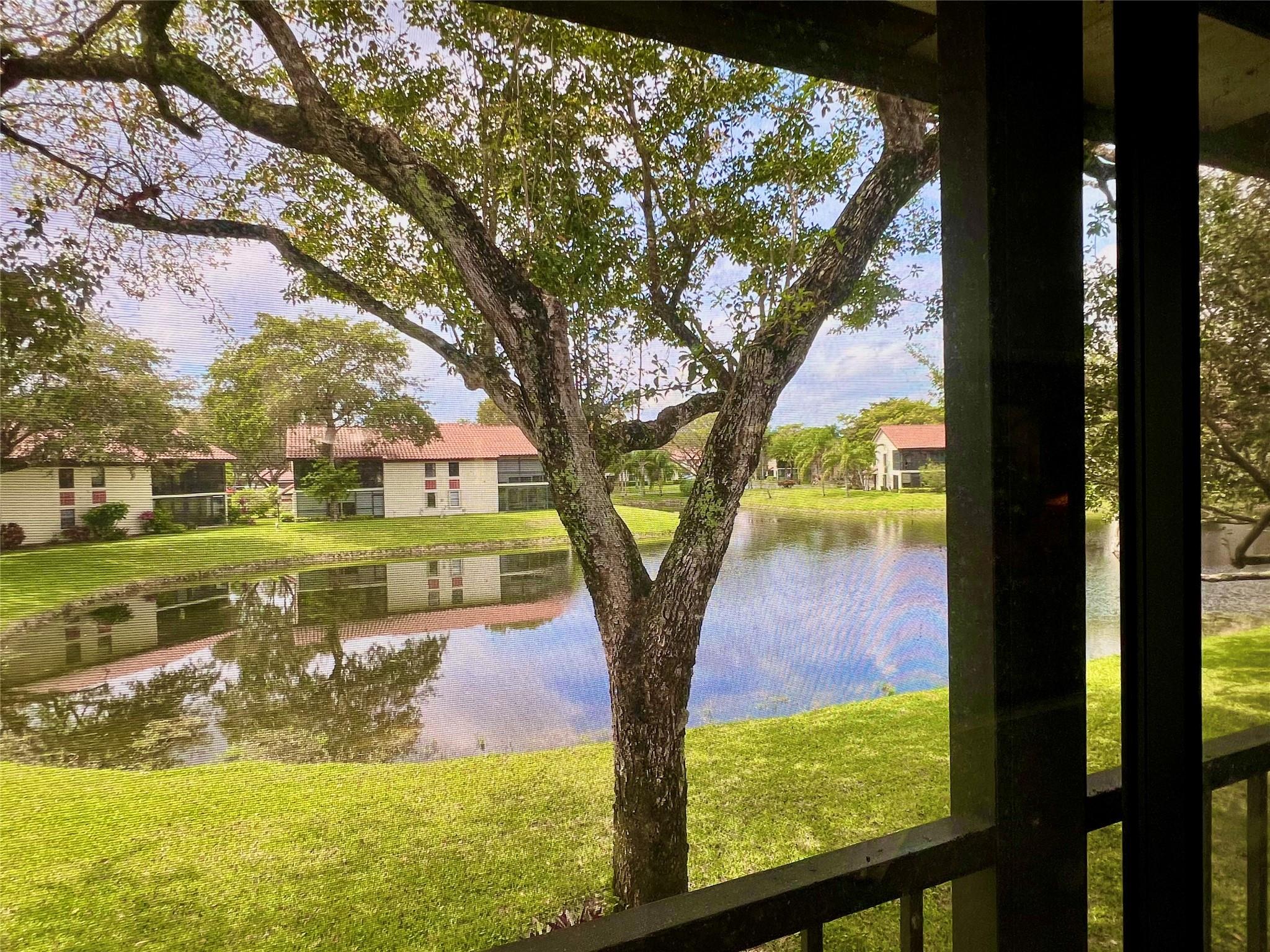 Bright and Open 2nd Floor 2-Bedroom, 2-Bathroom Condo with an added Den/Office/potential 3rd Bedroom and Large, Enclosed Air-Conditioned Lanai. GORGEOUS and PEACEFUL Water Views! Updated Luxury Vinyl Plank Flooring throughout. Warm & Welcoming Unit with Over 1700 sf of Living Area Under Air. New Microwave & 2-Year Old Dryer. Updated Electrical Panel. Accordion Shutters Throughout for Easy Hurricane Prep. Built-ins Create Extra Storage and a Convenient Murphy Bed with New Mattress is in the 2nd Bedroom for Guests. Most Furniture is Included! Quick Closing if Desired. Palm Chase is a Desirable Community Nestled Behind a Church/Seminary 1/4 Mile from the Street to a Gated entrance. Amenities include a Temperature Controlled Pool, Tennis, Pickleball, Hot tub, Sauna, Fitness Rooms & More!