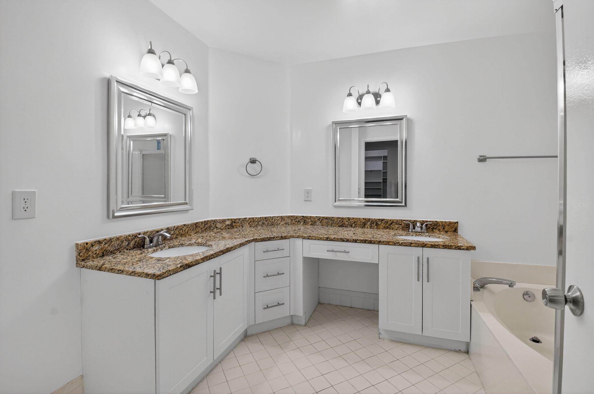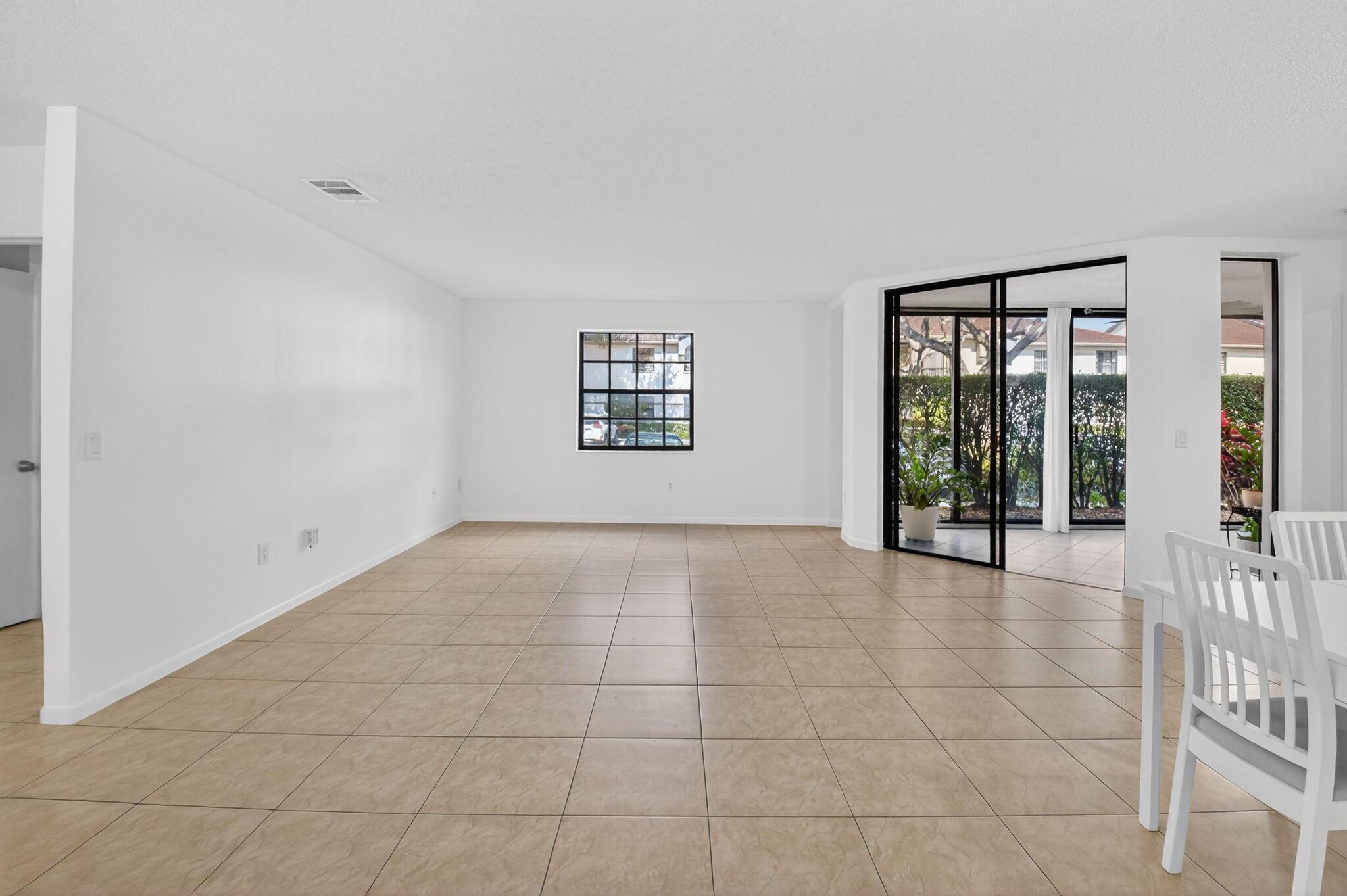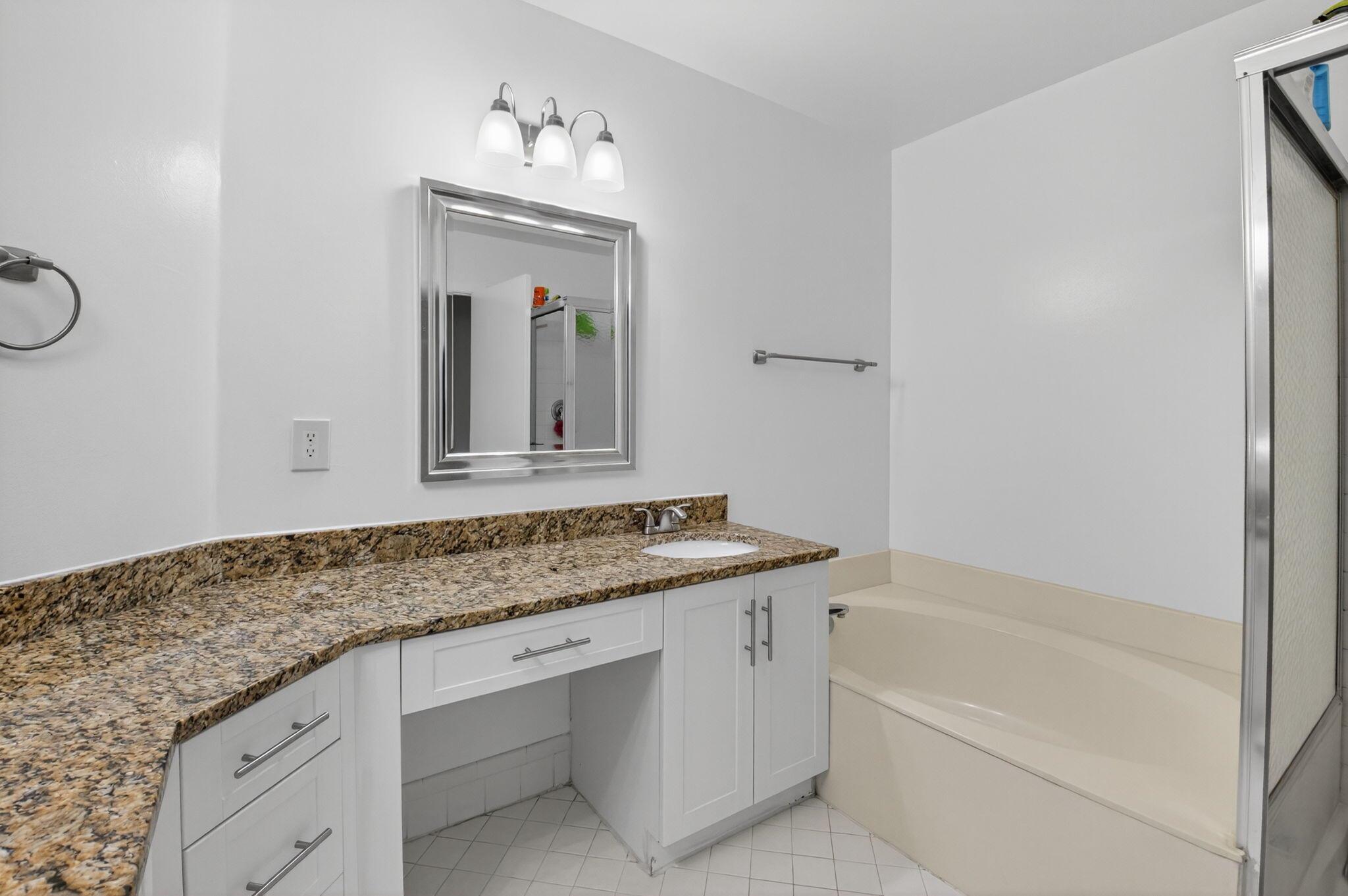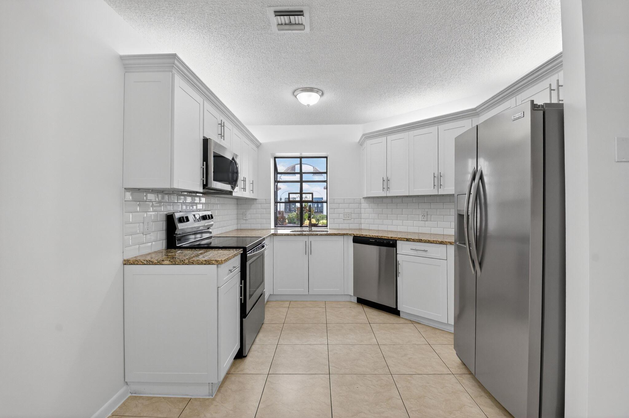 Bright, spacious, and impeccably maintained first-floor condo located in the desirable resort-style manned gated community of Platina. This all-ages 3-bedroom, 2-bath residence features a split floor plan and tile flooring throughout. The renovated kitchen offers stainless steel appliances, white shaker cabinetry, and granite countertops, ideal for everyday living and entertaining. The primary suite includes dual sinks, a separate shower and soaking tub, and multiple closets, including a large walk-in with built-ins. Ample storage and closet space throughout. Only pay electric- all other utilities are included in the monthly maintenance fee. Association has no assessments and fully funded reserves. HOA includes amenities, lawn maintenance, building insurance, roof, cable, internet, water