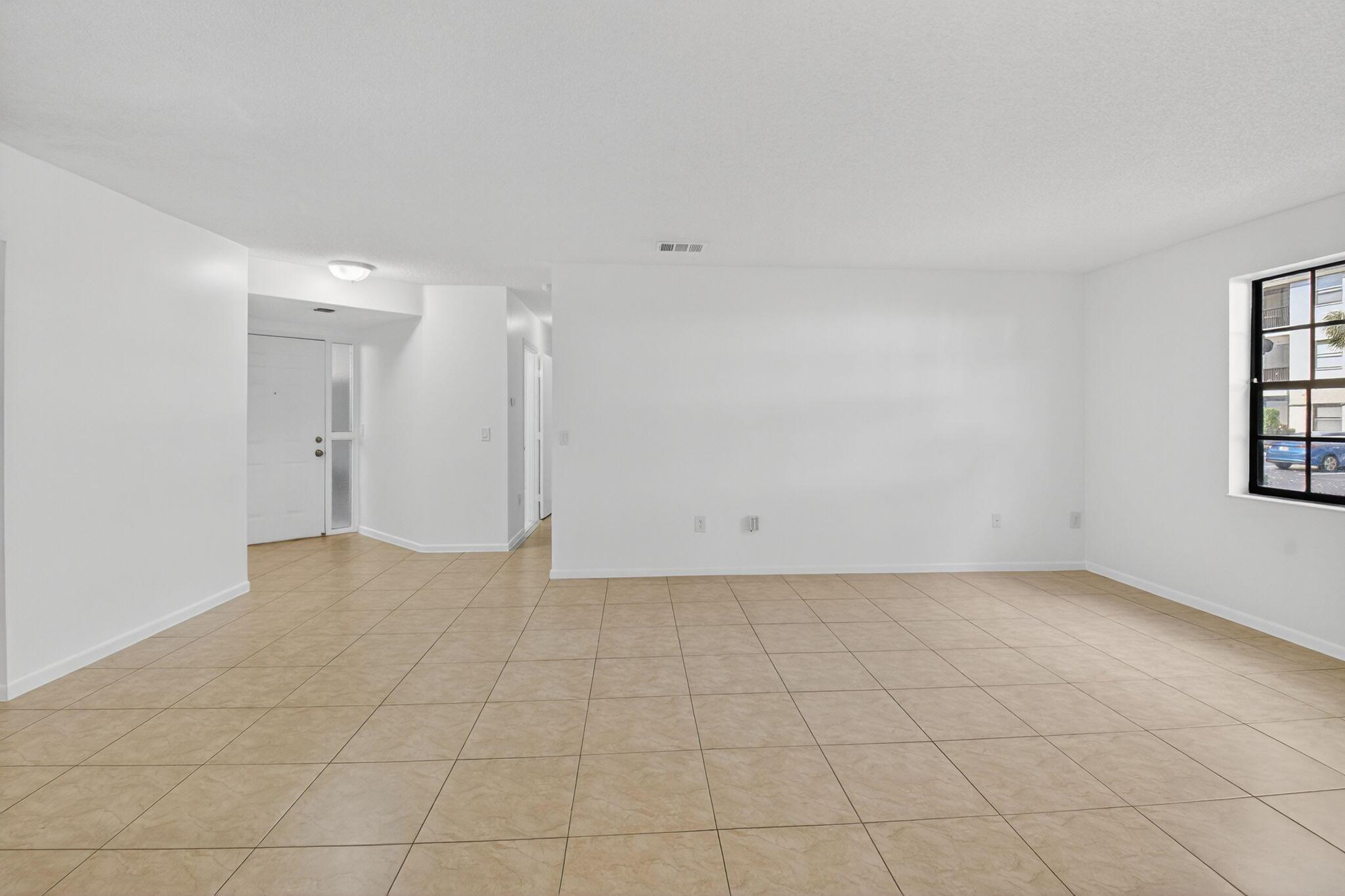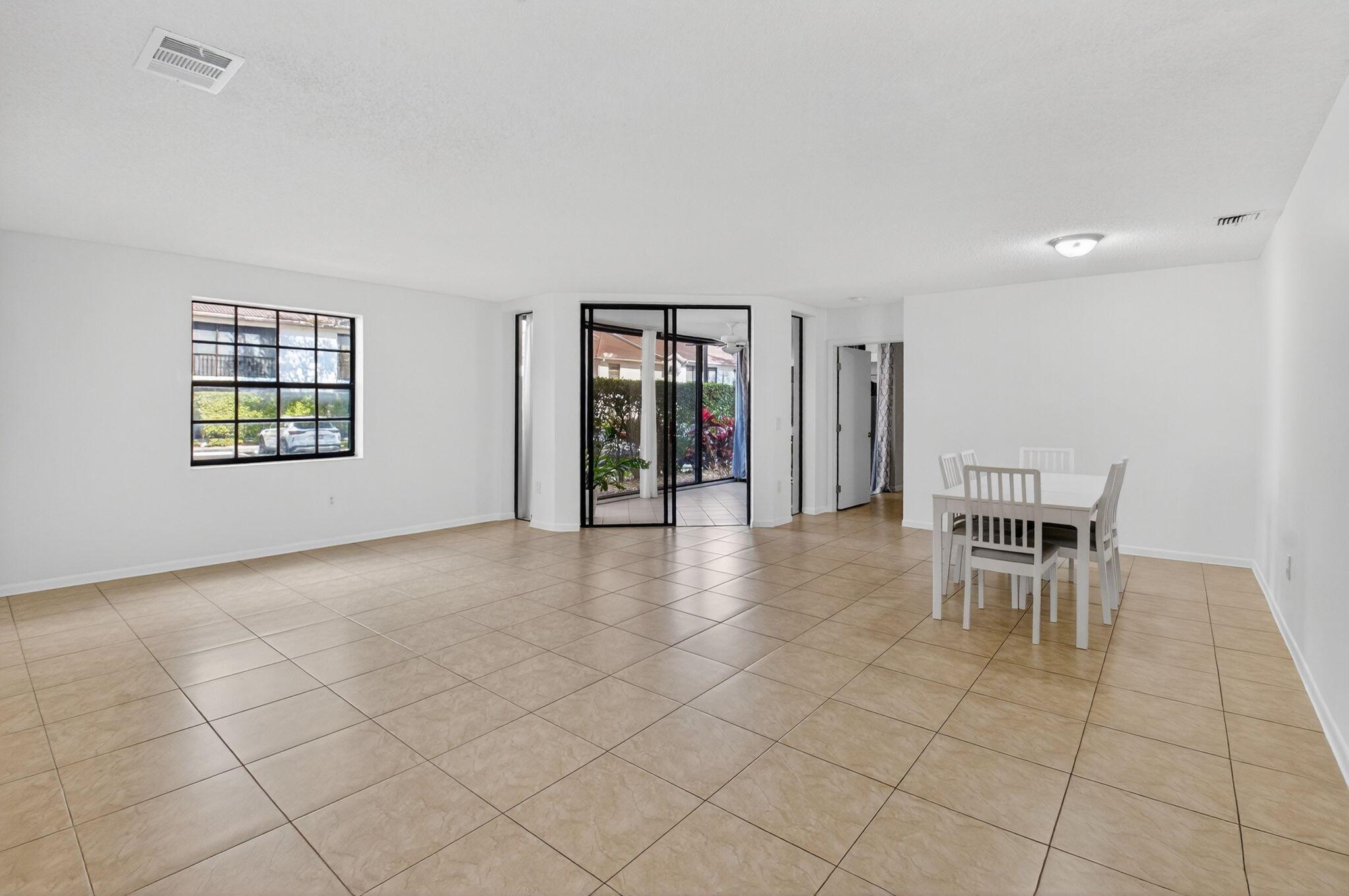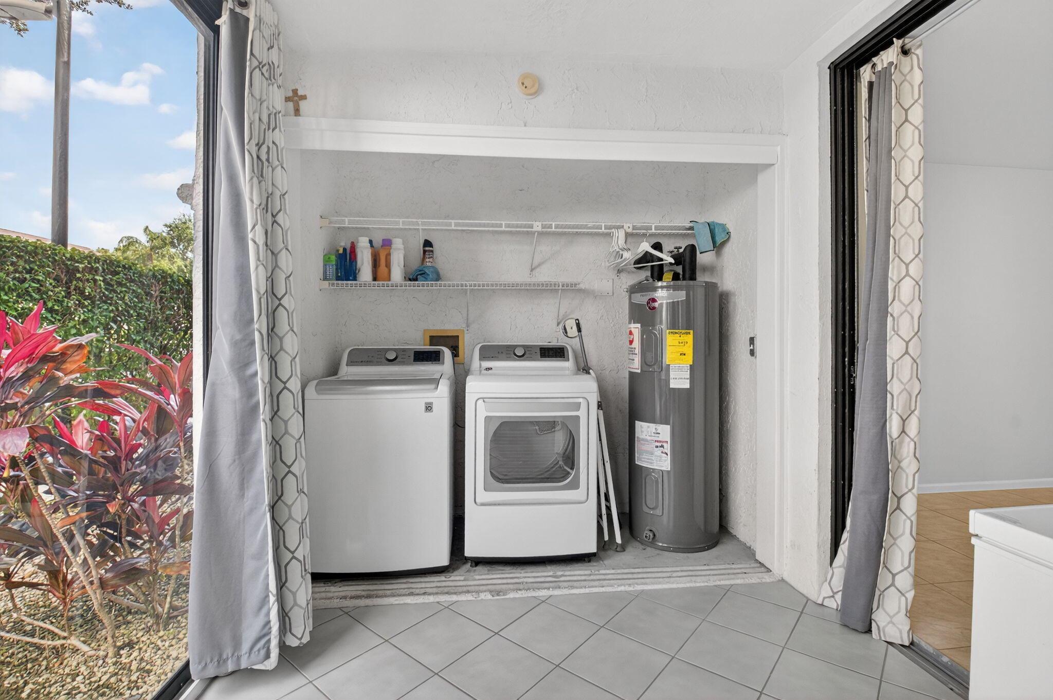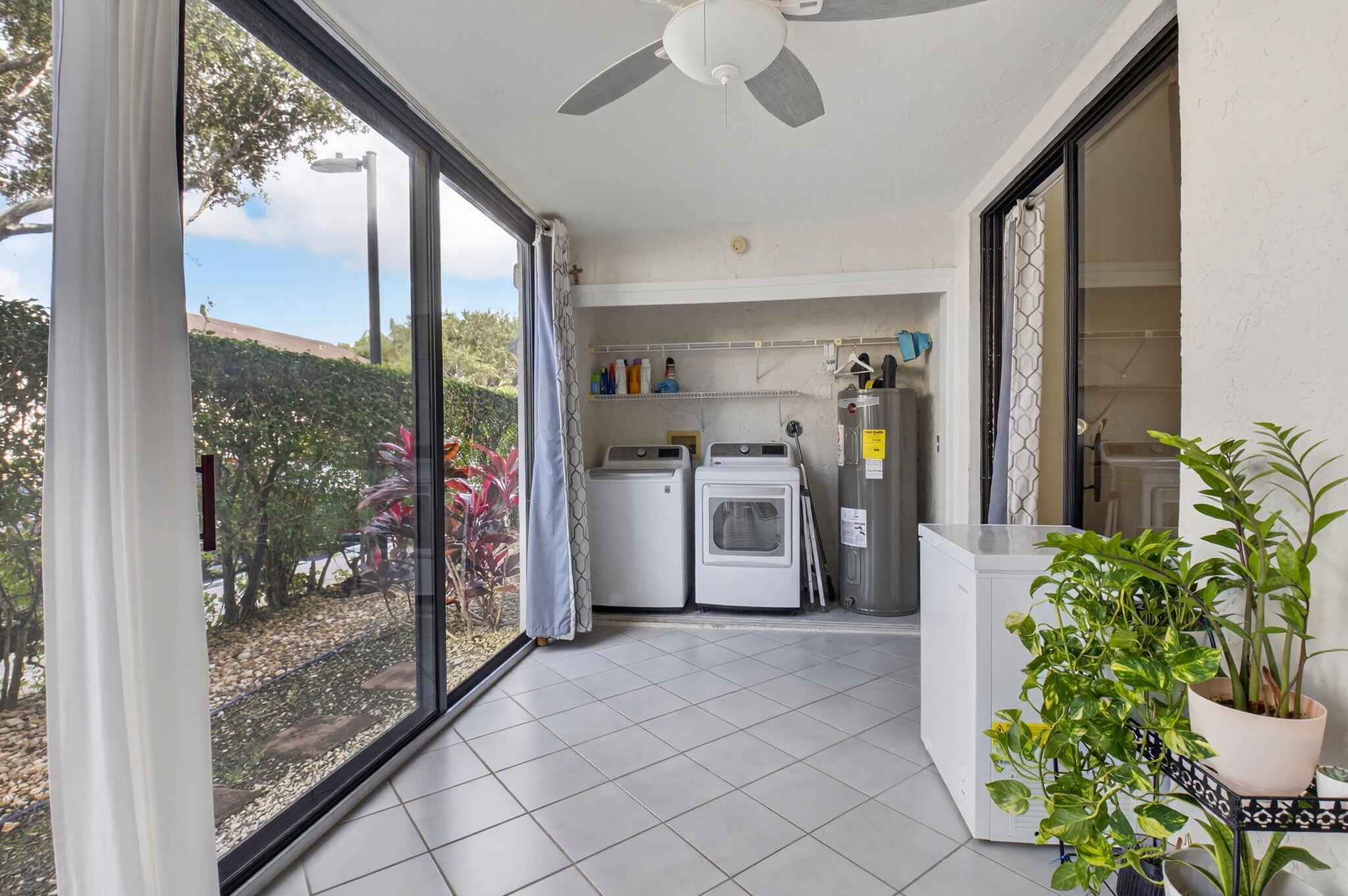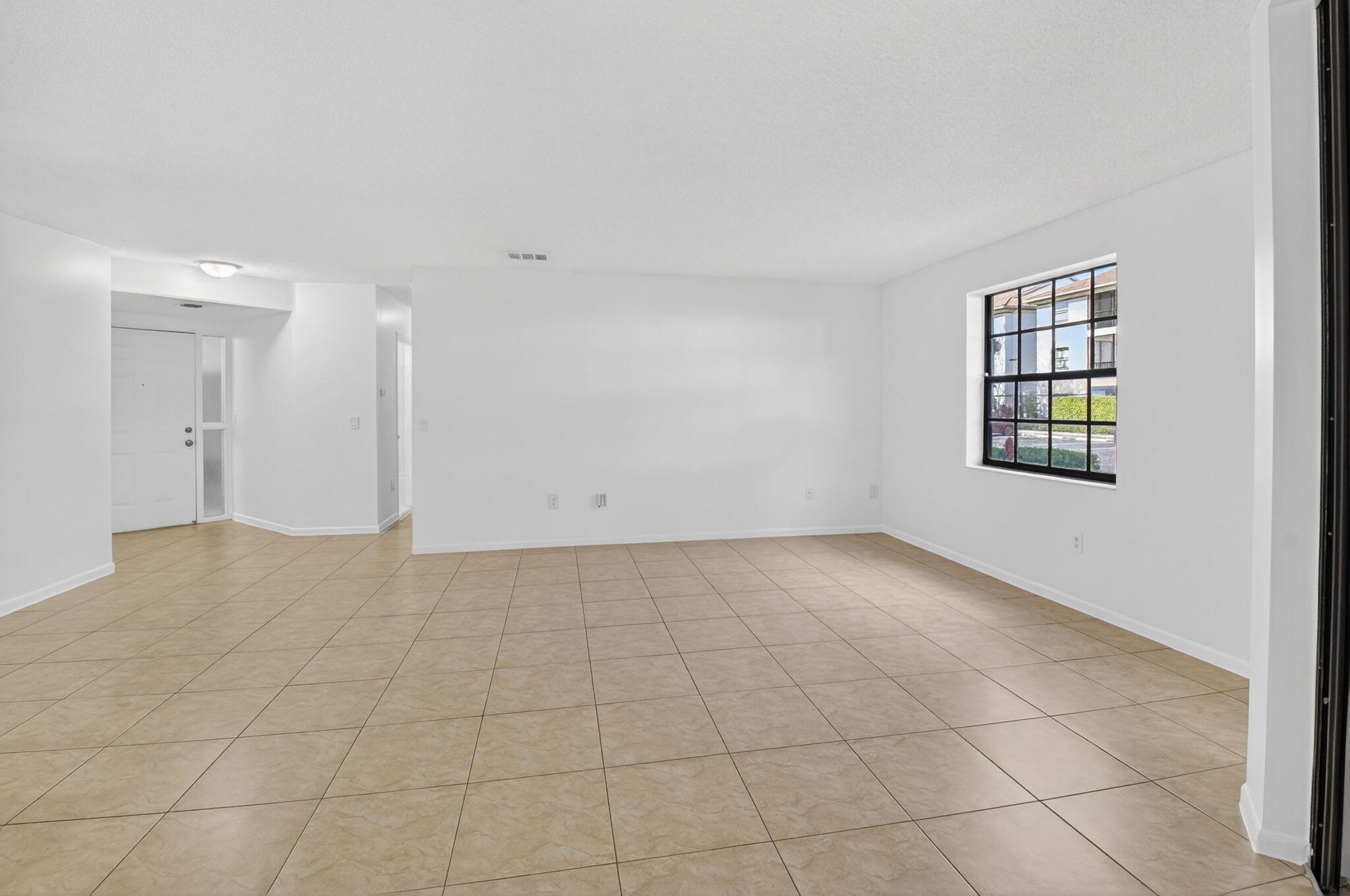 Bright, spacious, and impeccably maintained first-floor condo located in the desirable resort-style manned gated community of Platina. This all-ages 3-bedroom, 2-bath residence features a split floor plan and tile flooring throughout. The renovated kitchen offers stainless steel appliances, white shaker cabinetry, and granite countertops, ideal for everyday living and entertaining. The primary suite includes dual sinks, a separate shower and soaking tub, and multiple closets, including a large walk-in with built-ins. Ample storage and closet space throughout. Only pay electric- all other utilities are included in the monthly maintenance fee. Association has no assessments and fully funded reserves. HOA includes amenities, lawn maintenance, building insurance, roof, cable, internet, water
