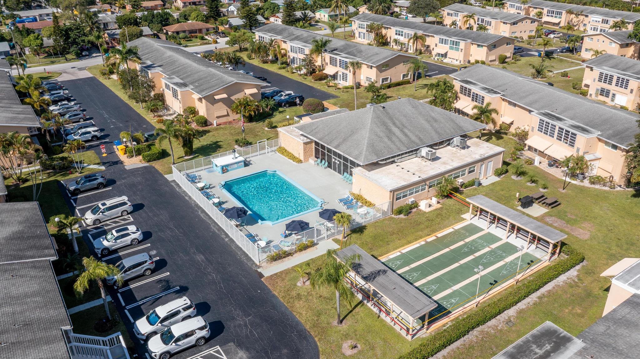 Lovely updated first floor condo with impact glass doors and windows! One bedroom, 1.5 bathrooms plus sunny Florida Room porch with full impact sliders that open up to the rear patio. Murphy Bed makes an inviting place for guests to stay. Laminate and tile floors make it easy to clean. Central Air in unit, combo washer/dryer unit in closet on Porch. Short walk to pool & amenities. Village Royale is a popular 55+ community that is only 3.5 miles to the Public Beach. Tri-Rail passenger train is .9 mi away and lots of restaurants and shopping opportunities are within 1 mile of the condo. Easy access to I-95 for commuters. Showings start Sunday 11/23.