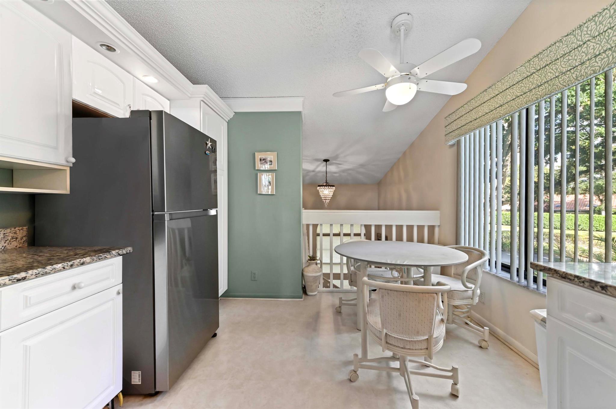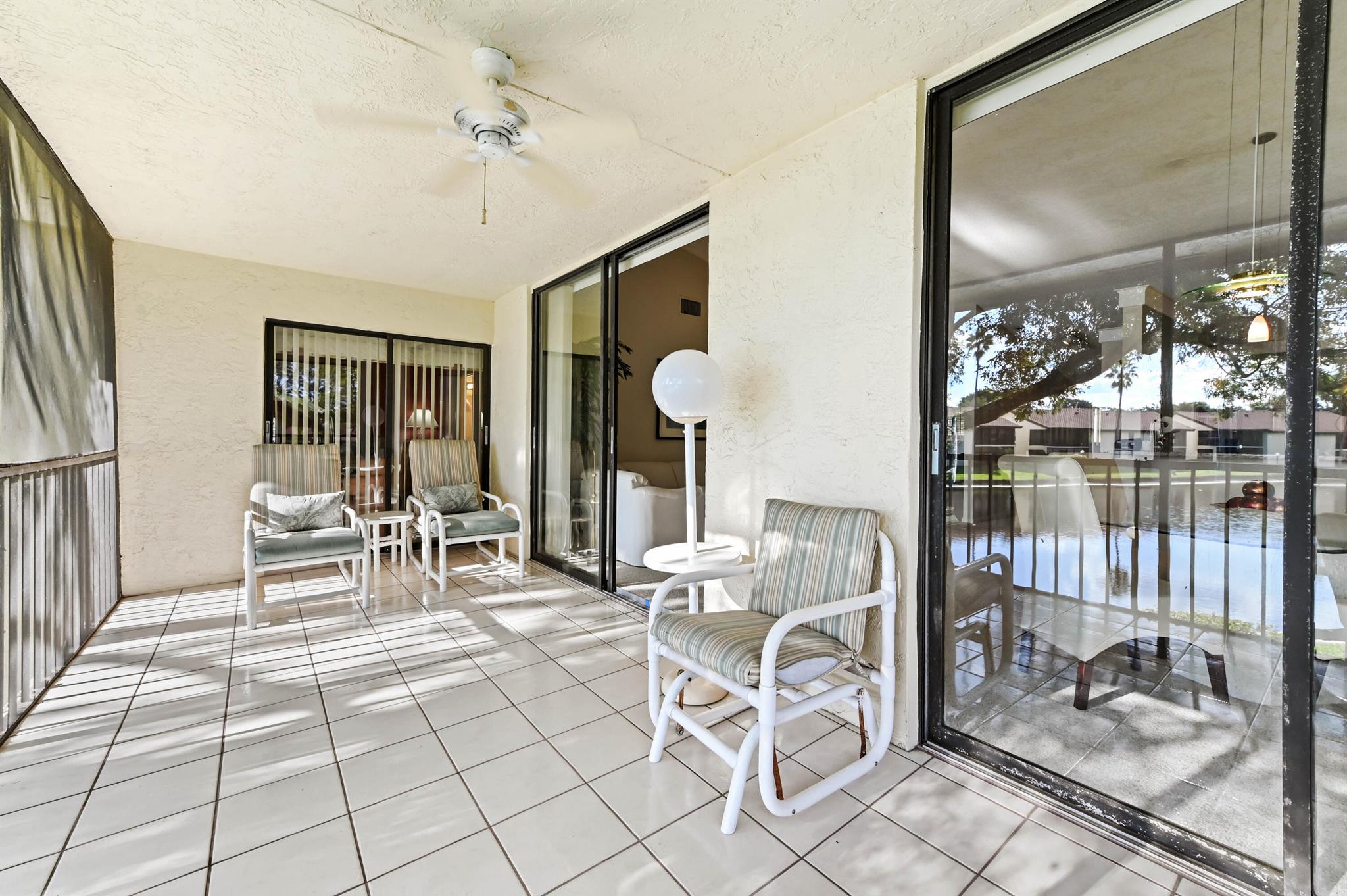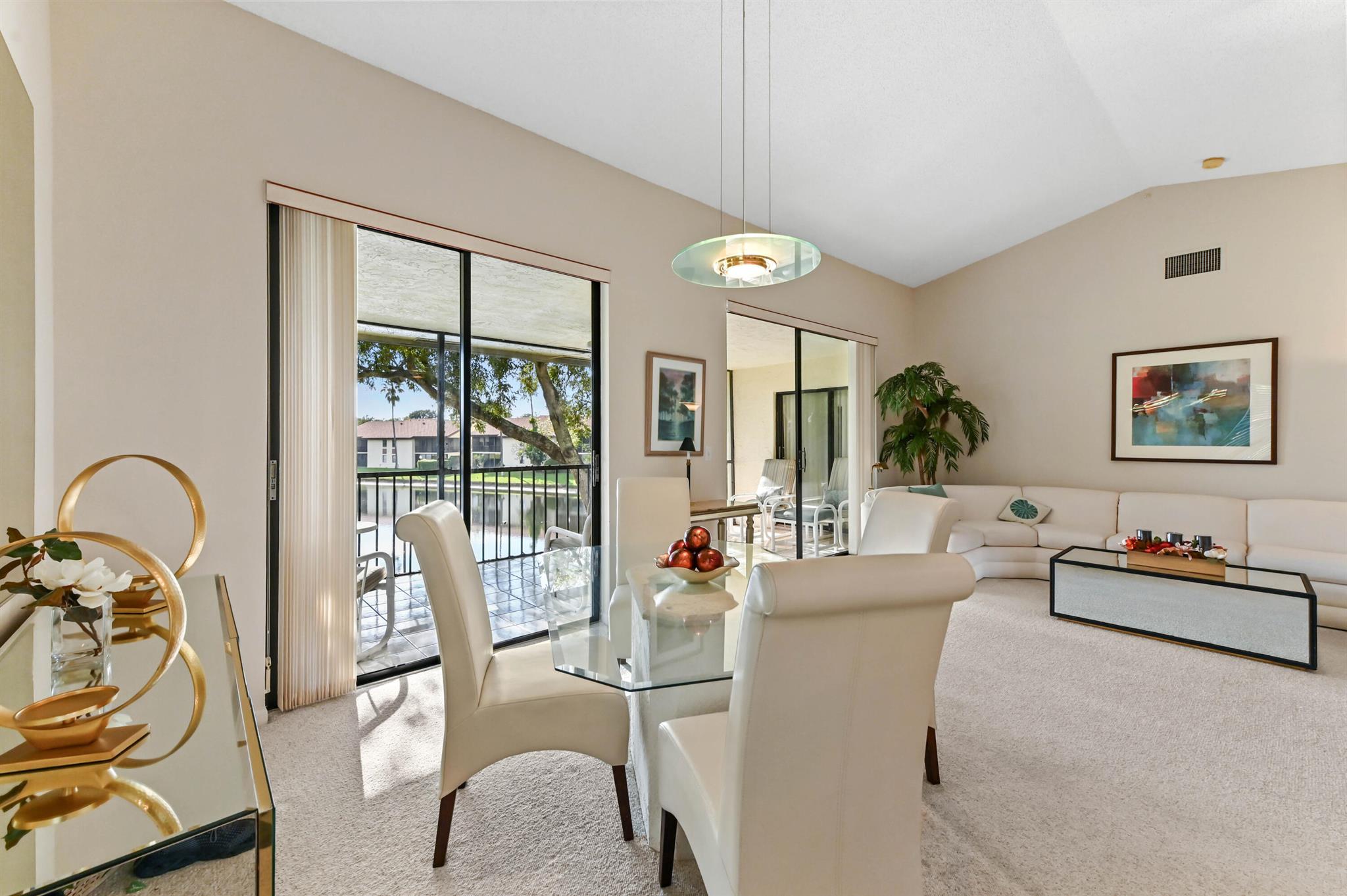 Welcome to Palm Chase Lakes, an active 55+ gated community. This spacious second-floor corner unit offers 3 bedrooms and 2 bathrooms, with the 3rd bedroom currently used as a den. With 1,648 sq ft of living space, the home features cathedral ceilings, a split bedroom plan, and a screened and enclosed balcony with peaceful lake views--accessible directly from the master bedroom.Recent upgrades include a new AC system, providing comfort and efficiency year-round. Interior highlights also include a combination of tile and carpet flooring, stainless steel kitchen appliances, and a functional kitchen counter area that doubles as a breakfast bar.