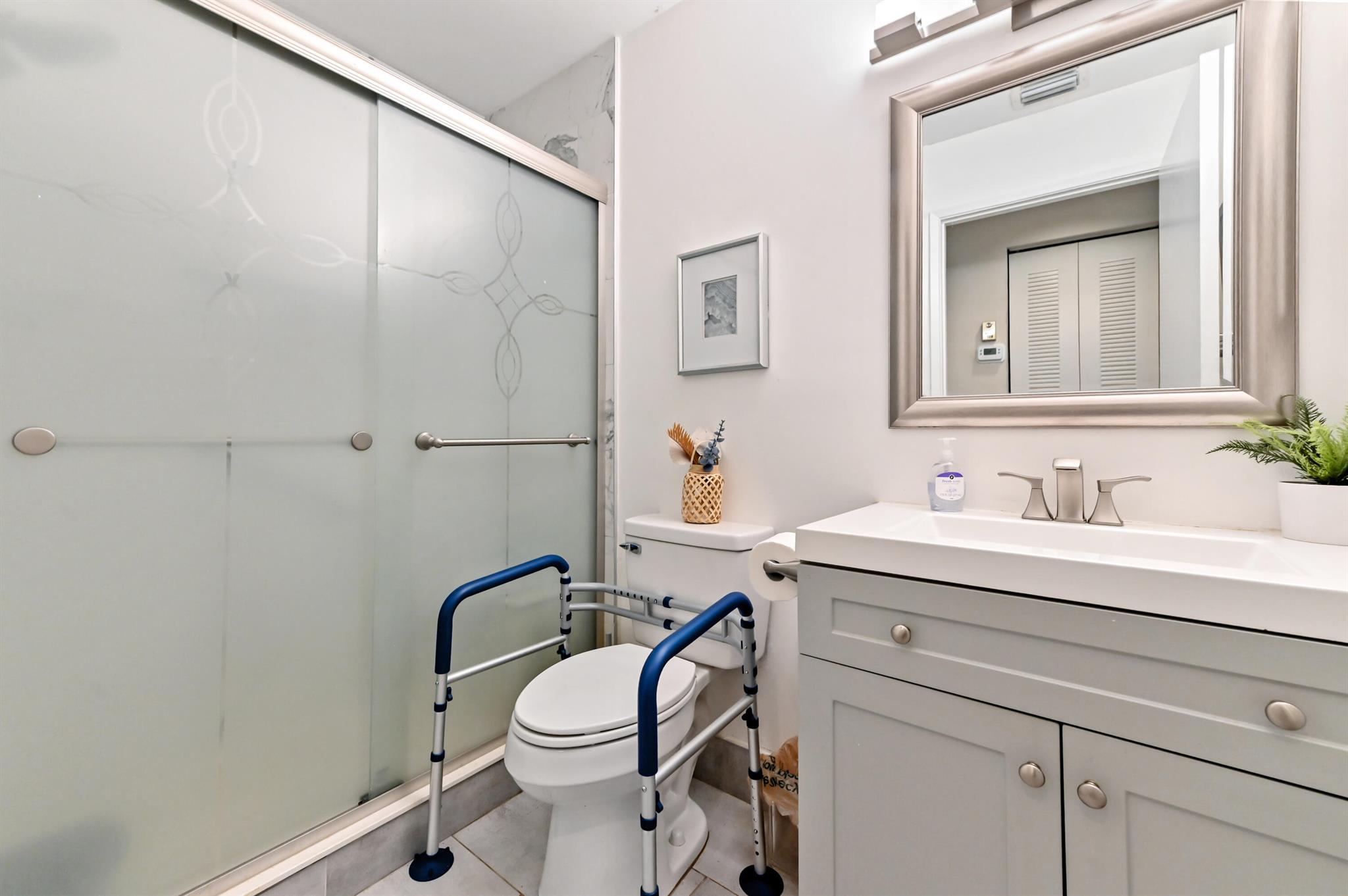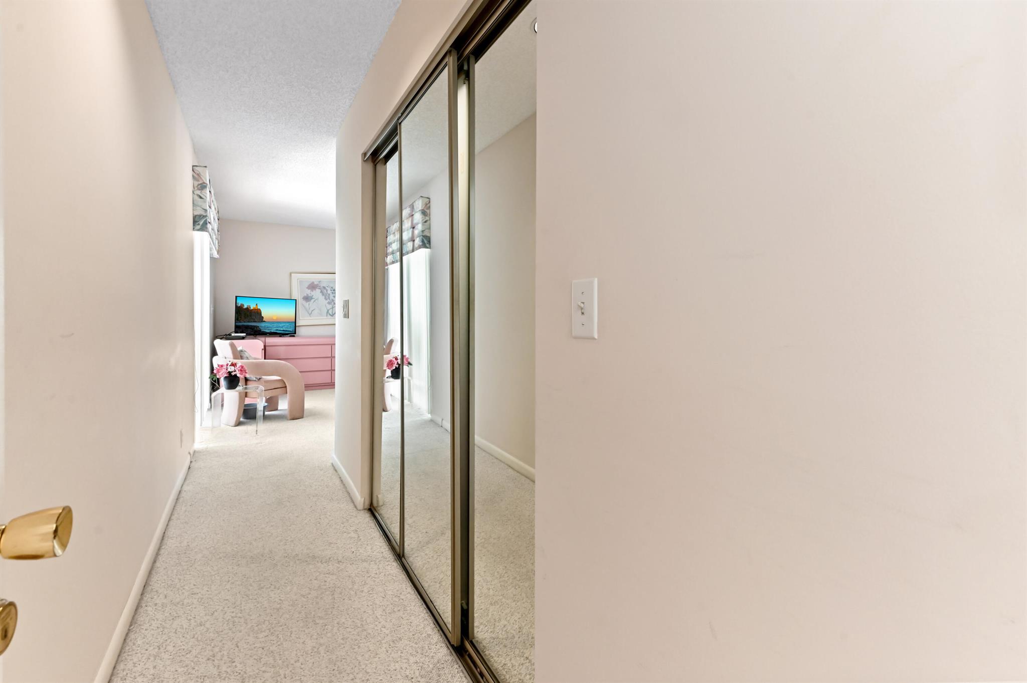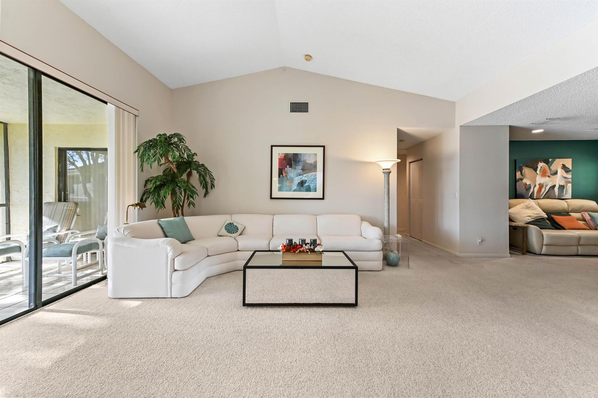 Welcome to Palm Chase Lakes, an active 55+ gated community. This spacious second-floor corner unit offers 3 bedrooms and 2 bathrooms, with the 3rd bedroom currently used as a den. With 1,648 sq ft of living space, the home features cathedral ceilings, a split bedroom plan, and a screened and enclosed balcony with peaceful lake views--accessible directly from the master bedroom.Recent upgrades include a new AC system, providing comfort and efficiency year-round. Interior highlights also include a combination of tile and carpet flooring, stainless steel kitchen appliances, and a functional kitchen counter area that doubles as a breakfast bar.