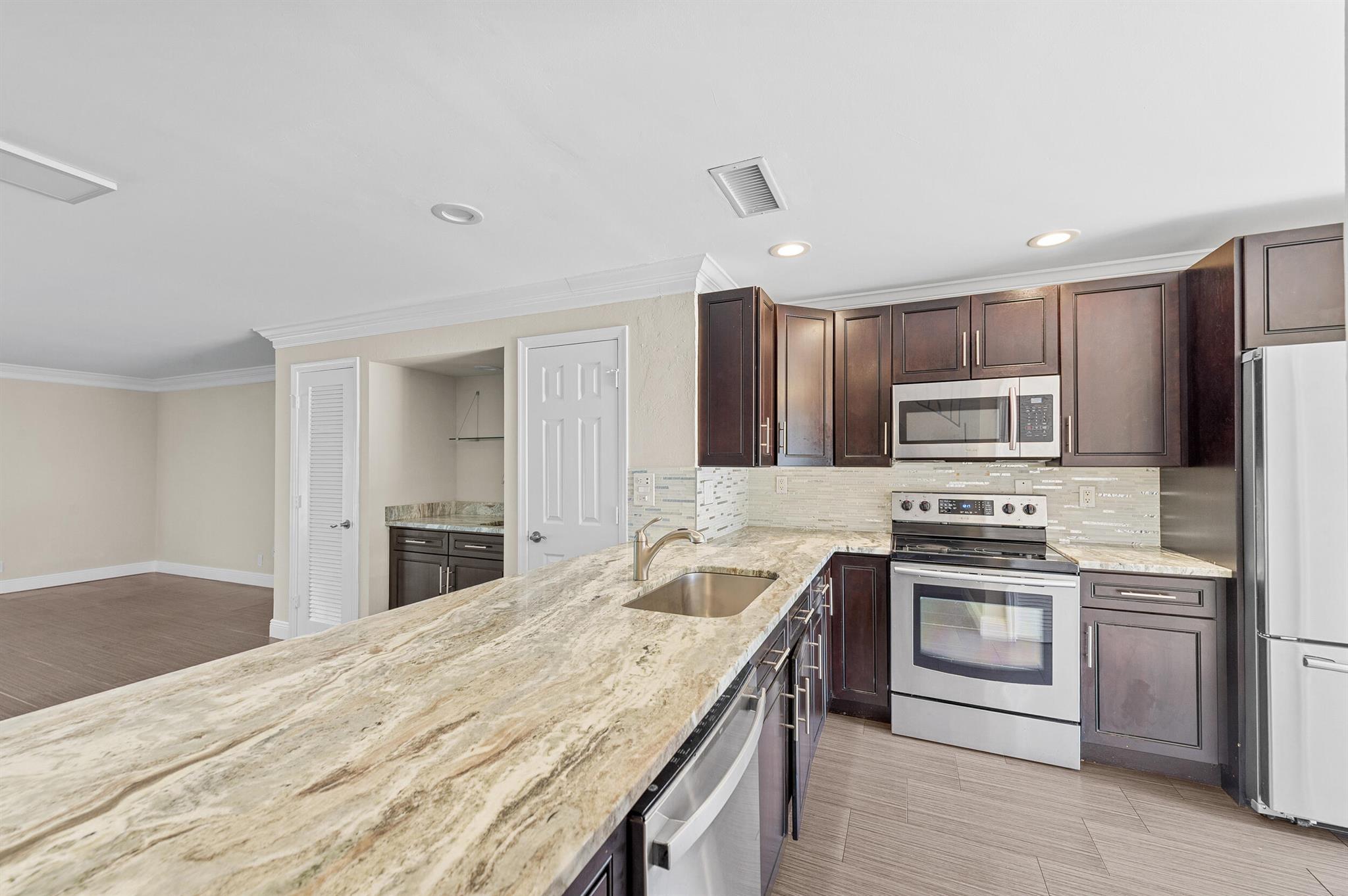Nicely renovated townhouse located in East Delray Beach just minutes from the ocean! This two-story townhouse overlooks a tranquil canal lake with a covered, private patio. The open kitchen has stainless steel appliances, maple cabinets, and granite countertops. Enjoy the spacious and airy living area, complete with a convenient wet bar. Parking is hassle-free with two spots conveniently directly in front of your door. Situated within a small, gated community just minutes from downtown and the beaches, this property offers both serenity and convenience. The community pool has recently been updated and is just a few steps away. Lease OK. HOA approval required.