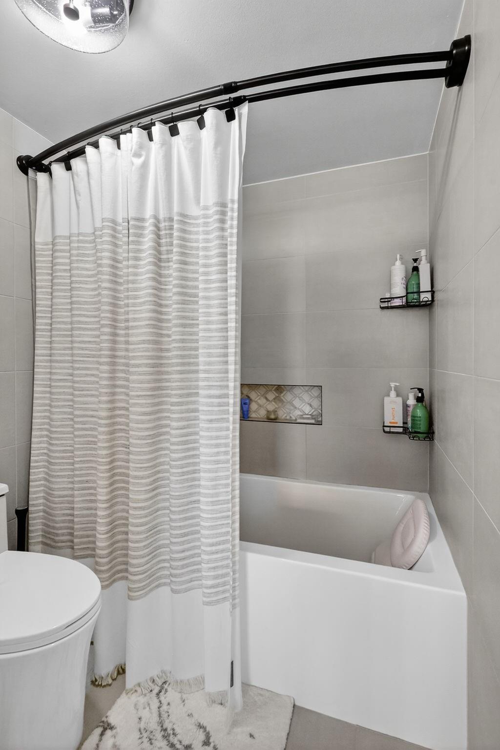 Stunning fully remodeled 2BR/2BA top-floor corner unit, 1,187 sq ft of open-concept living with panoramic garden and lake views, no neighbors above. Designer kitchen, quartz waterfall island, marble backsplash, white cabinetry, and stainless steel appliances. Interior features include luxury vinyl plank flooring throughout, impact windows and sliders, motorized shades, and custom built-in closet systems in both bedrooms. The spa-style primary suite offers barn doors, a dual vanity, mosaic tile finishes, and a spacious walk-in closet. Additional upgrades: New ventless LG washer/dryer, tankless water heater, whole-home water filtration system, and a 2025 A/C air handler and compressor. 2 oversized screened balconies with privacy roll-down shades, plus a same-floor oversized storage unit.