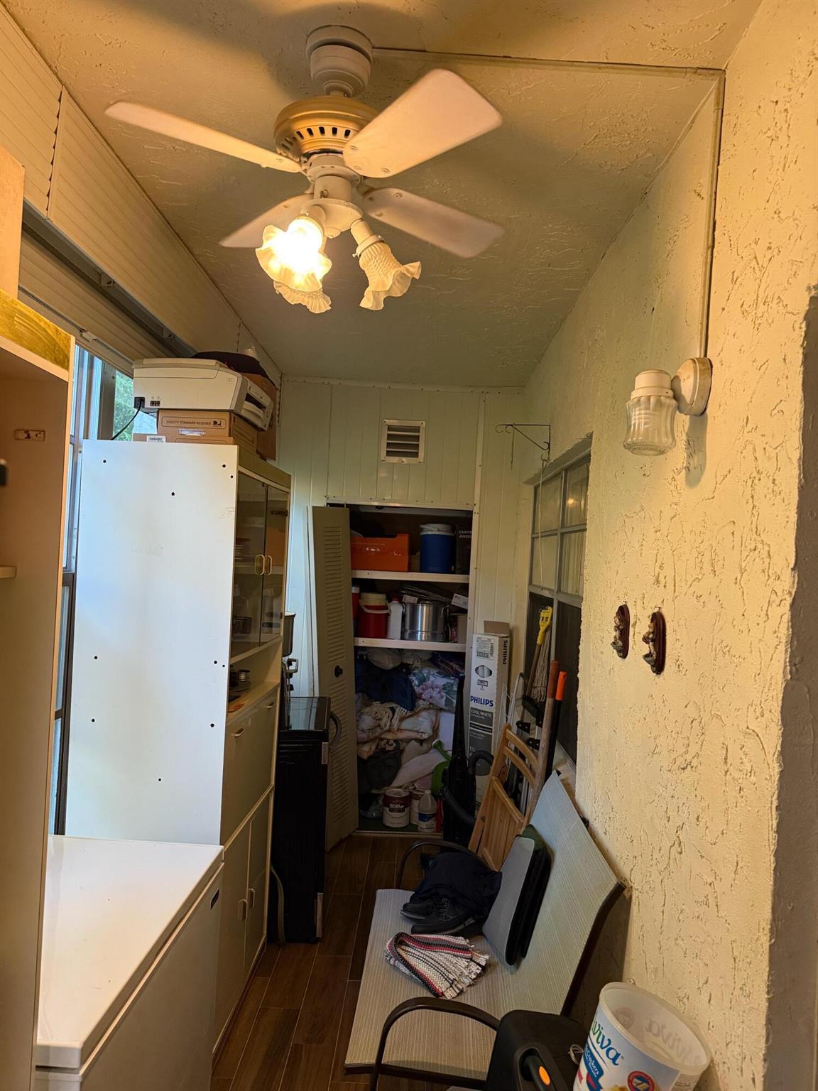 1ST FLOOR, LOVELY 2 BEDRM CONVERTIBLE, MOVE IN CONDITION, LIGHT & BRIGHT W/ LOTS OF EXTRAS! CALIFORNIA CLOSETS , ENCLOSED PATIO W/ ROLL DOWN STORM SHUTTERS & TWO SPACIOUS STORAGE CLOSETS. highly desirable 55+ active-adult community of Royal Palm Beach, Enjoy relaxing evenings on your screened-in patio, perfect for a morning coffee or evening wind-down. This lock-and-leave lifestyle makes it low maintenance and ideal for those looking to simplify.