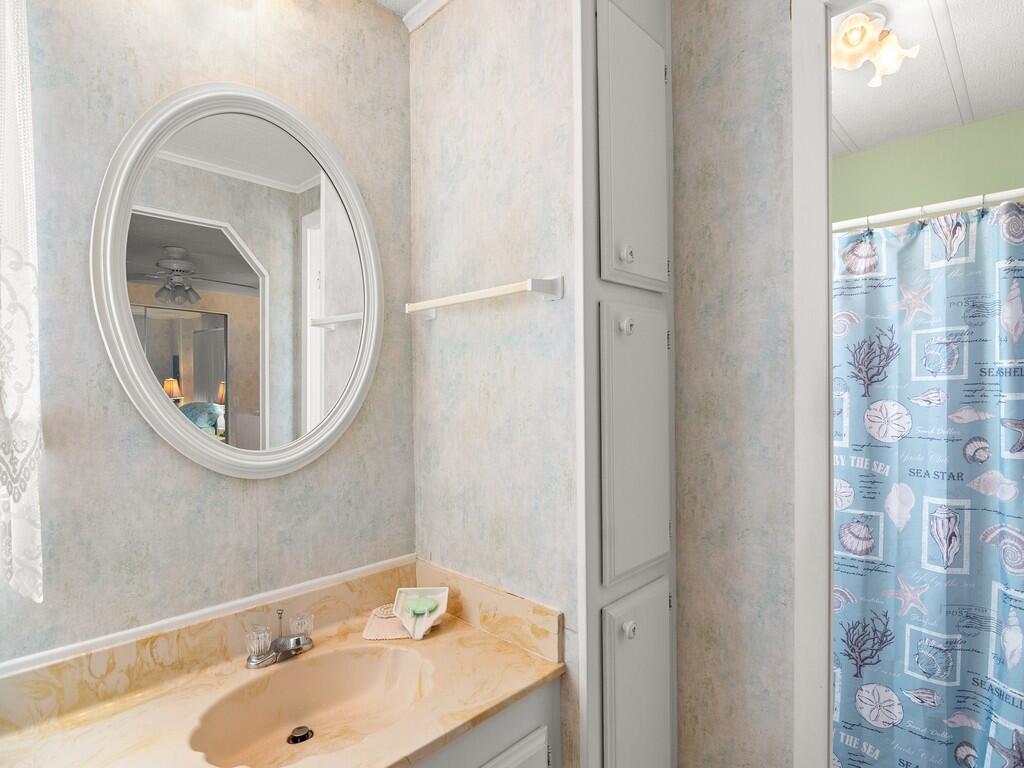 Welcome to 236 Sunshine Lane, Jensen Beach, Fl. This charming double-wide home is nestled in the sought after 55+ community of Pinelake Village, just minutes from the ocean. This well maintained 2-bedroom, 2 bath-home comes partially furnished and is just a short stroll to the clubhouse and pool. A new vapor barrier installed in 2024 adds an extra layer of protection and energy efficiency beneath the home. Additional property features include new landscaping, new skirting, upgraded electrical in shed, upgraded electrical panel with whole house surge protection 2024, and a well for your irrigation system. You will love the Florida/All Season Room with closet storage and separate entrance! Lot rent is $765 per month and includes cable, trash removal, recycling and all clubhouse amenities.