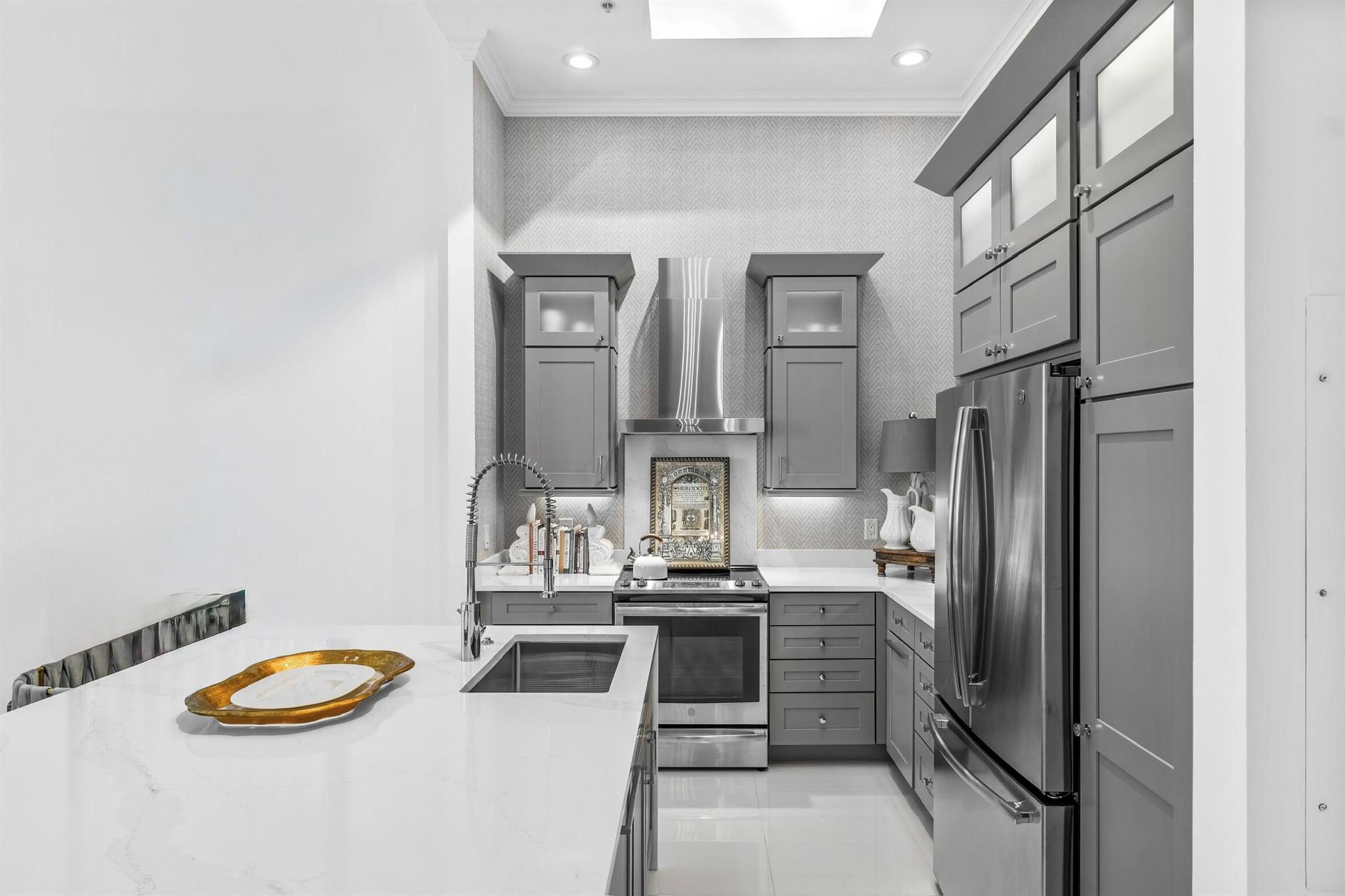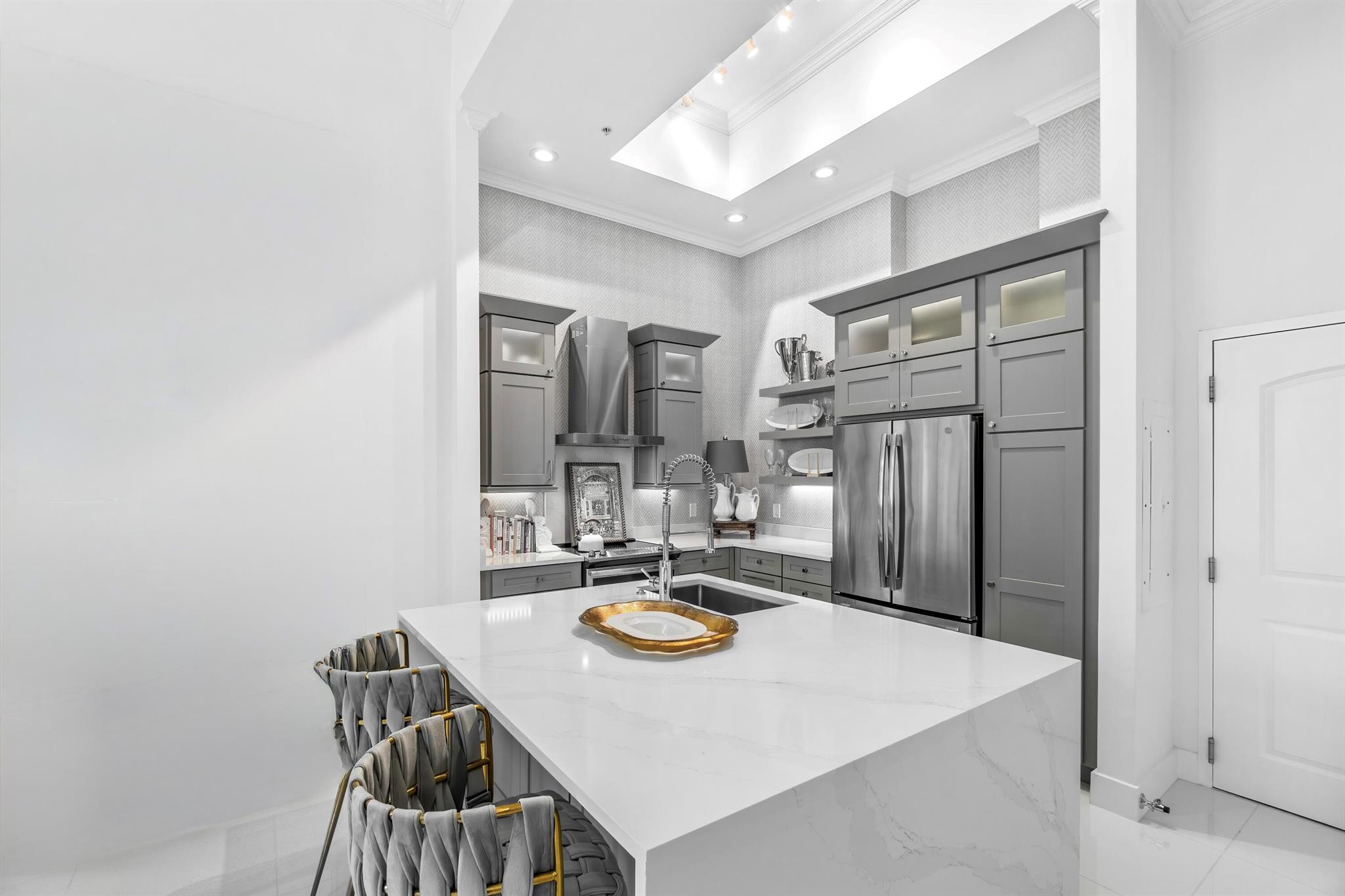 In the heart of downtown West Palm Beach, you'll find a stunning fully renovated condo that exudes modern luxury. This spacious residence boasts two generously sized bedrooms each with its own private bathroom, and a versatile den that can serve as a home office or additional living space. With soaring 14-foot ceilings, this condo offers an open and airy atmosphere that's truly captivating. Enter into the heart of this home, the designer kitchen, where no expense was spared. It features all new appliances, exquisite countertops with oversized waterfall island and custom cabinetry, making it a chef's dream come true. The entire condo showcases all-new flooring that adds elegance to the space. Designer lighting, window treatments and molding add the final touches to truly make it special...