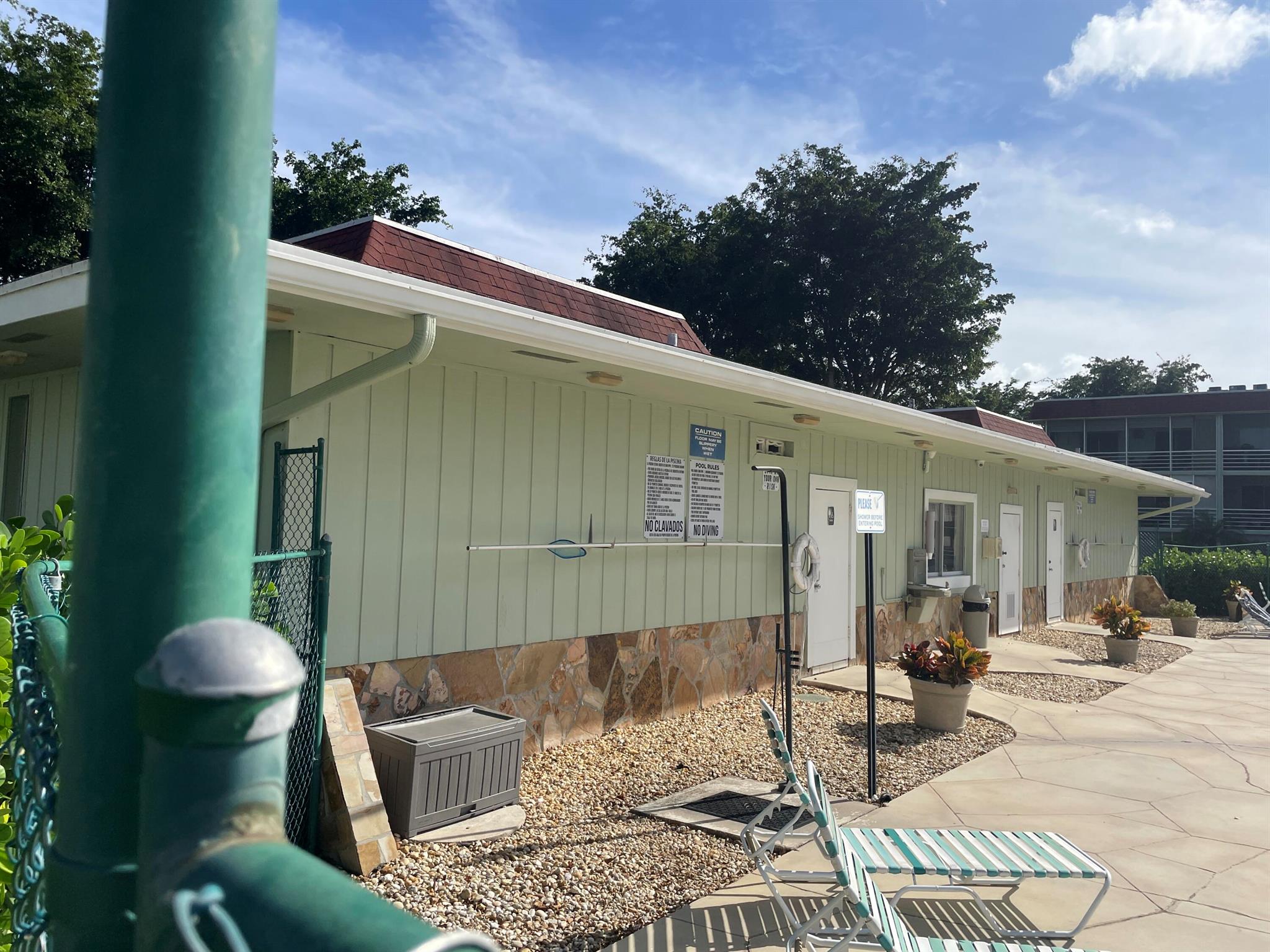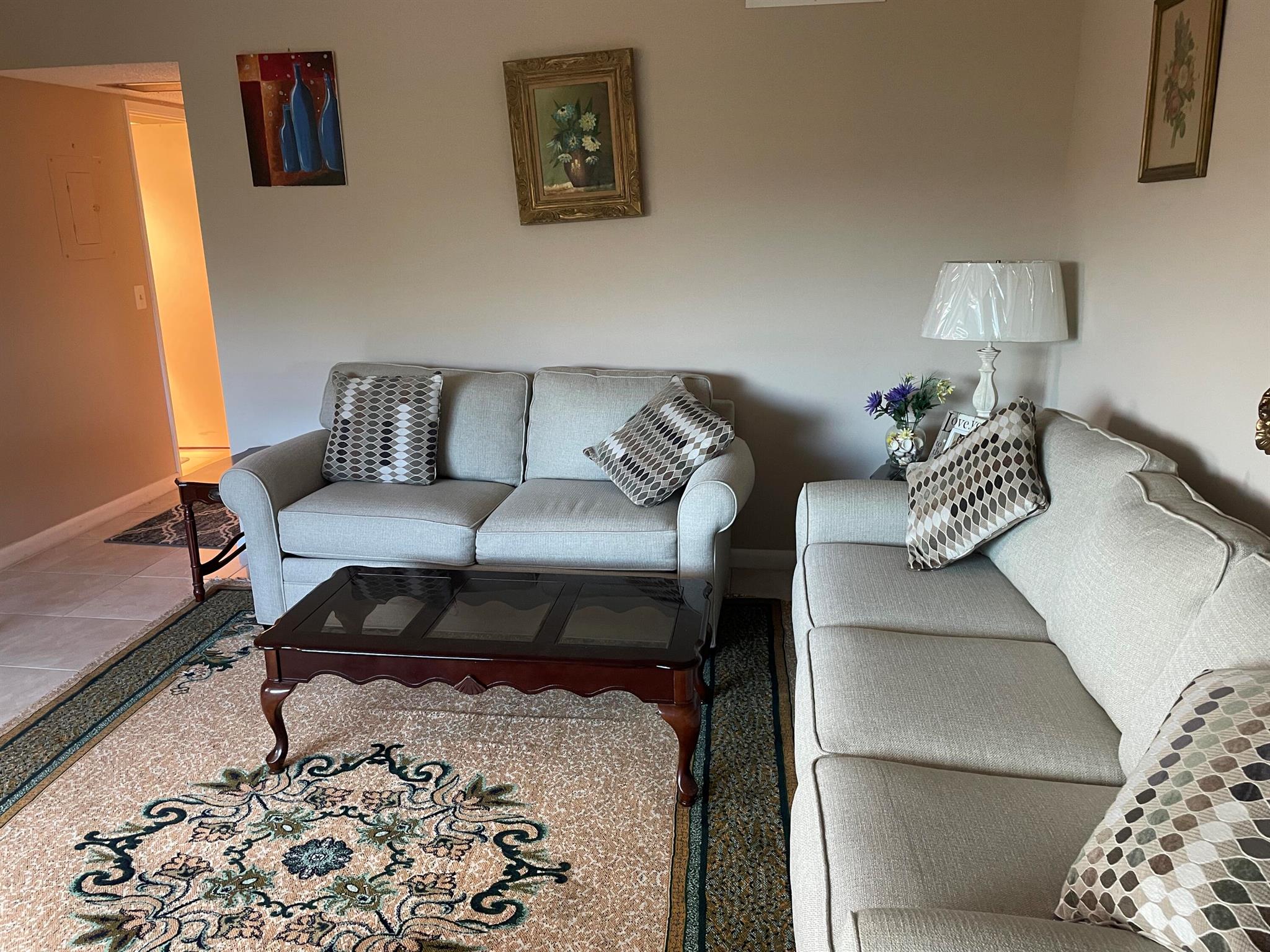 Wonderful end unit with impact windows. Also has remodeled main bath and newer appliances. Tile floors throughout. Located near steps and assigned parking spot. Elevator, storage and laundry located at center of building. Age 55 plus community with clubhouse swimming pool and more. Newer furniture available by separate negotiation. Six months maximum leasing allowed after first year of purchase. Internet included in monthly fee.