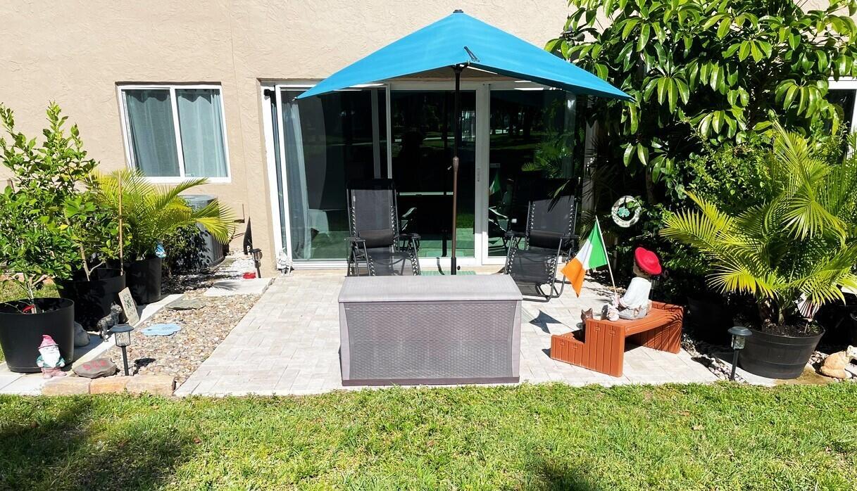 Beautifully Updated 2BR/2BA Ground-Floor Condo - Move-In Ready! Welcome to this fully updated, ground-floor 2-bedroom, 2-bath condo in the desirable Palm Green Condo 1 community. This turnkey home features 1,064 sq ft of living space, freshly painted throughout, impact windows throughout, and newer appliances. Upgrades include: Freshly painted throughout, New A/C unit, New front entry door, Enjoy the convenience of a reserved parking space plus ample guest parking. Step outside to your private patio with beautiful views of thecommunity common area and walking path a perfect spot to relax or grill with a gas BBQ (permitted).Pet-friendly: Service animals are allowed.Insurance note: As a 2-story building, this unit does not require interior insurance unless it's for