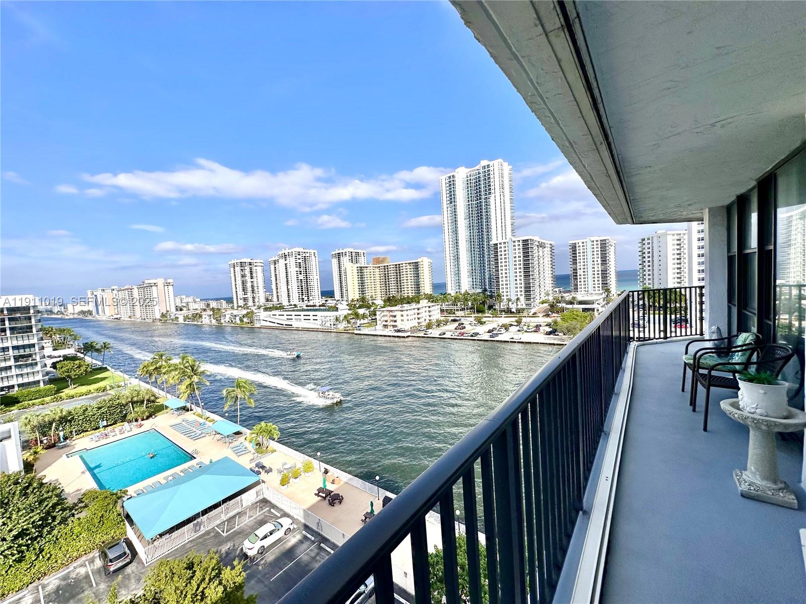 Look no further! This CORNER PENTHOUSE delivers wow-worthy water views from every angle at a PRIME WATERFRONT LOCATION. Very SPACIOUS UNIT with 2 Beds / 2 Baths + Den (easily a 3rd Bedroom or Home Office) and BREATHTAKING VIEWS of the Intracoastal, Ocean, Pool, and the Coastline. WRAPAROUND BALCONY, FLOOR-TO-CEILING WINDOWS, and the best stack in the building — RARELY AVAILABLE! Vintage charm ready for a modern makeover — a great opportunity to update to your taste. Low HOA fees include hot water, TV/internet & 24hr security. Resort-style amenities: Waterfront Pool, Tennis, Fitness Rooms, BBQ Area, Clubroom, Shuffleboard & Billiard. Assigned + Guest Parking. INVESTOR FRIENDLY - RENT IMMEDIATELY! Located in exclusive and highly sought after Three Islands Area... minutes to Beaches, Dining, Shopping, and Aventura. DON’T MISS THIS RARE OPPORTUNITY — SCHEDULE YOUR TOUR TODAY!
