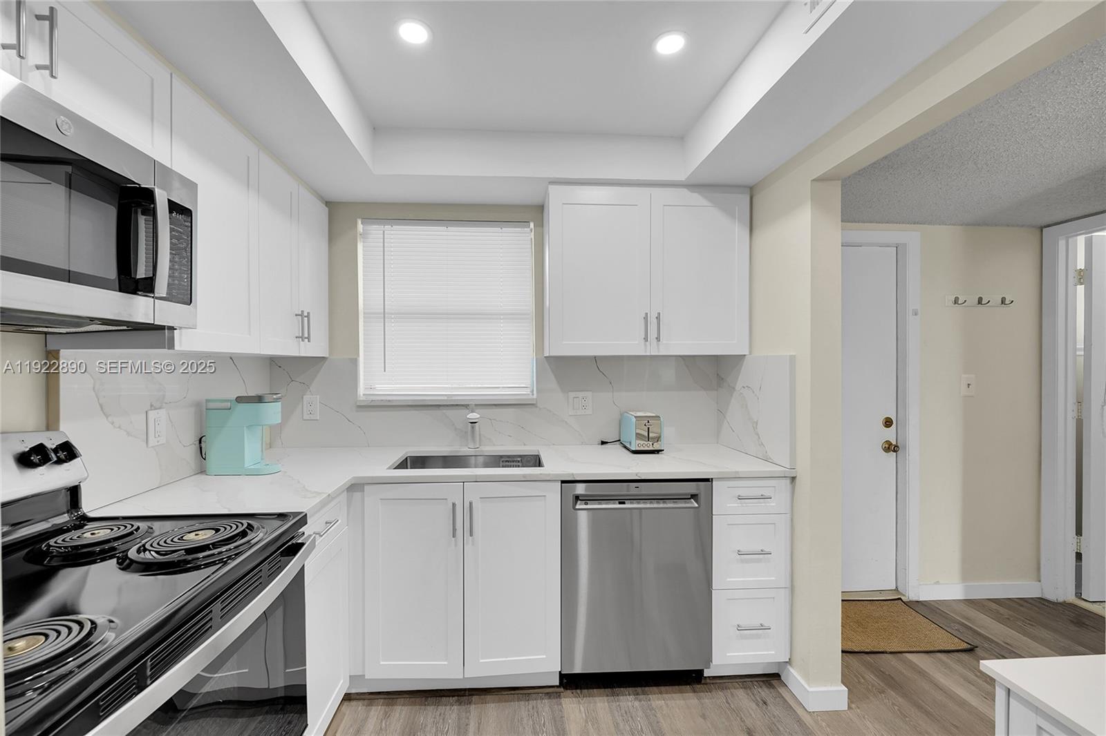 Stunning, Fully Remodeled 1/1.5 in Royal Park Gardens—Over $65,000 in Upgrades! Step into luxury with this ground-floor beauty, completely redesigned. Light, bright, and modern, this turnkey home features brand-new flooring throughout, a designer kitchen. Every detail has been updated, including both bathrooms. Unit has washer/dryer. Enjoy year-round living and extra space in your enclosed patio, perfect as a reading room, hobby area, or quiet retreat, complete with garden views. Royal Park Gardens is a beautifully maintained 55+ community offering three pools, clubhouse, tennis, fitness center, billiards, library, BBQ areas, and scenic walking paths. Maintenance includes water, sewer, trash, cable, exterior insurance and upcoming improvements such as roof and exterior updates. Conveniently located near shopping, restaurants, medical facilities, and major roadways. Association requires 55+, 690–700 credit, minimum income, and 12 months condo fees held in escrow.