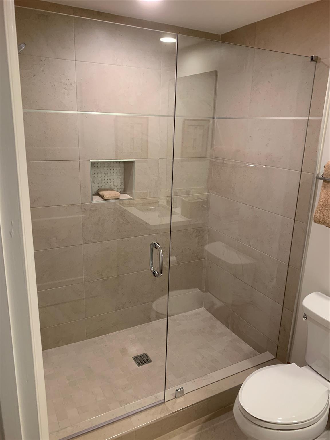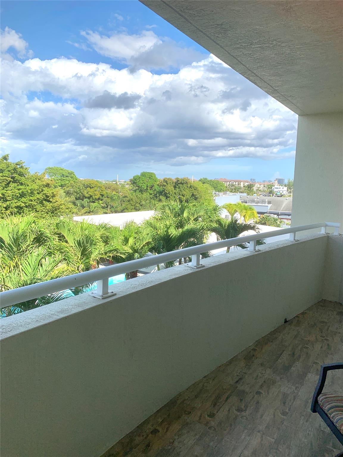 Beautifully renovated 4th floor unit with quiet tree top and pool views located on Wilton Drive - the original interior 2nd bedroom has been incorporated into the living and dining rooms resulting in an oversized great room with an open concept kitchen and sliding doors leading to a large and renovated open balcony; both bathrooms have been renovated as have the floors with porcelain tile throughout; this unit is meticulously cared for and flooded with light; it includes 2 parking spaces on the coveted first floor of the garage and amenities include fully equipped state of the art gym, heated pool, barbecue area, and secure designer lobby with maintenance staff on premises. Live on Wilton Drive and enjoy its restaurants and nightlife but come home to this peaceful, meticulous condominium.
