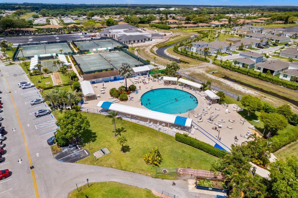 FIRST Floor Unit in Palm Greens, located in central Delray Beach, 15 minutes from Atlantic Avenue and the beaches. Sold Furnished and turnkey! No carpet!.... Wood and tile flooring throughout, including the screened in patio which overlooks garden/green area. Neutral interior, no wallpaper!. Both baths have been updated! Including: vanities, lighting, floors, shower area. Washer/Dryer inside. Private STORAGE UNIT right outside your front door. Association includes exterior insurance, roof, HBO-boxes, lawn, water, cable. Amenities: clubhouse, pool, hot tub, exercise. Walk or ride your bike to the new and upcoming clubhouse!