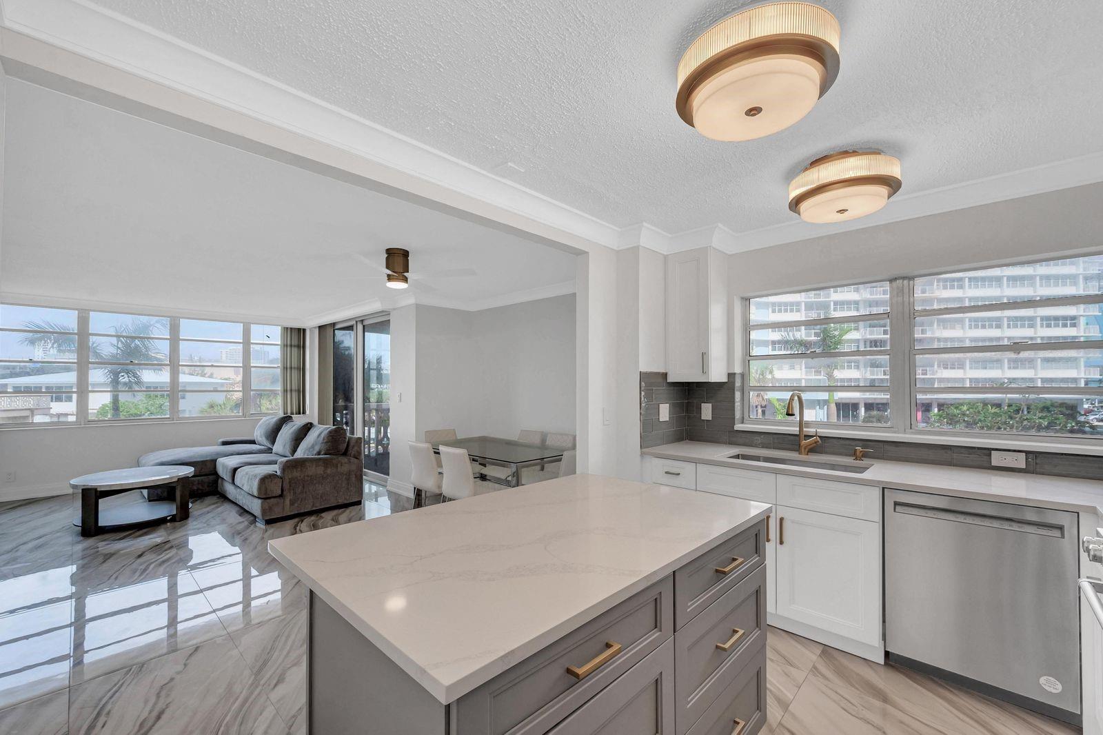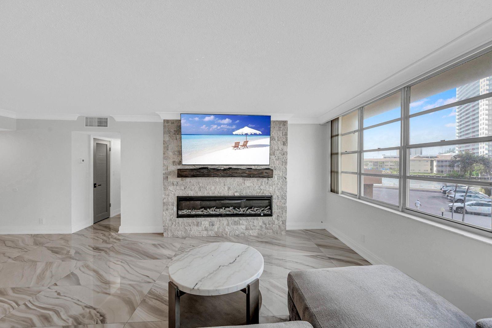 Stunning and completely remodeled 2 bed 2 bath corner unit condo in the heart of Hallandale Beach! Awesome location nestled between the intracoastal and beach! Custom tile flooring throughout with luxury vinyl tile in the bedrooms, brand new Kitchen Aid appliances, quartz countertops & much more! No expense spared in the remodel of this unit! Intracoastal and city views from your balcony! A short walk to the beach and just a 5 min drive to Aventura mall, restaurants, entertainment Hallandale Beach Park & Gulfstream Casino. Maintenance Includes Basic Cable, WIFI & Water, heated pool on intracoastal, shuffleboard, fitness center, club room, sauna, community laundry.**No leasing first 2 years owned**Association requires 10% down** *Newly installed full hurricane impact windows*