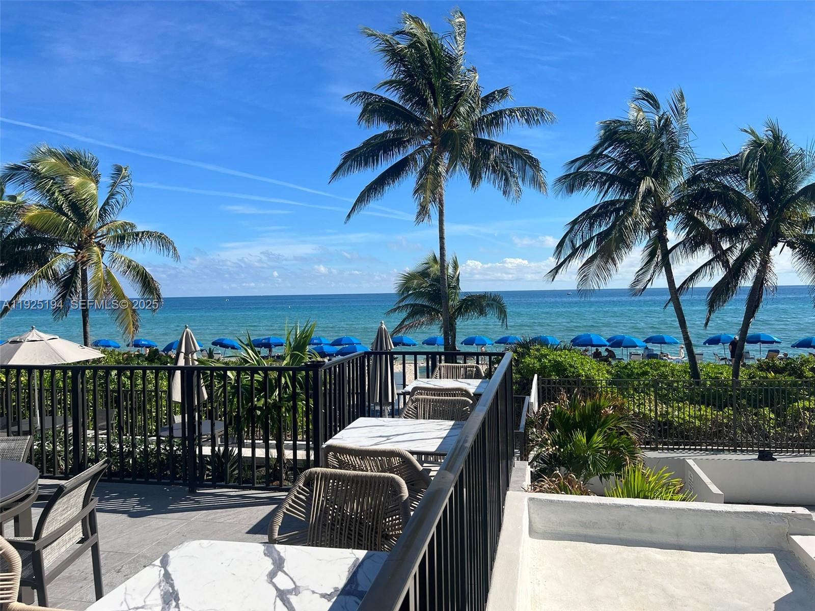 Beautiful ocean view studio with a large terrace offering peaceful water views day and night. Move-in ready for vacation or full time living. Features a custom-built closet with bed and a linen/utility closet. Unit includes 1 assigned parking space. Maintenance covers WiFi, cable, A/C, water, parking, security, and reserves. The building offers resort-style amenities including beach service, 2 pools, 2 restaurants with full bars, 2 gyms, tennis, pickleball, BBQ area, boat docks, salon, convenience stores, courtesy bus, billiards, card room, basketball, shuffleboard, golf putting area, classes, activities, and more—all in a prime location across from the beach.