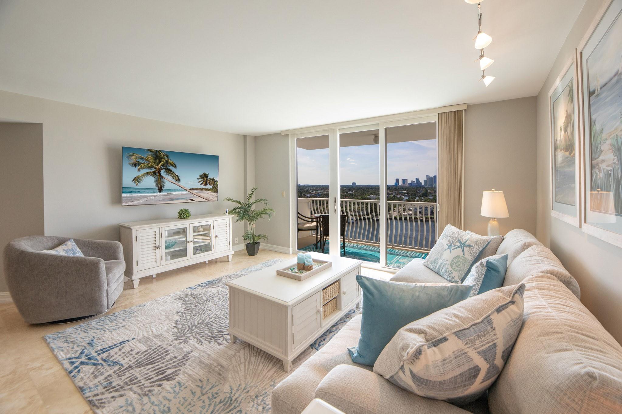Stunning views of the Intracoastal Waterways, the City of Fort Lauderdale skyline, mind blowing sunsets and a parade of yachts everyday from this 12th floor nicely renovated 1200 sf, 2 bedrooms & 2 baths condo. Conveniently located right across from Las Olas Beach, minutes away from the downtown business and entertainment district and a short drive to FLL International airport. The Venetian is a very desirable "Resort style" building with tiki bar, lots of outdoor grills, pool, gardens, library w/ free WiFi, 24hr security, ping-pong, billiard and a large fully equipped 24 hrs fitness center. Internet and basic cable are included in the low monthly maintenance fee. Dockage as available! Priced to Sell!!! A must see!