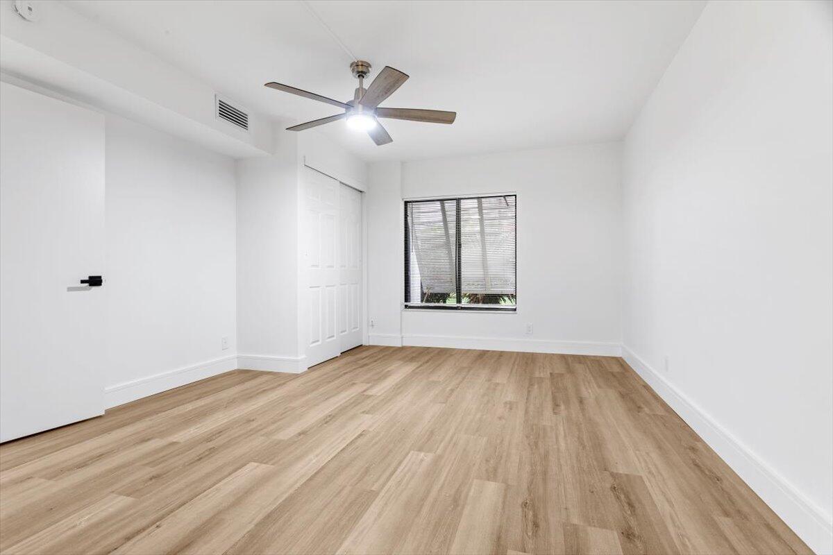 Experience South Florida living in this beautifully renovated first-floor 2-bedroom, 2-bath corner residence located in the desirable 55+ gated community of Banyan Springs. This inviting home features new luxury vinyl flooring, upgraded baseboards, fresh interior designer paint, modernized bathrooms, and an updated kitchen with quartz countertops and backsplash, pantry with pull-out drawers and custom lighting. The spacious main living area flows seamlessly to a enclosed patio overlooking lush landscaping, and inviting extension of the home ideal for everyday enjoyment or entertaining. The primary suite offers E exposure, generous closet space, and a renovated bath with walk-in shower. The guest bedroom has ample closet space, renovated bath w walk-in shower and a full-size stackable W/D.