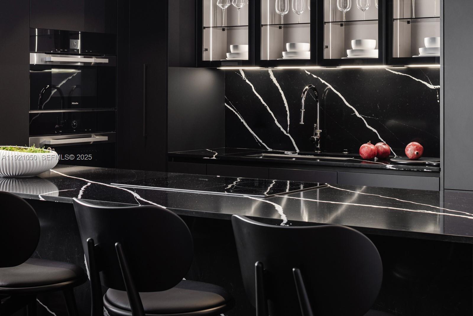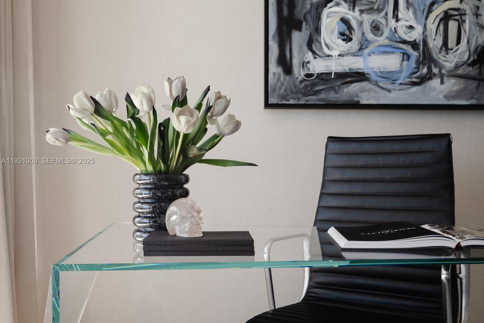 Stunning remodeled southeast corner 3-bedroom residence at MEi Miami Beach, showcasing over $1M in upgrades by designer Janet Patterson. The complete renovation features Nero Marquina marble floors, custom wood wall paneling and flush doors, a European hybrid kitchen with Miele appliances and recessed hood, and designer marble bathrooms. The primary suite includes a steam shower and Toto smart toilet. Additional enhancements include trimless recessed lighting, indirect LED cove lighting, motorized Lutron shades, custom closets with integrated lighting, soundproofing, a Control4 smart home system, new HVAC with linear diffusers, and a striking semi-precious crystal quartz backlit ledge. Floor-to-ceiling glass opens to an expansive wraparound terrace with spectacular ocean views. MEi offers resort-style amenities including beach and pool service, spa, fitness center, tea lounge, concierge, and valet.