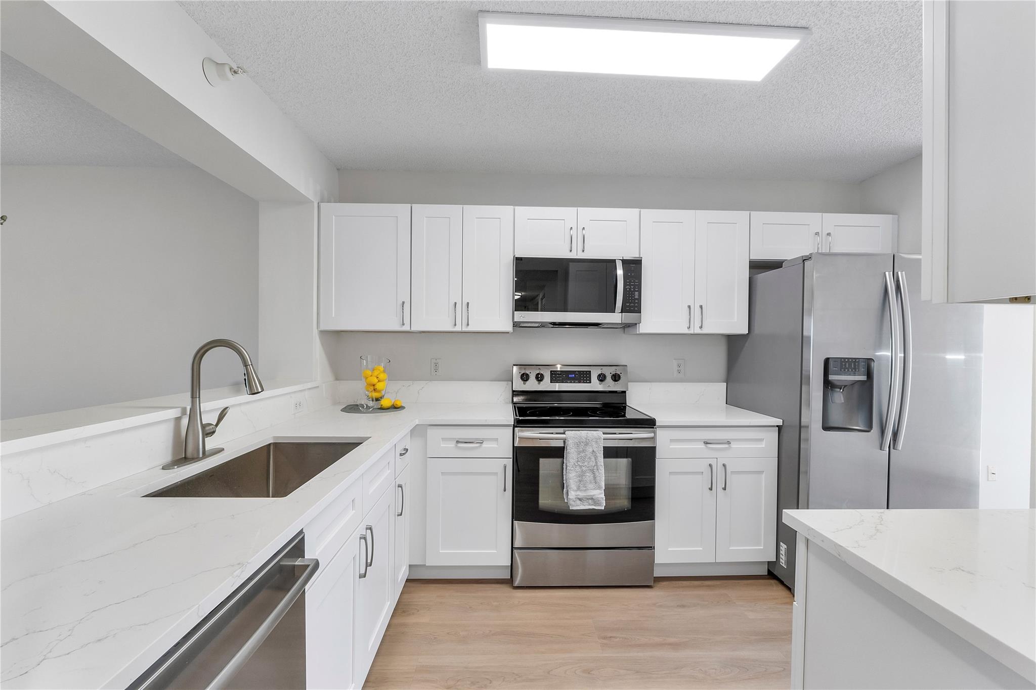 STUNNING, UNIT SHOWS LIKE A MODEL!!! DON'T MISS THIS NEWLY UPDATED GROUND FLOOR, WATERFRONT MAYFAIR MODEL IN HIGHLY SOUGHT AFTER SOUTHHAMPTON! NO ELEVATOR NEEDED, GO FROM YOUR CAR TO YOUR PRIVATE PATIO ENT W/STORAGE ROOM. HURRICANE IMPACT WINDOWS. SPACIOUS KITCHEN W/NEW WHITE SHAKER CABINETS & QUARTZ COUNTERS, SS APPLIANCES. PRIMARY BEDROOM W/GORGEOUS BATH, FRAMLESS GLASS DOORS & CUST WALK-IN CLOSET. UNIT FEATURES NEWLY INSTALLED WATERPROOF VINYL FLOORING THROUGHOUT, FRESHLY PAINTED, F/S WASHER & DRYER IN THE UNIT. SMALL PET WELCOME. SHORT DISTANCE TO NEIGHBORHOOD POOL. CLUBHOUSE DEED IS PAID FOR LOWER MAINTENANCE. CONVENIENT PARKING IN FRONT OF YOUR DOOR. FINANCIALLY STABLE COMMUNITY! Enjoy a resort-style lifestyle in this vibrant 55+ community! 20% Downpaymt Req.