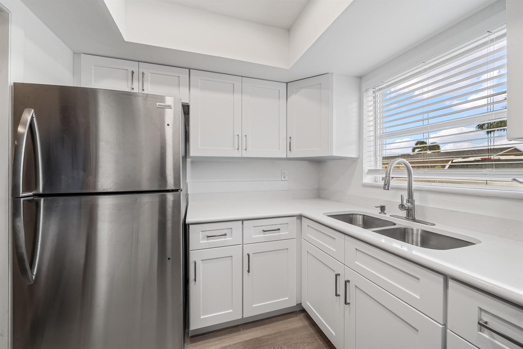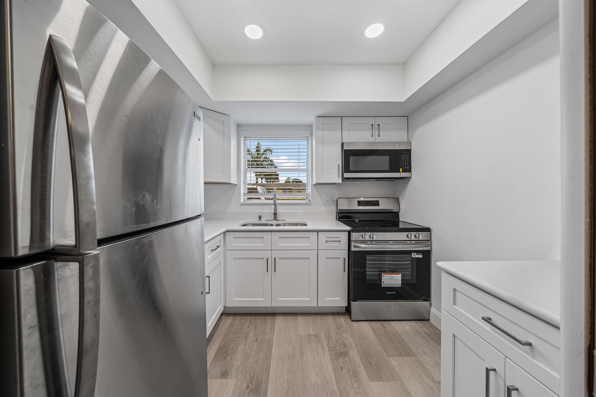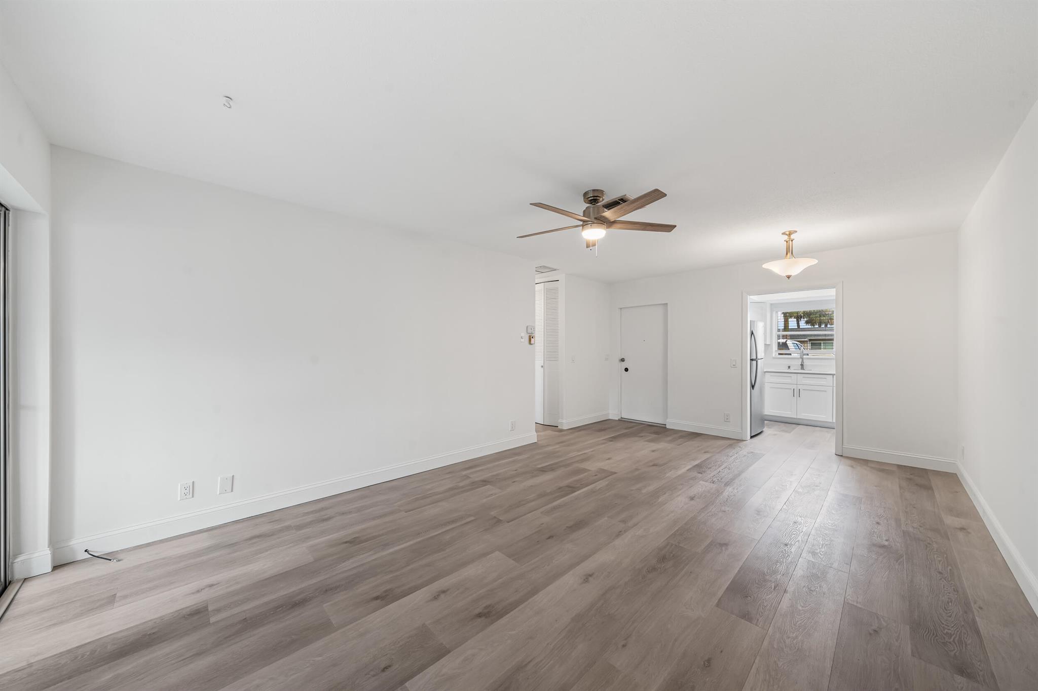 Beautifully renovated 1-bedroom villa in the desirable 55+ Barkley Villas. Features new luxury vinyl flooring, fresh paint, modern lighting, white shaker kitchen with quartz countertops, new stainless appliances. Fully updated bathroom with a modern walk-in shower, new vanity,and fixtures. New water heater. Bright living area plus enclosed Florida room with garden views. Laundry building is steps away. Community offers clubhouse, pool, shuffleboard, and low fees. Move-in ready. Some photos virtually staged.
