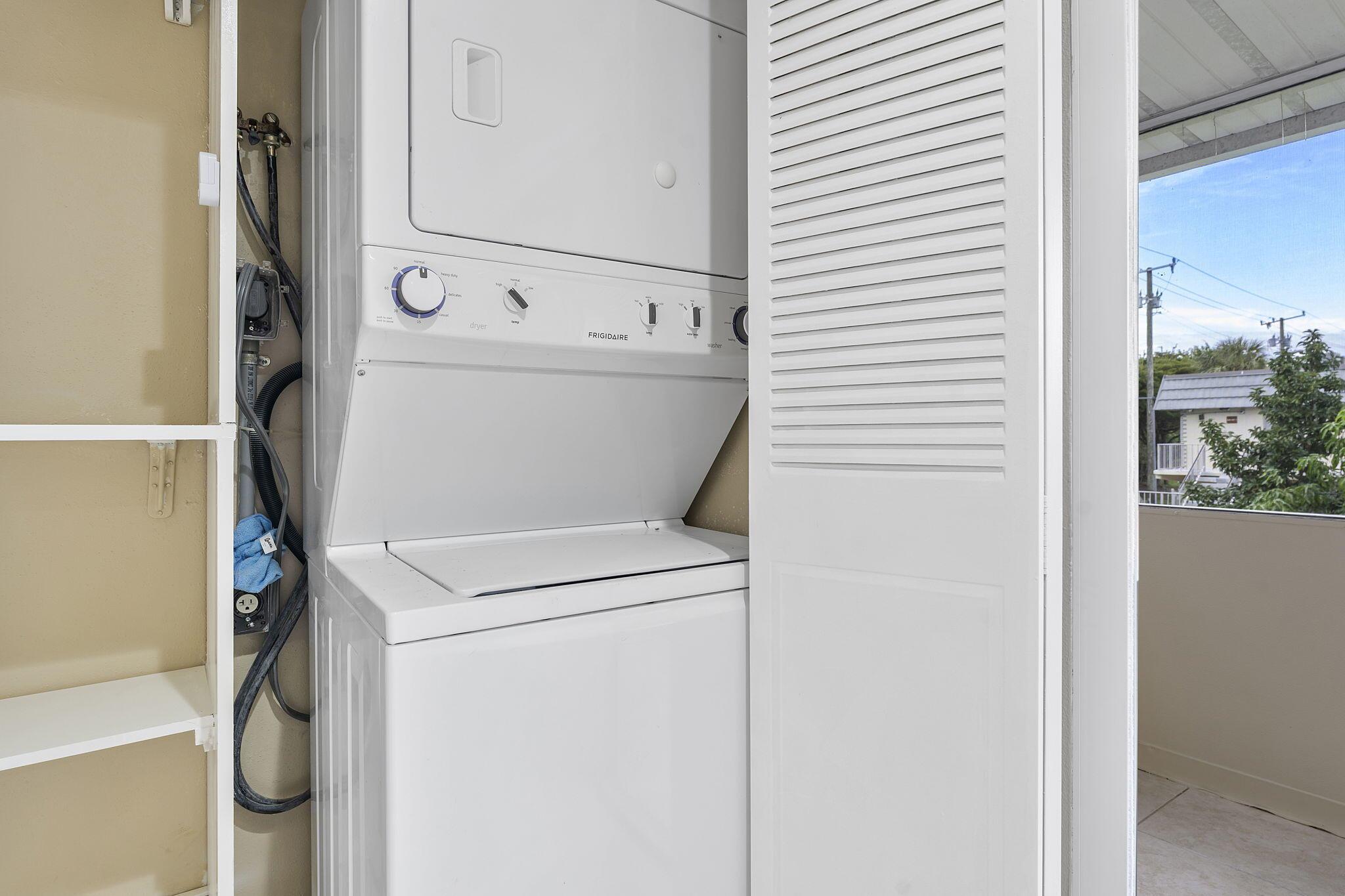 Experience stylish living in this beautifully renovated 1-bedroom, 1.5-bathroom condo situated in a building with a convenient elevator. The open-concept layout shines with sleek tile flooring and recessed lighting, leading to a contemporary kitchen equipped with quartz countertops, stainless steel appliances, and chic cabinetry. Relax in the spacious living area or step out to the private screened balcony, which connects directly to the primary suite featuring a modern en-suite bath. This turn-key home offers ultimate convenience with a guest half-bath, in-unit washer and dryer, custom closet organizers, and extra outdoor storage.