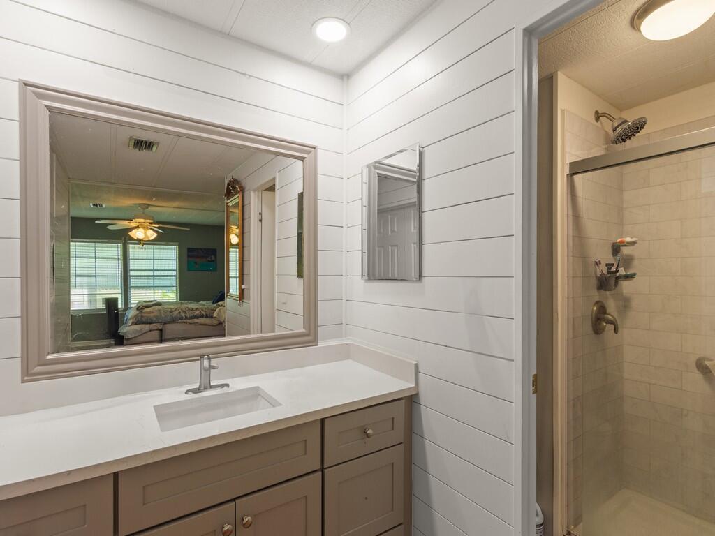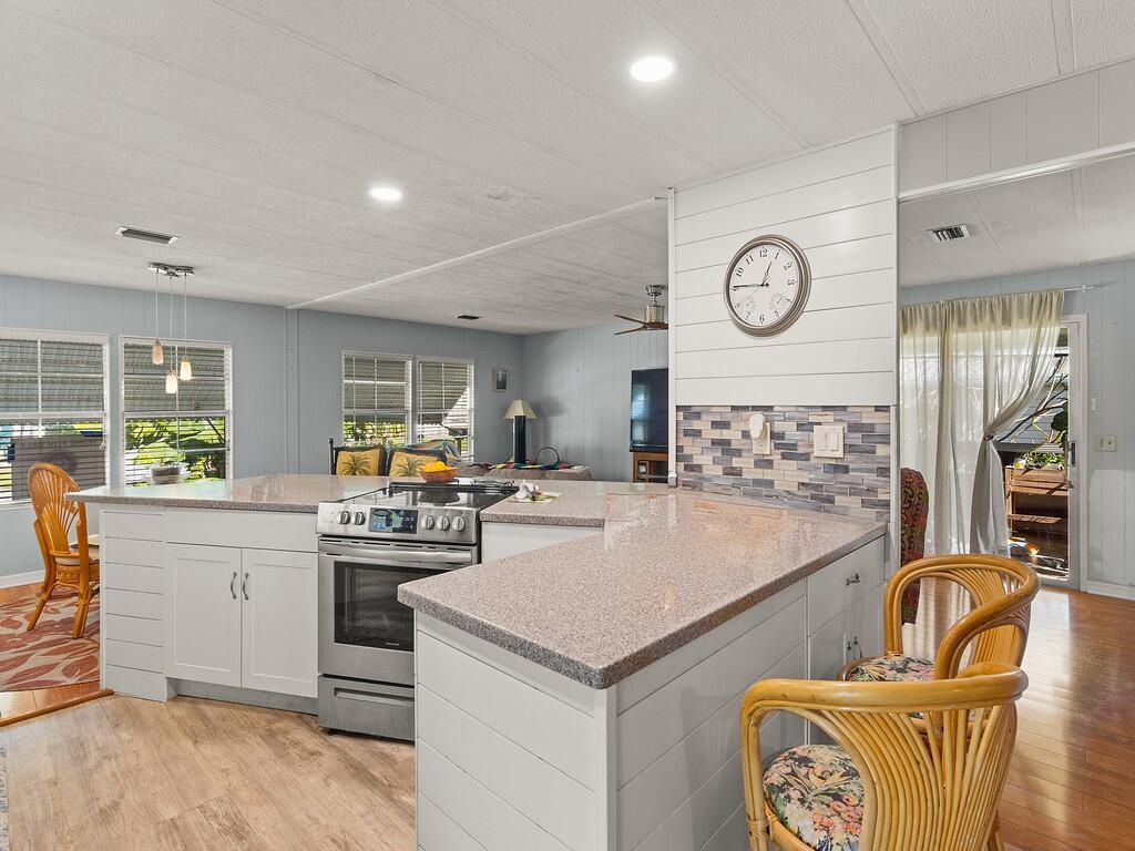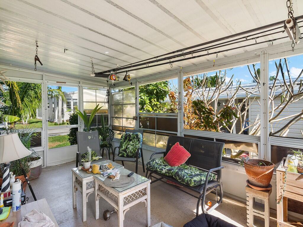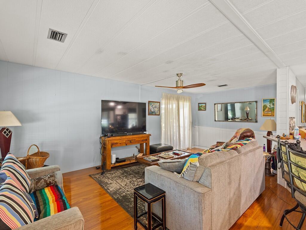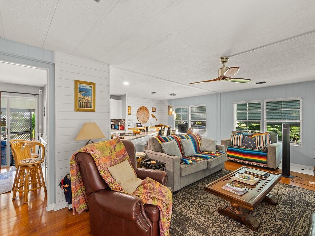 Welcome to the relaxed Florida lifestyle in the highly desirable 55+ community of Pinelake Village, just minutes from the beaches, shopping, dining, and the charm of downtown Jensen Beach. Step inside to find a bright, open layout with updated kitchen and baths. A cheerful Florida room adds valuable extra living space ideal for morning coffee or simply relaxing. It also includes a large shed for storage and an attached carport with room for multiple vehicles. Located on leased land in a friendly, well‑maintained community, residents enjoy access to a sparkling pool, hot tub, fitness center, clubhouse and so much more. Whether you're seeking a seasonal retreat or a full‑time Florida residence, this home offers exceptional value in one of Jensen Beach's most welcoming 55+ neig